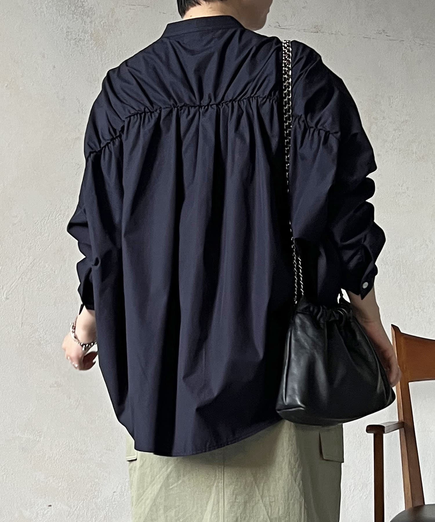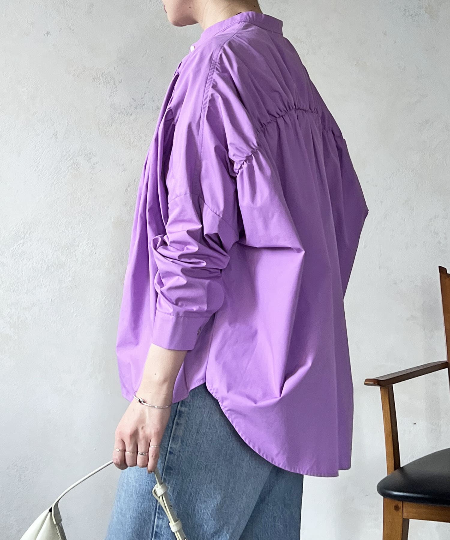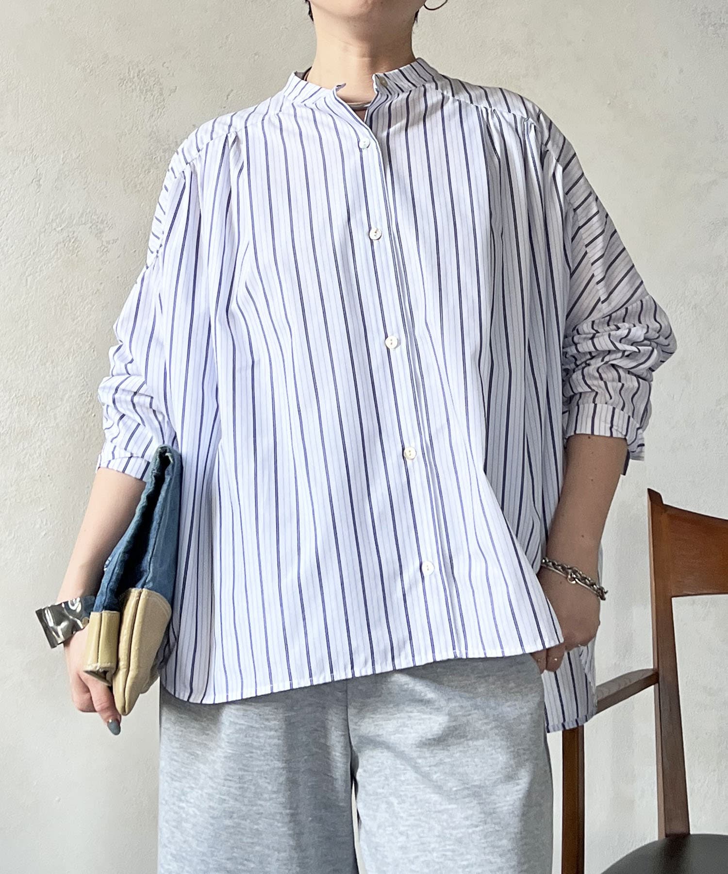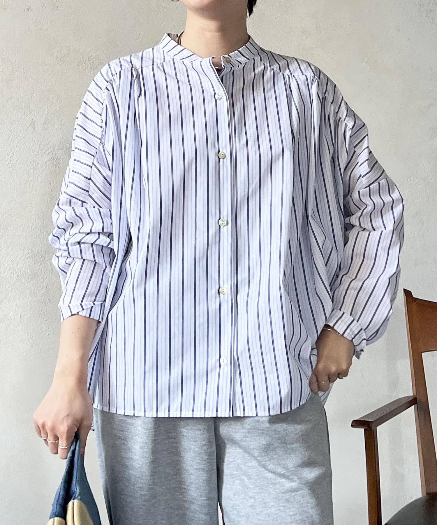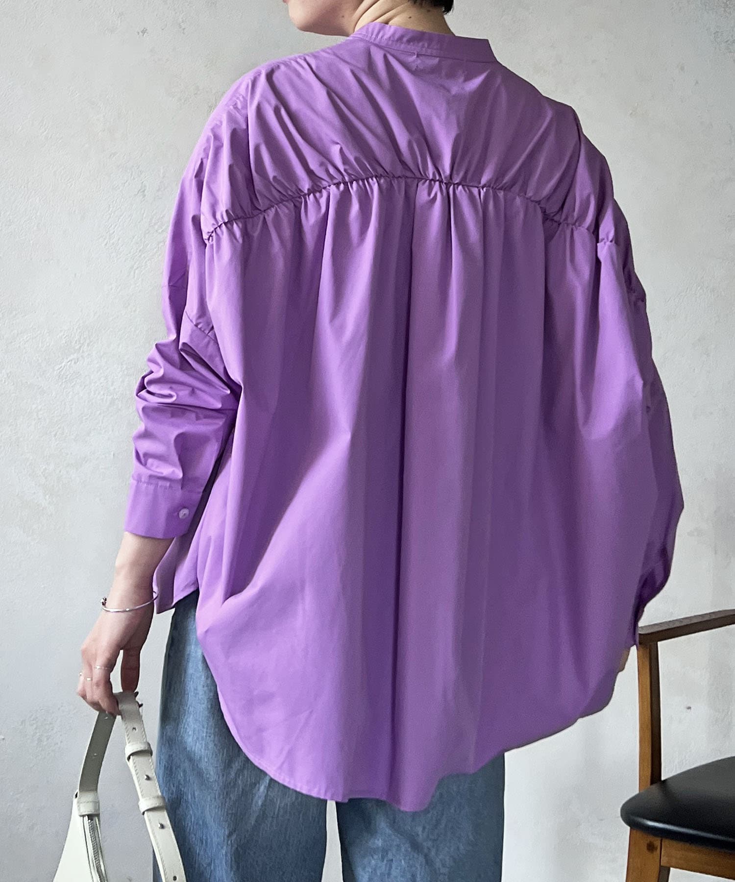 ・首元をすっきりと見せてくれるバンドカラーシャツ