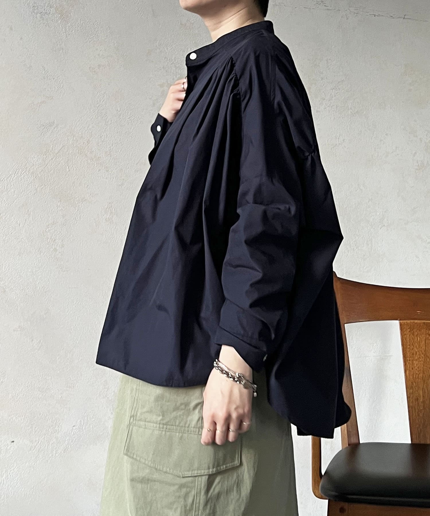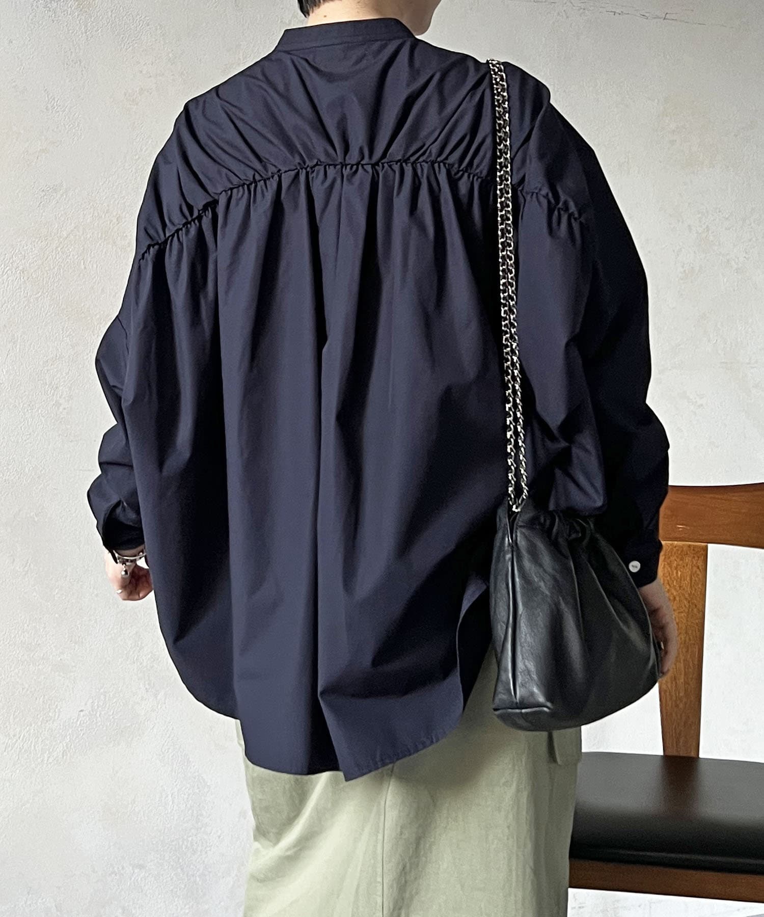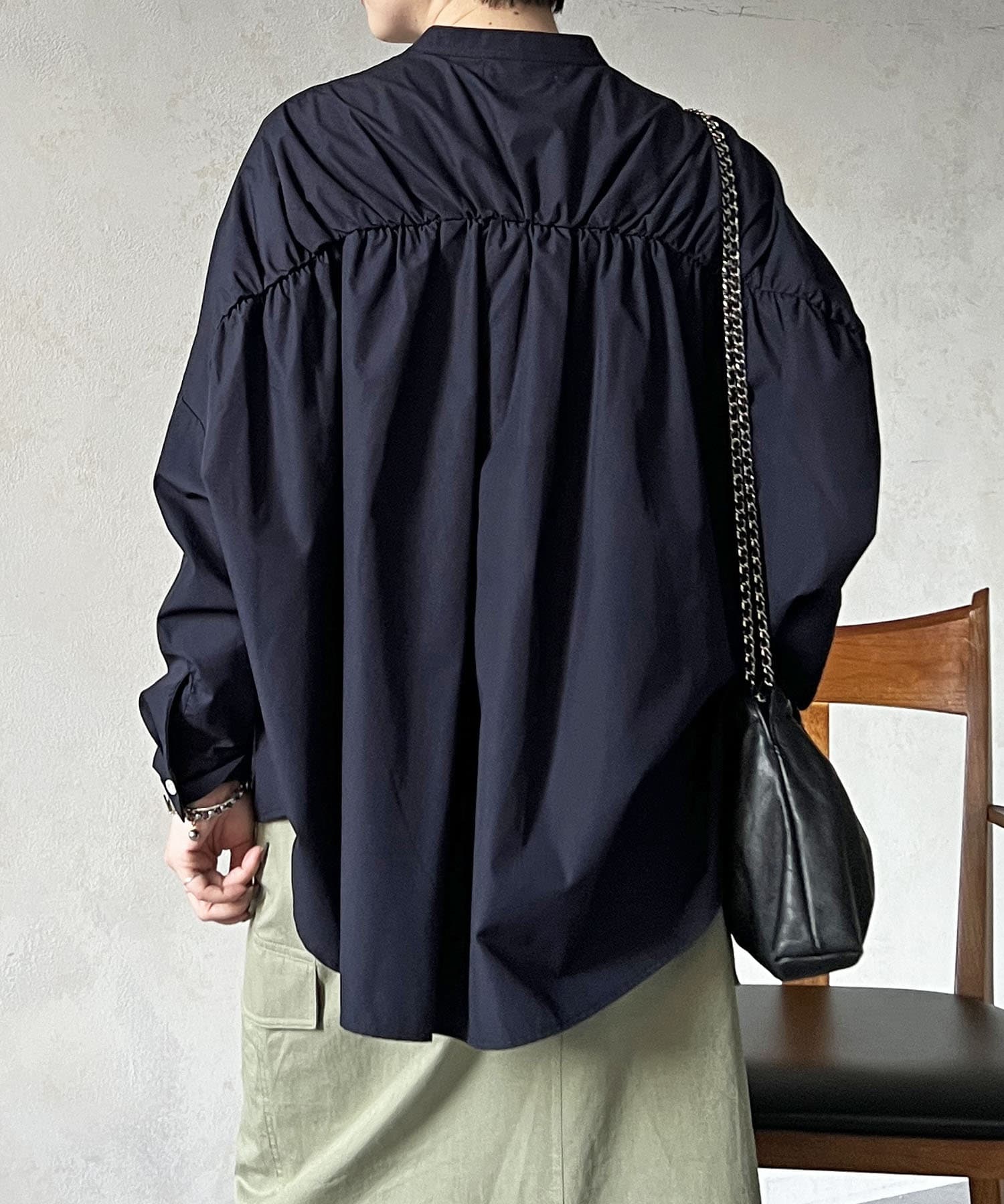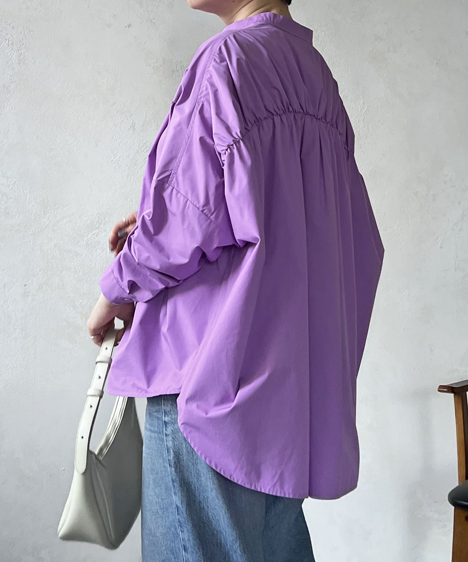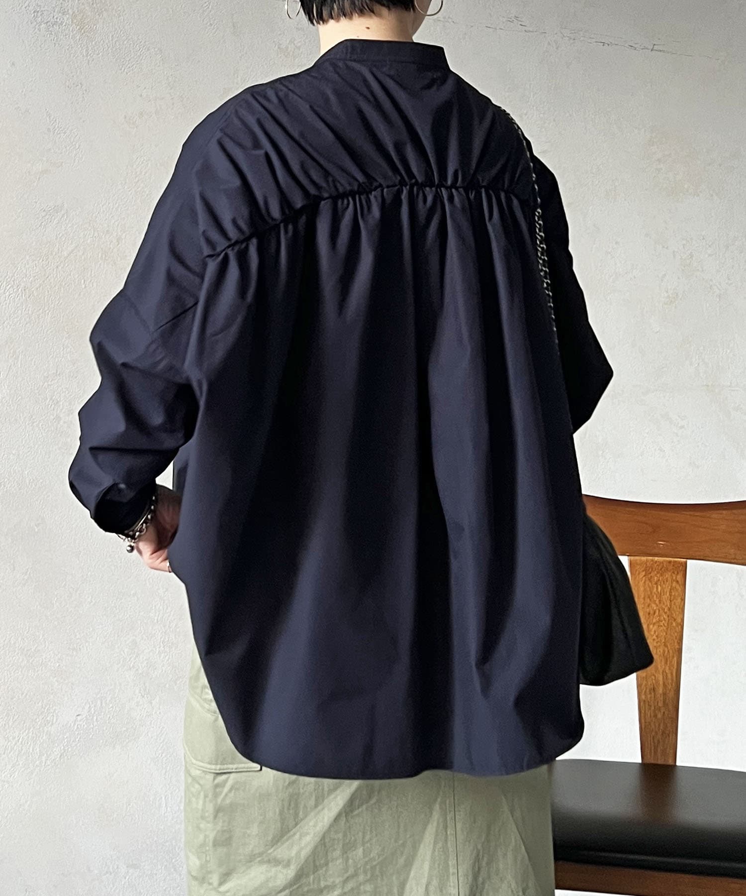 ・首元をすっきりと見せてくれるバンドカラーシャツ