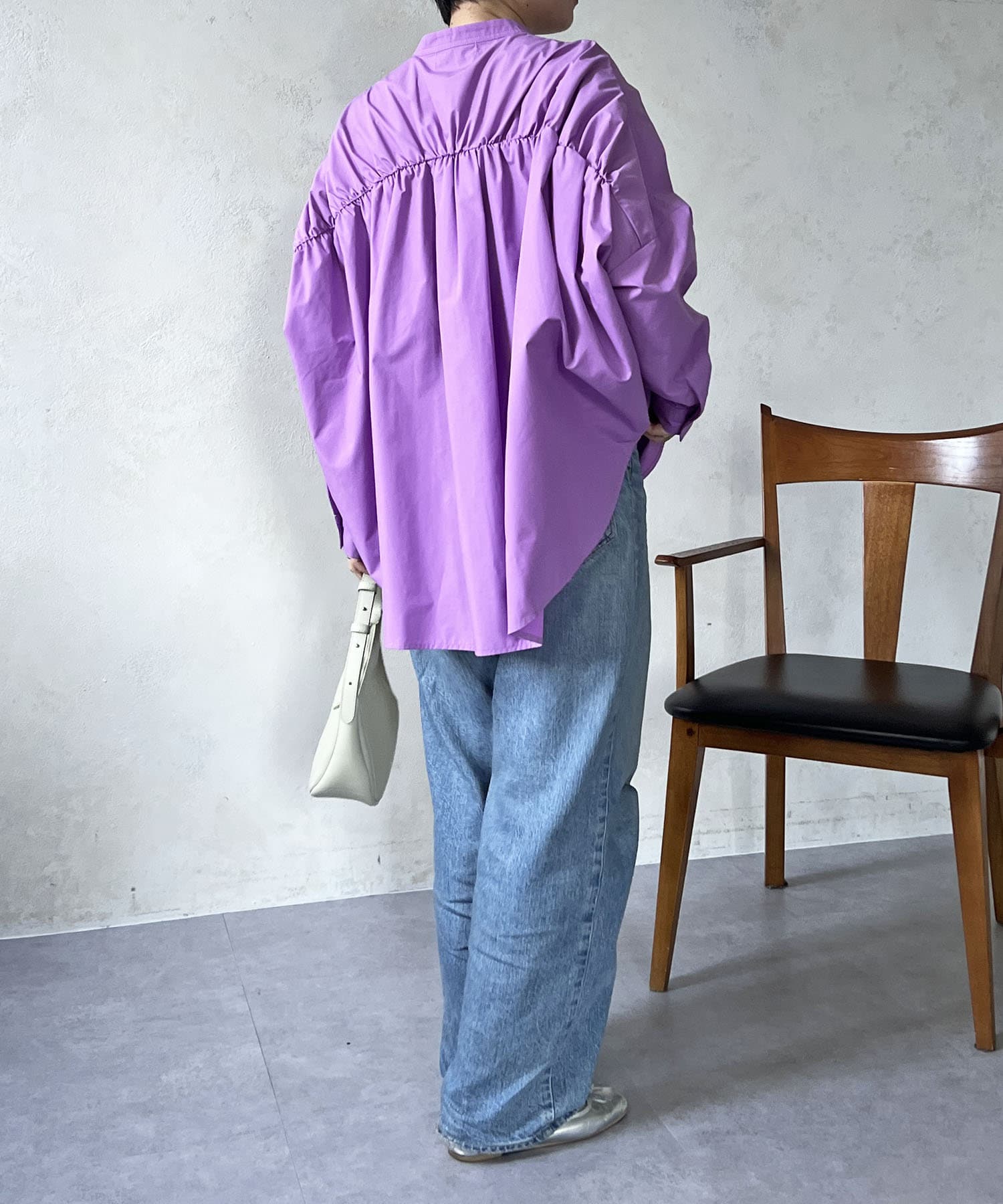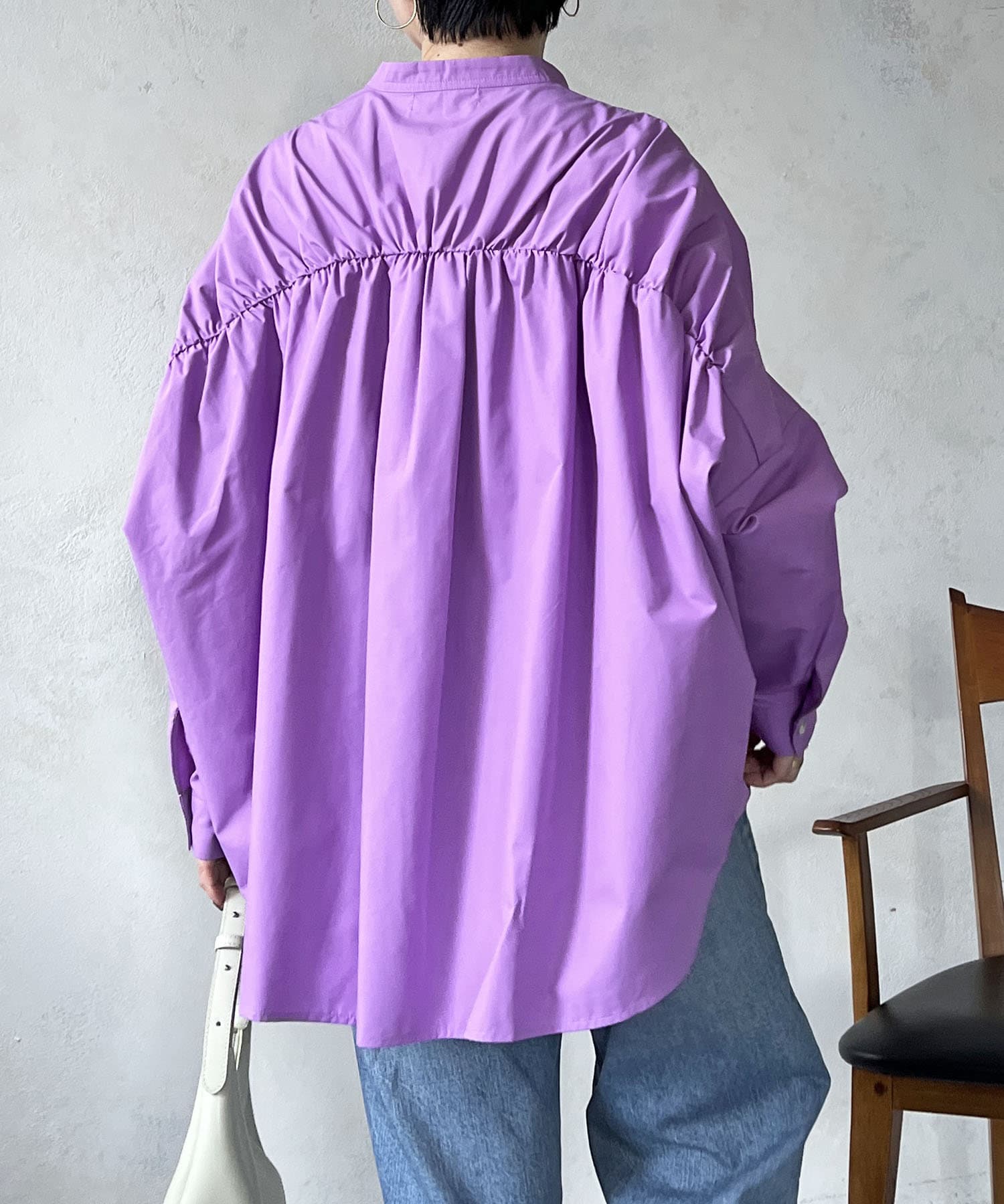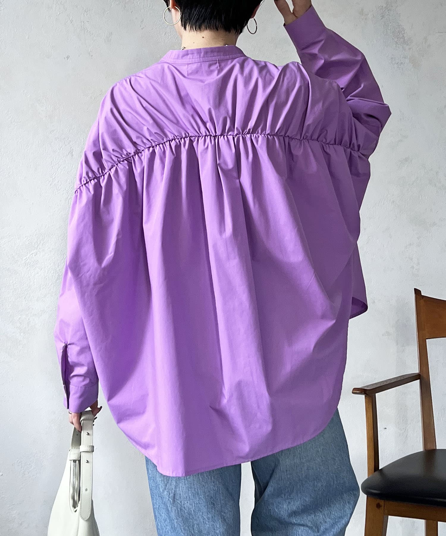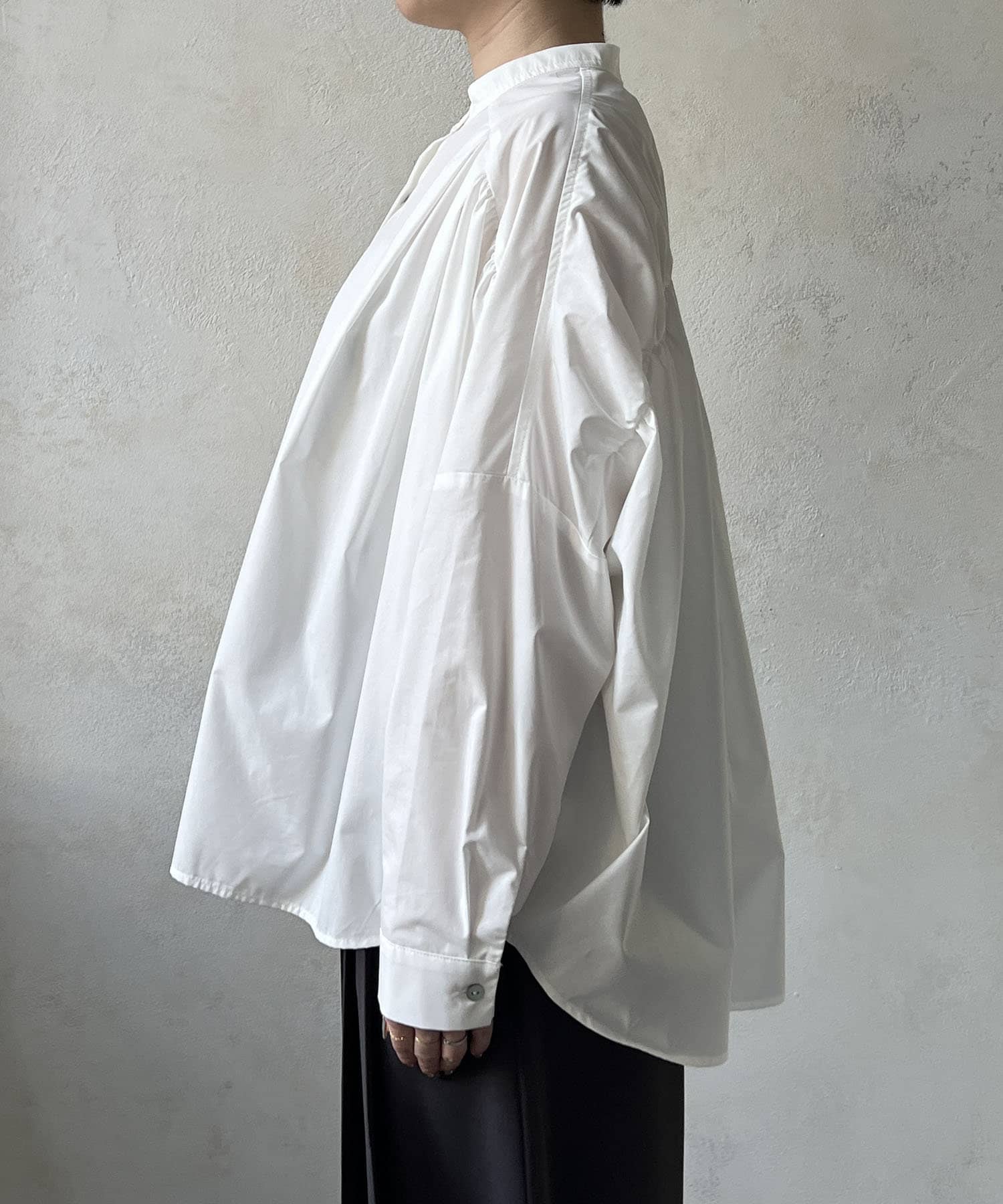 ・首元をすっきりと見せてくれるバンドカラーシャツ