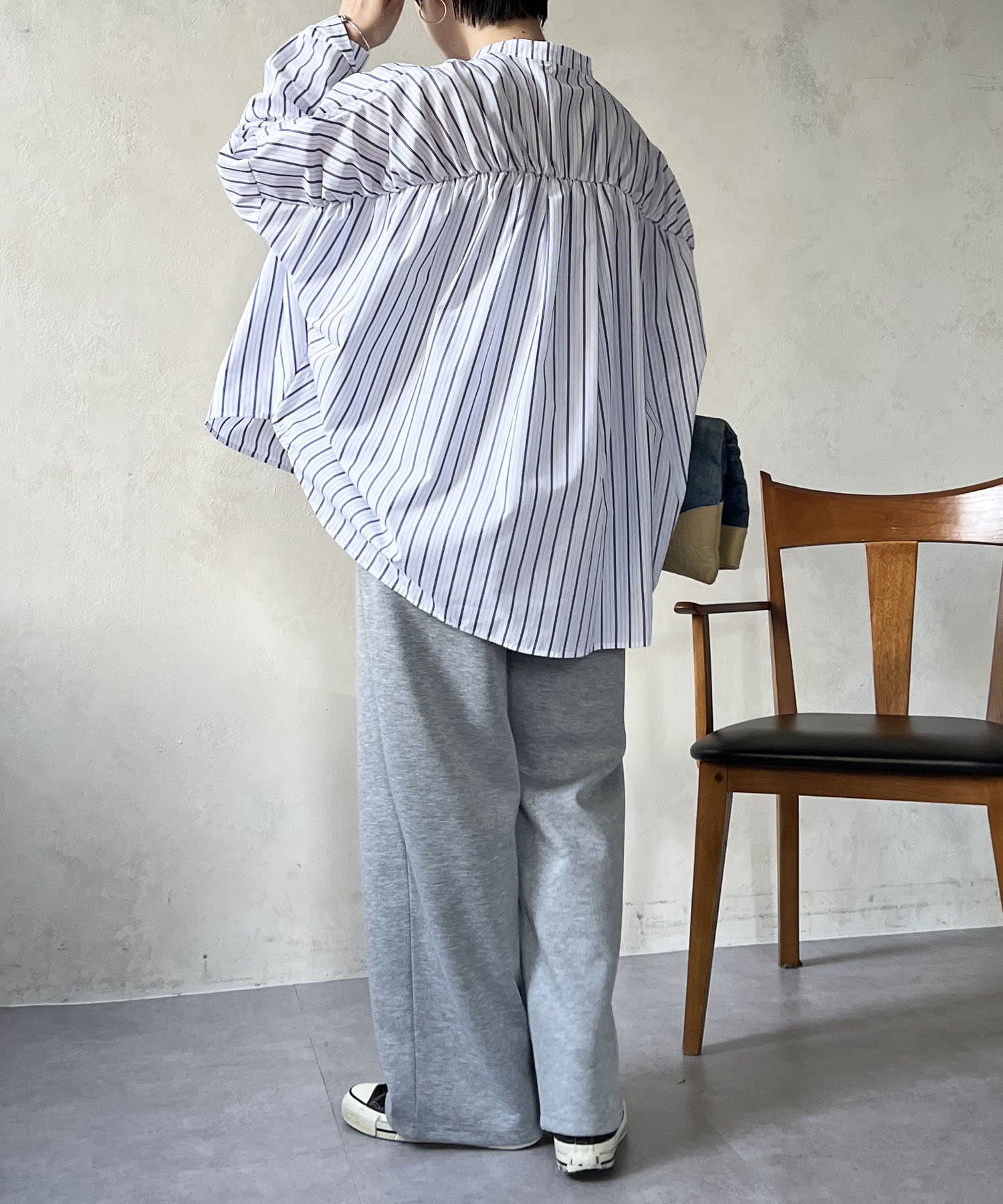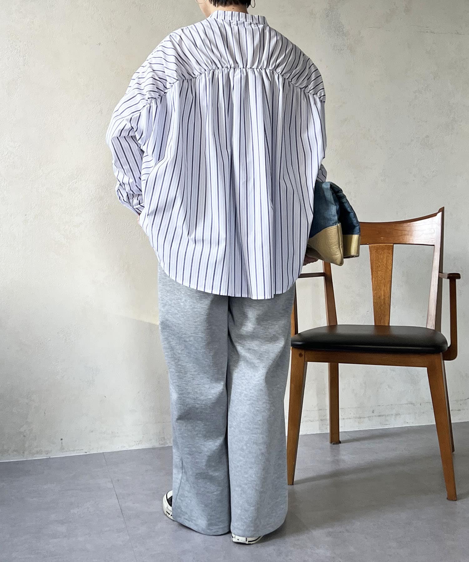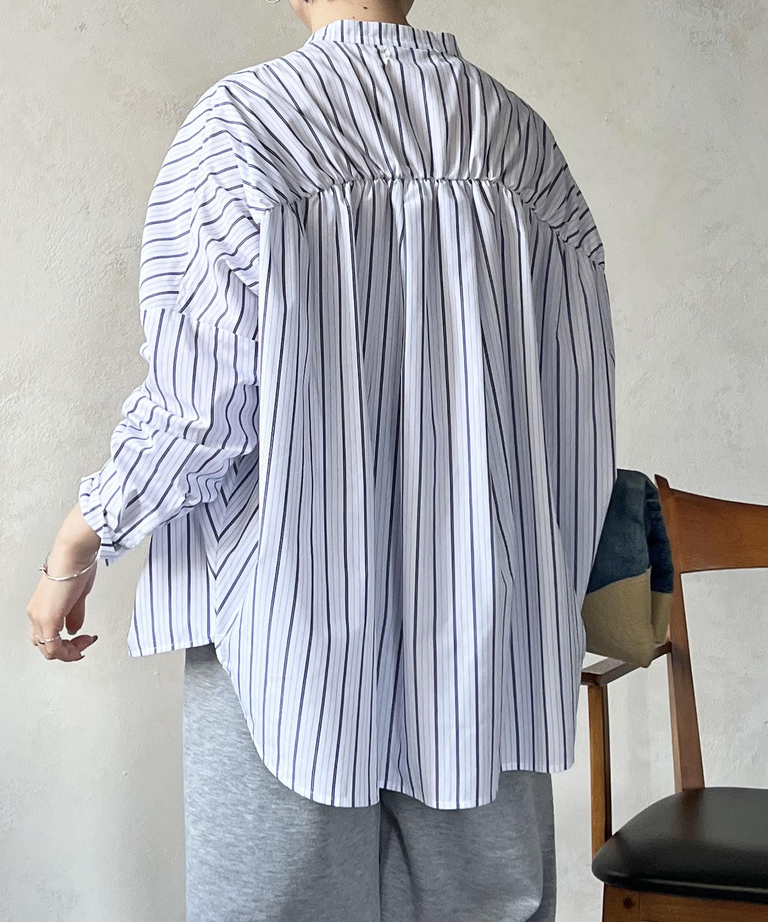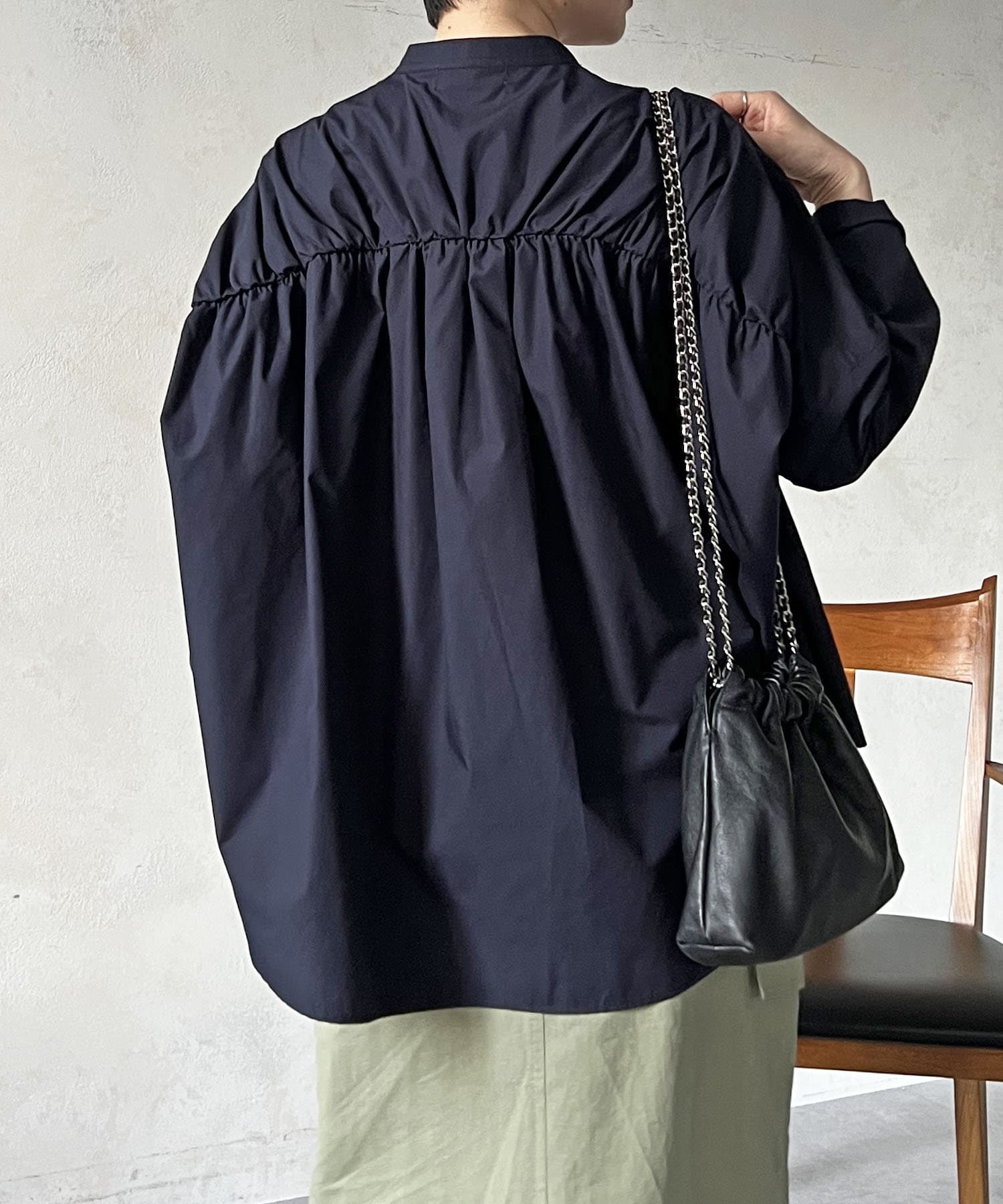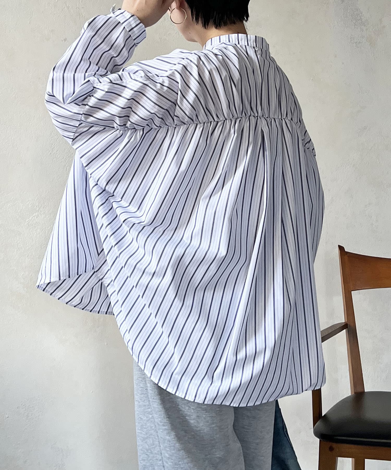 ・首元をすっきりと見せてくれるバンドカラーシャツ