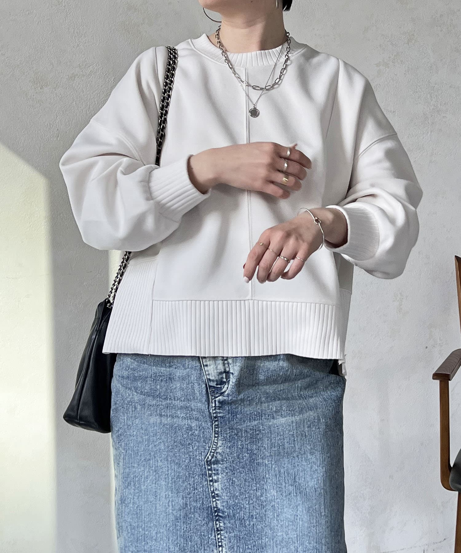 ・スウェットとニットの中間のようなボンディング素材でシーズン長く着れる
