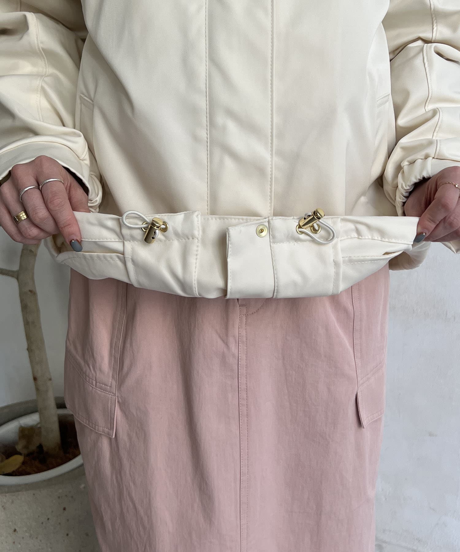 ・裾を絞ってお好みのシルエットに変えられる