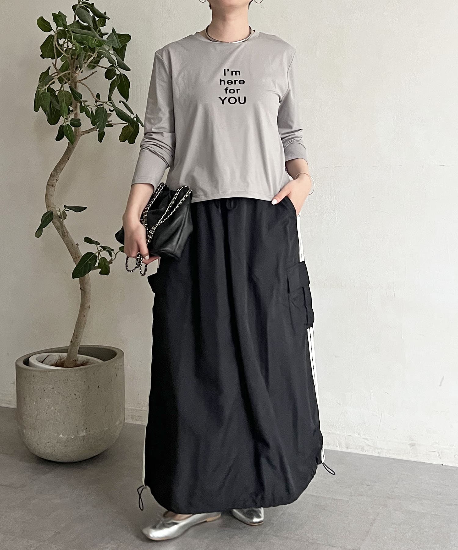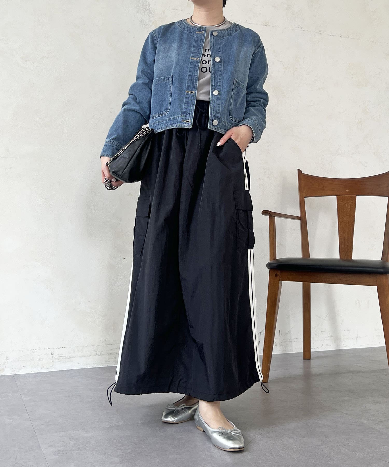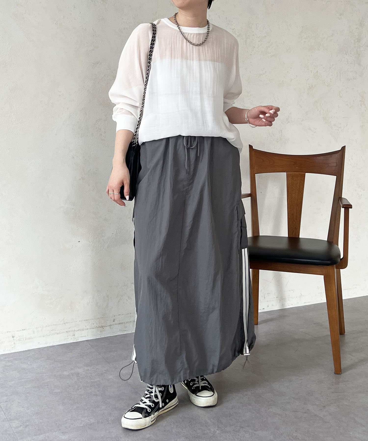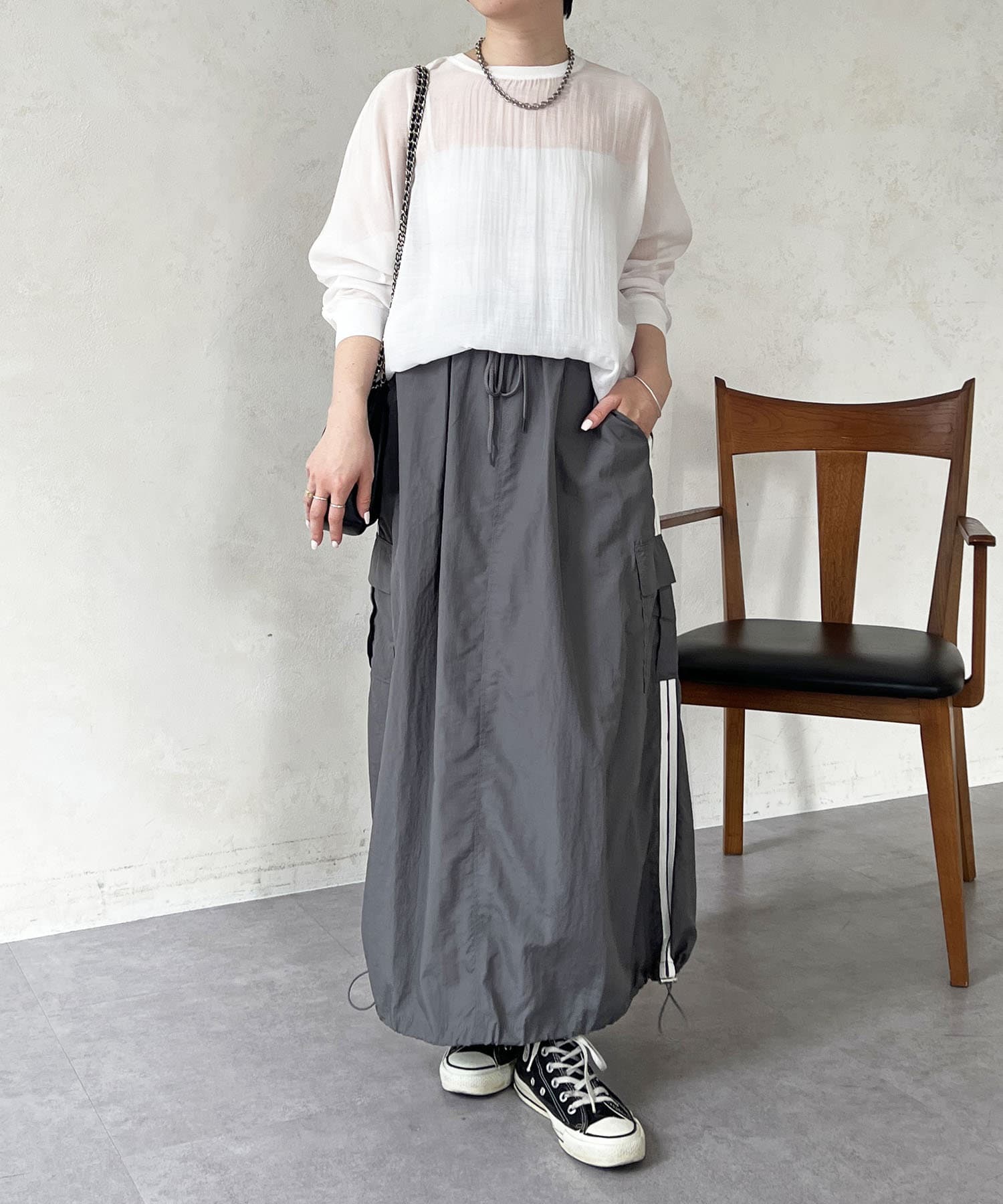 ・パラシュートパンツのようなシルエットで、新鮮なコーディネートに◎
