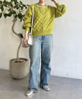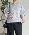 編み込みが立体的でボコボコしているから細く見える。袖丈が長いのがうれしい