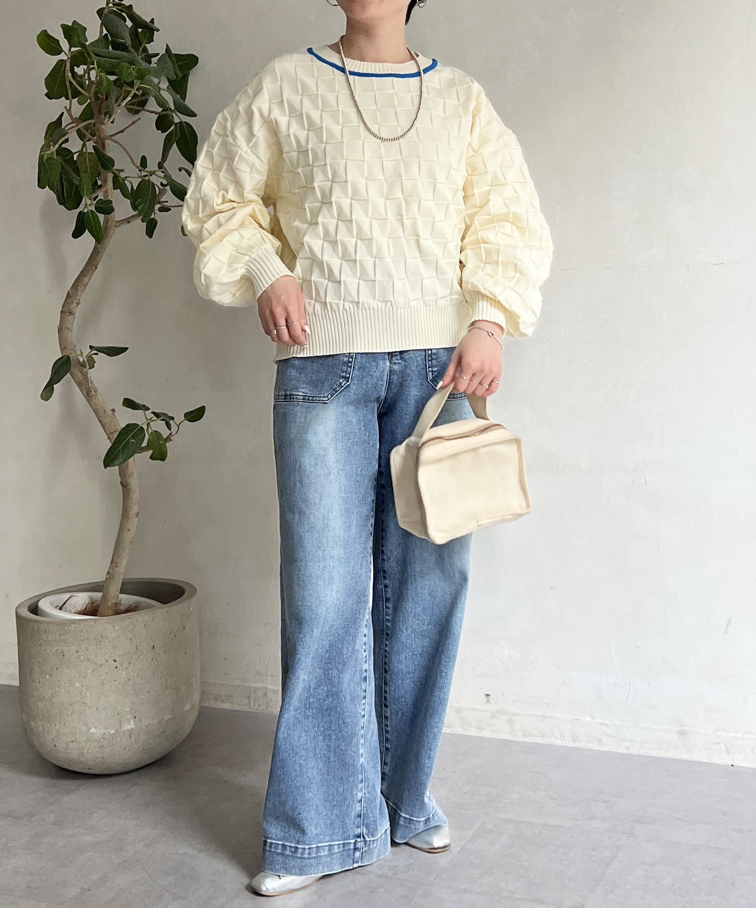 ・ネックと袖口の配色がコーディネートのアクセントに◎