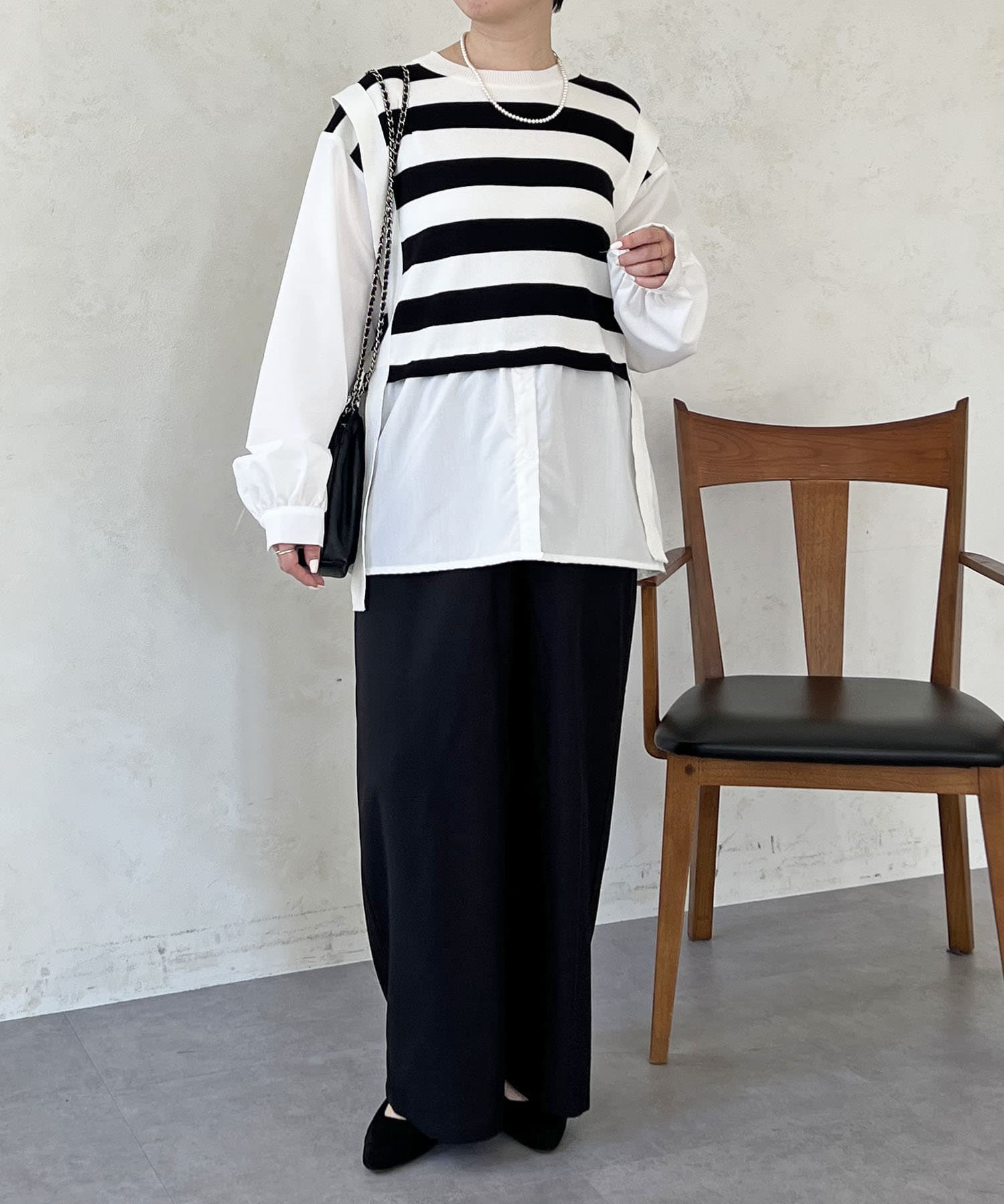 ・ブラウスとニットの組み合わせでカジュアルさと上品さを両立