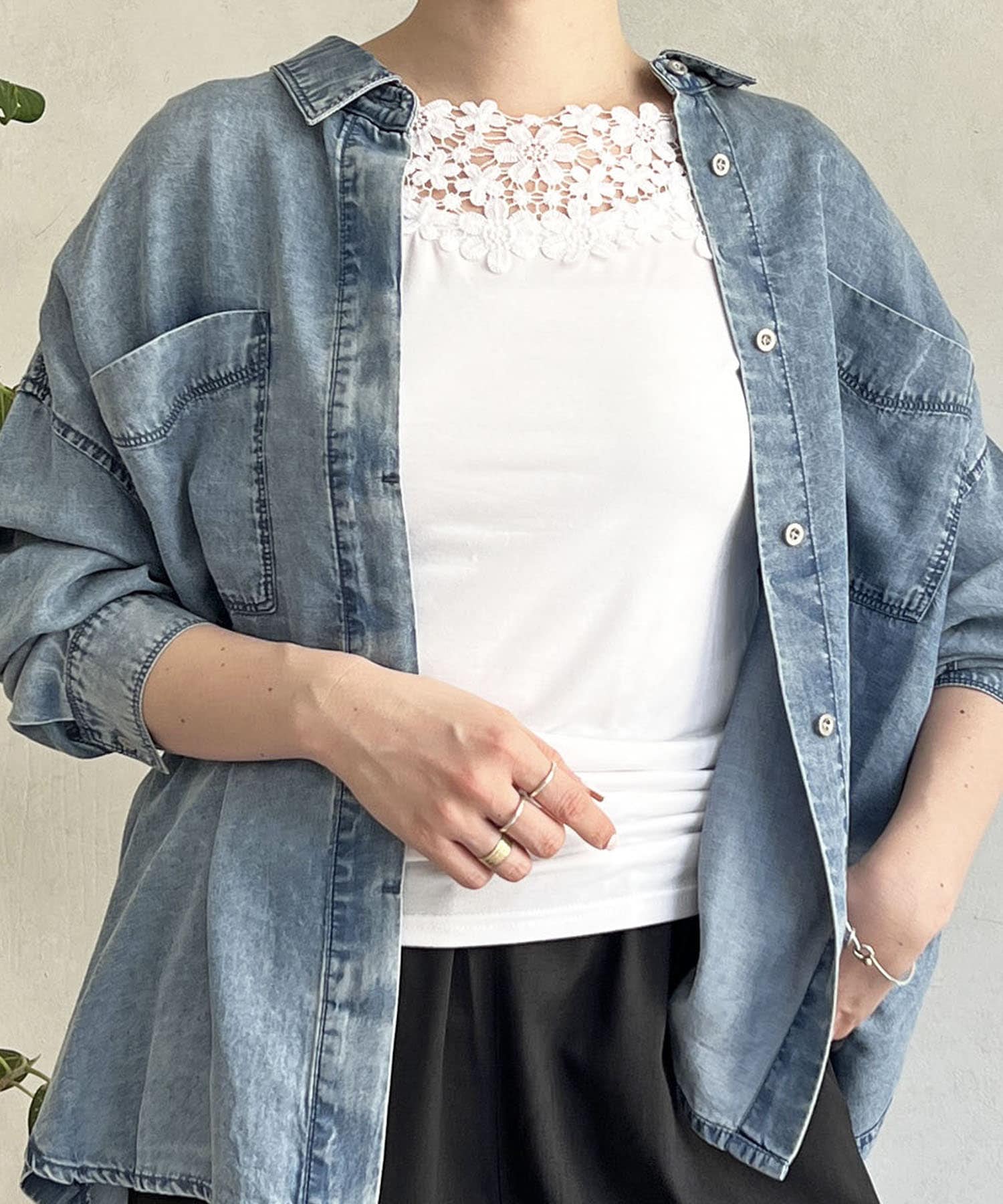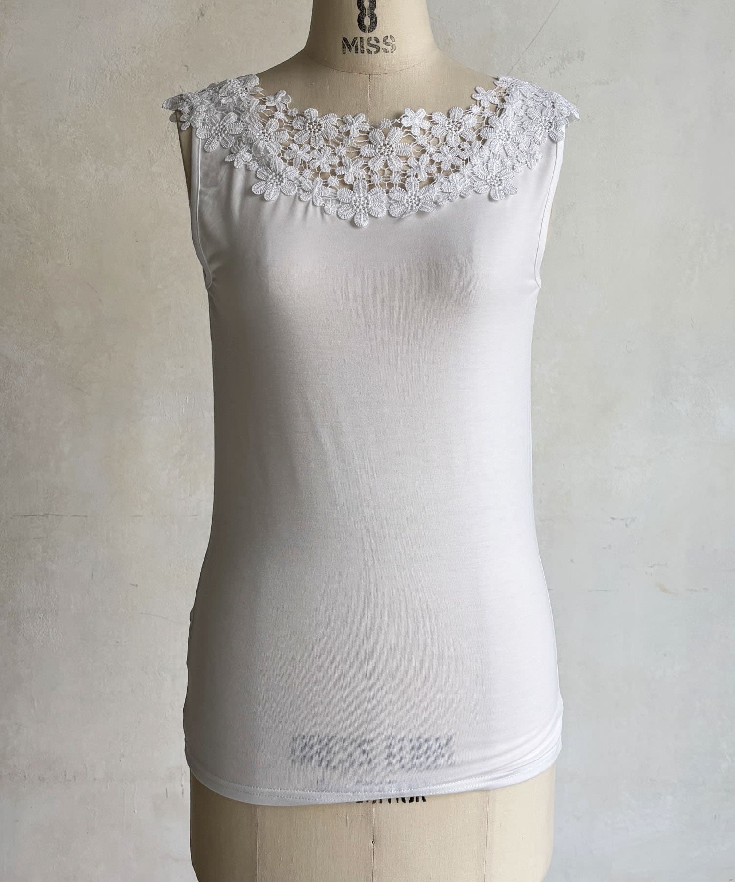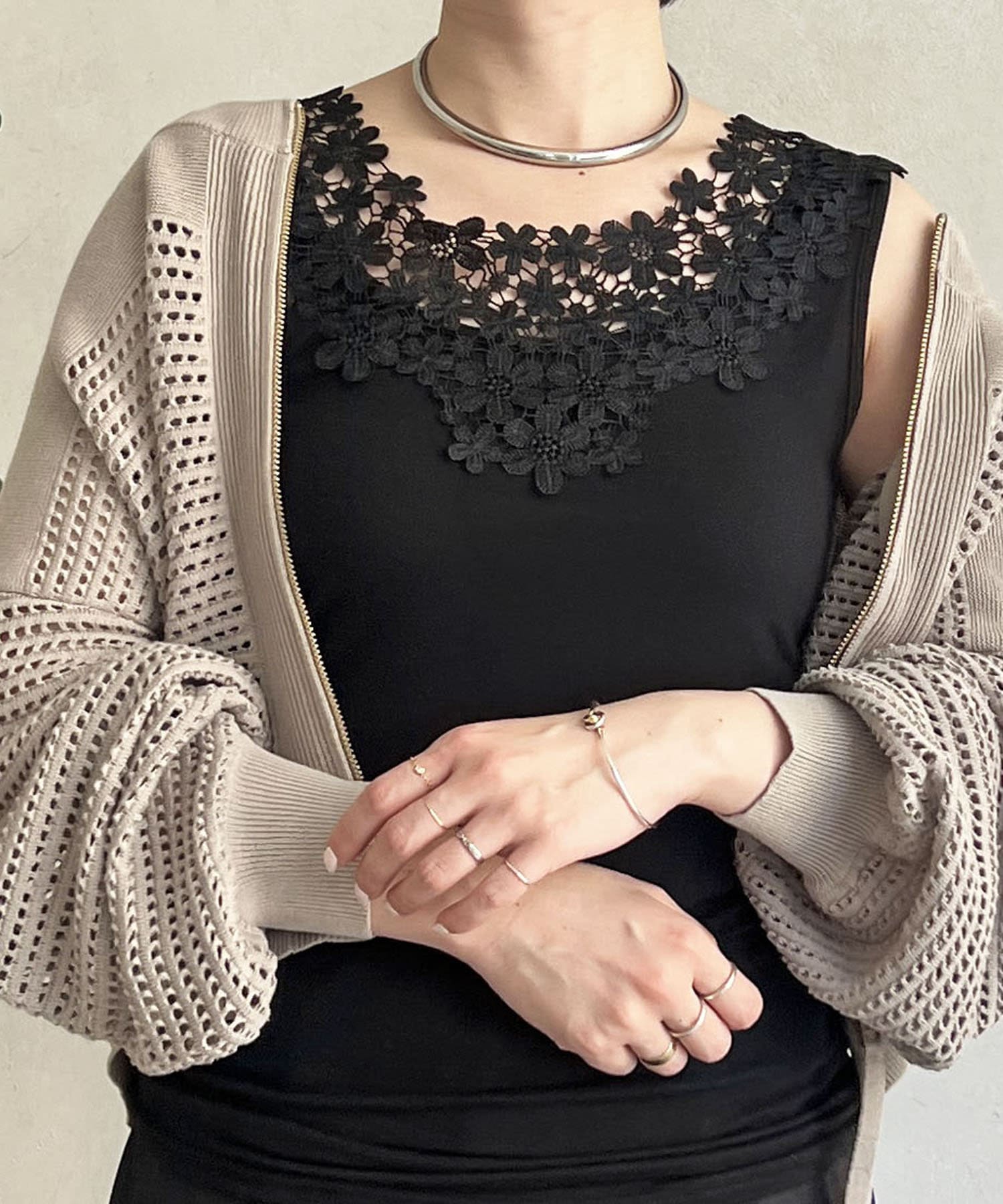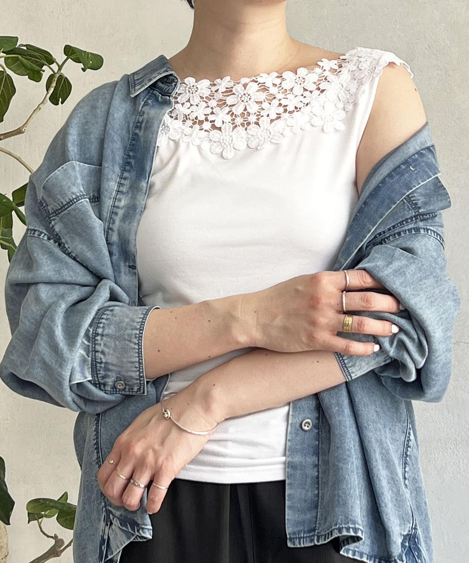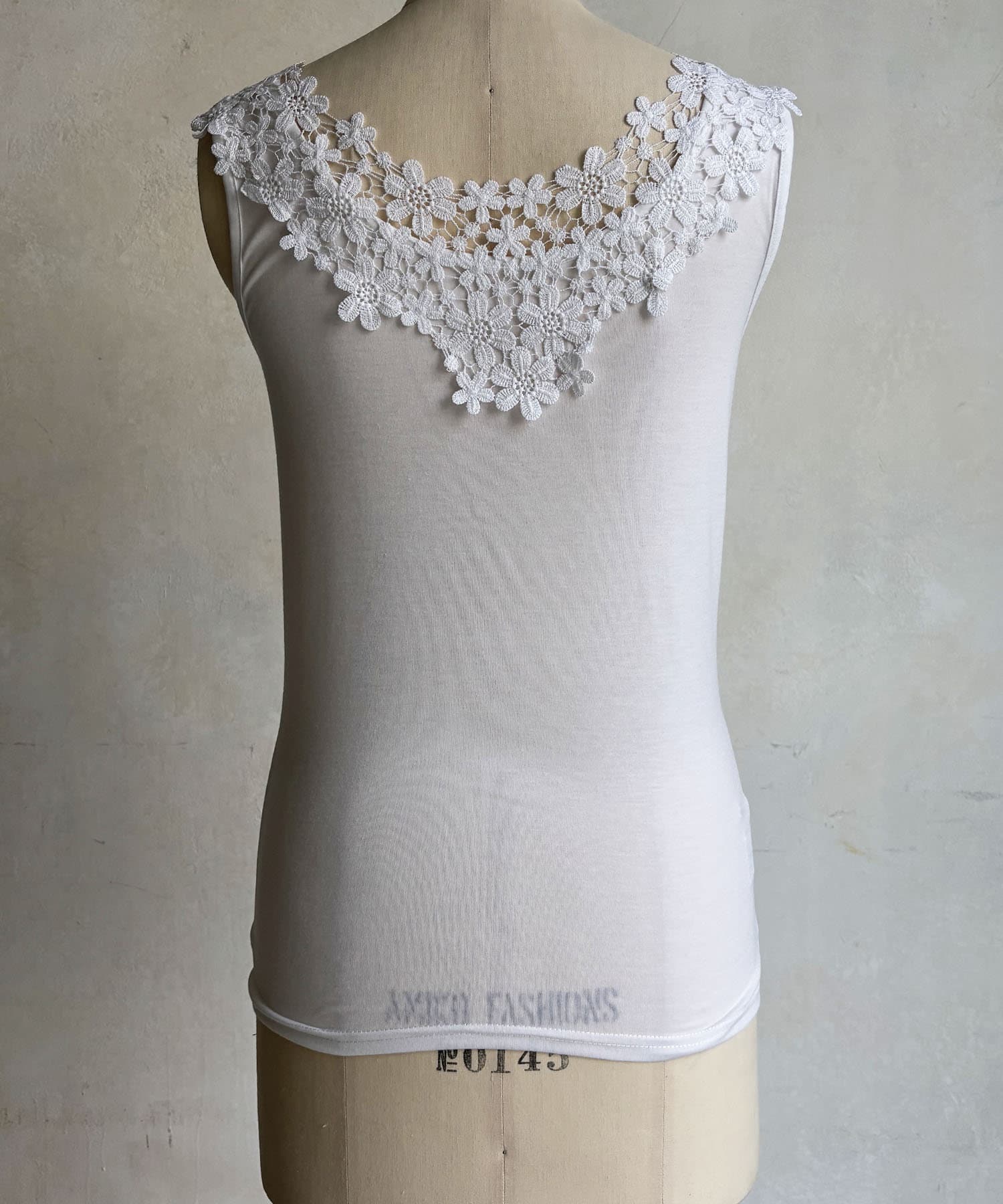 幅広いコーデに大活躍!前後2WAY仕様のレースタンクトップ