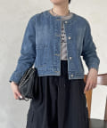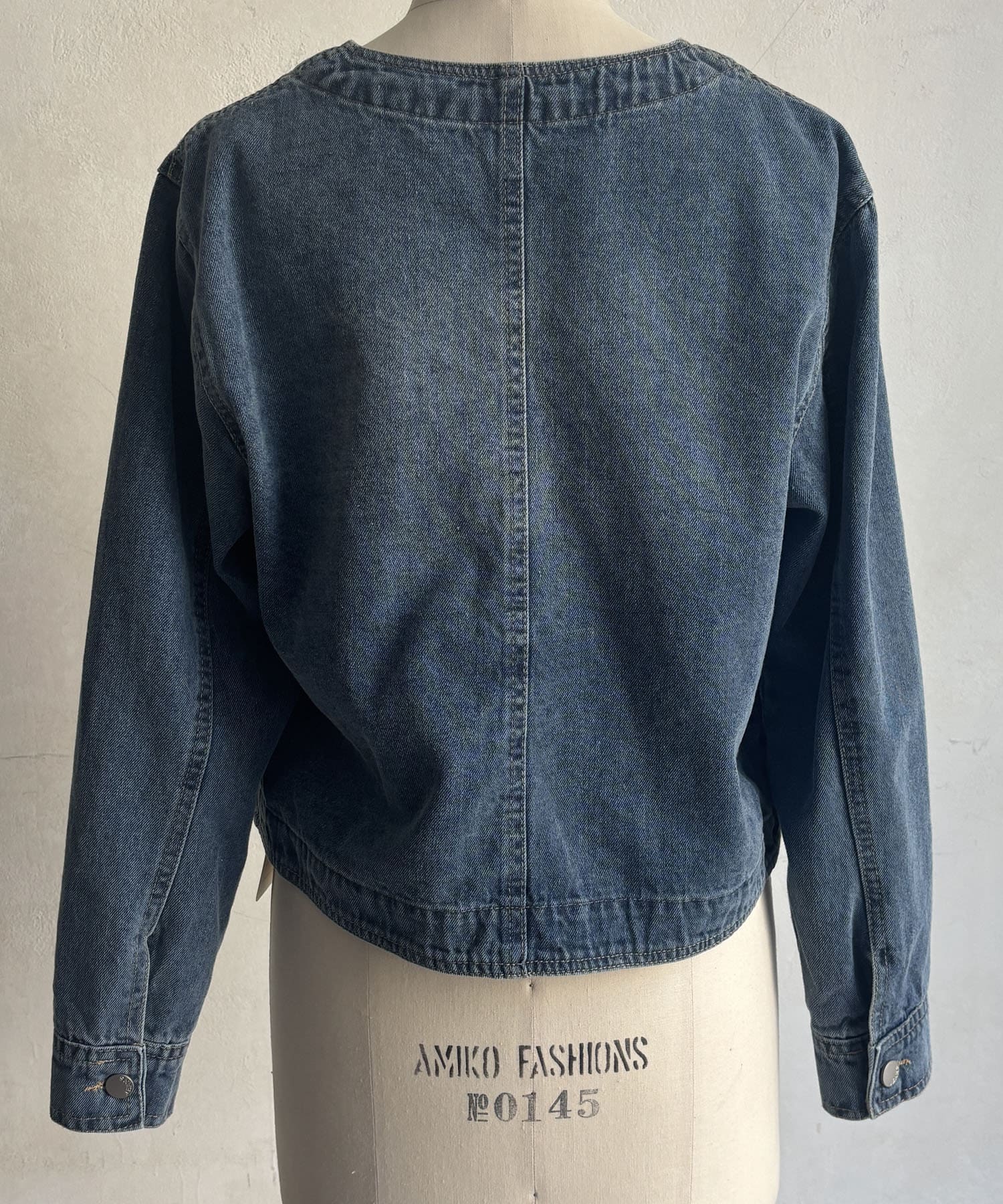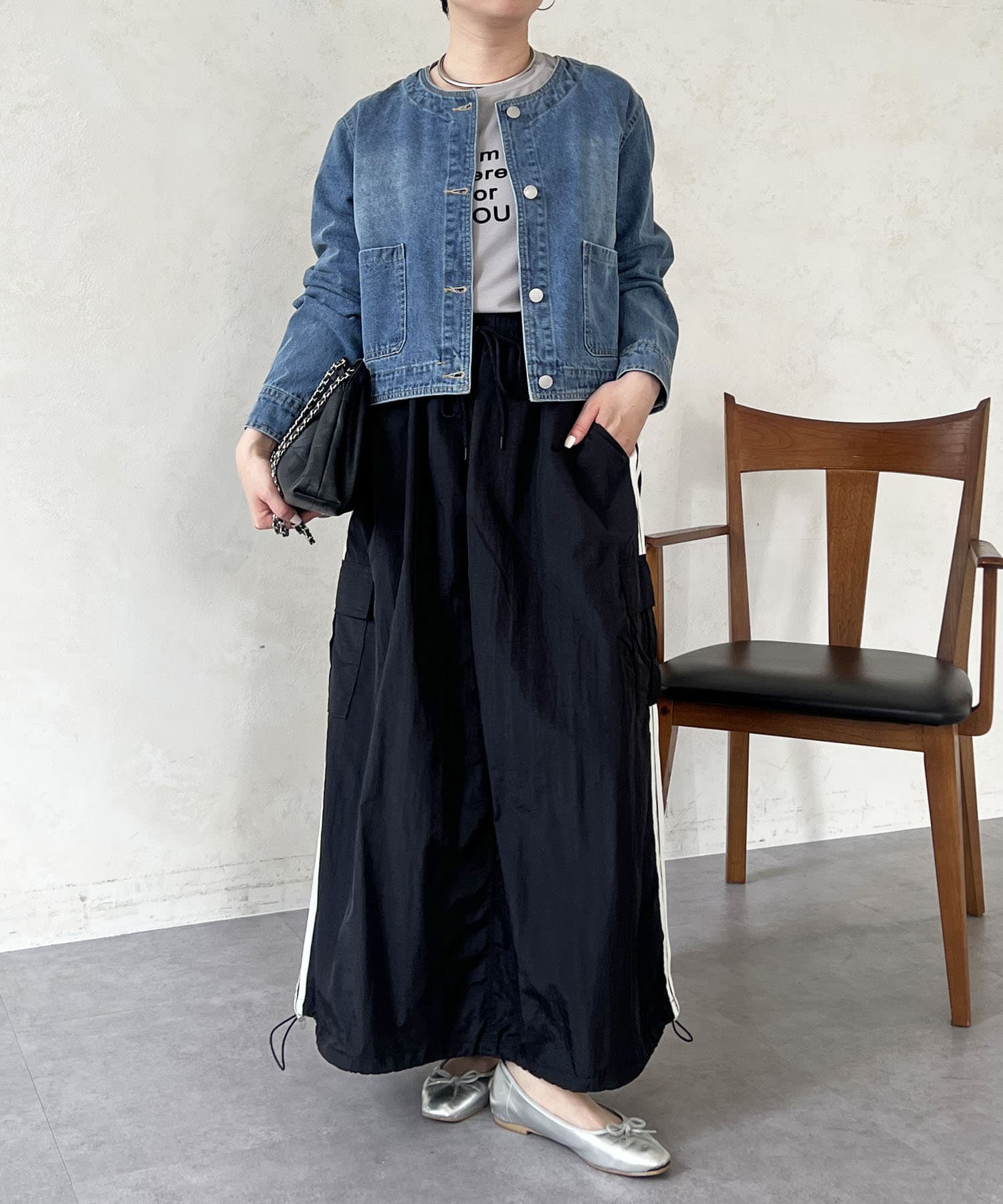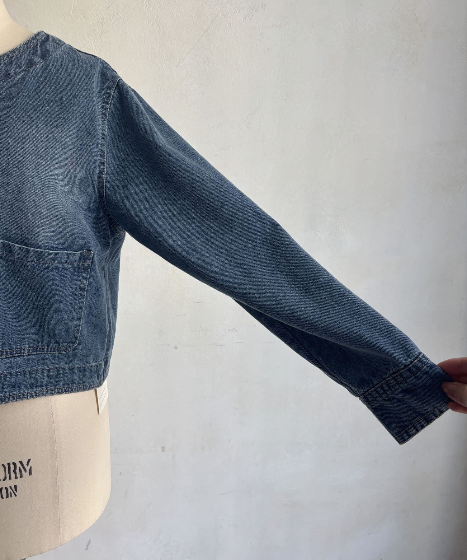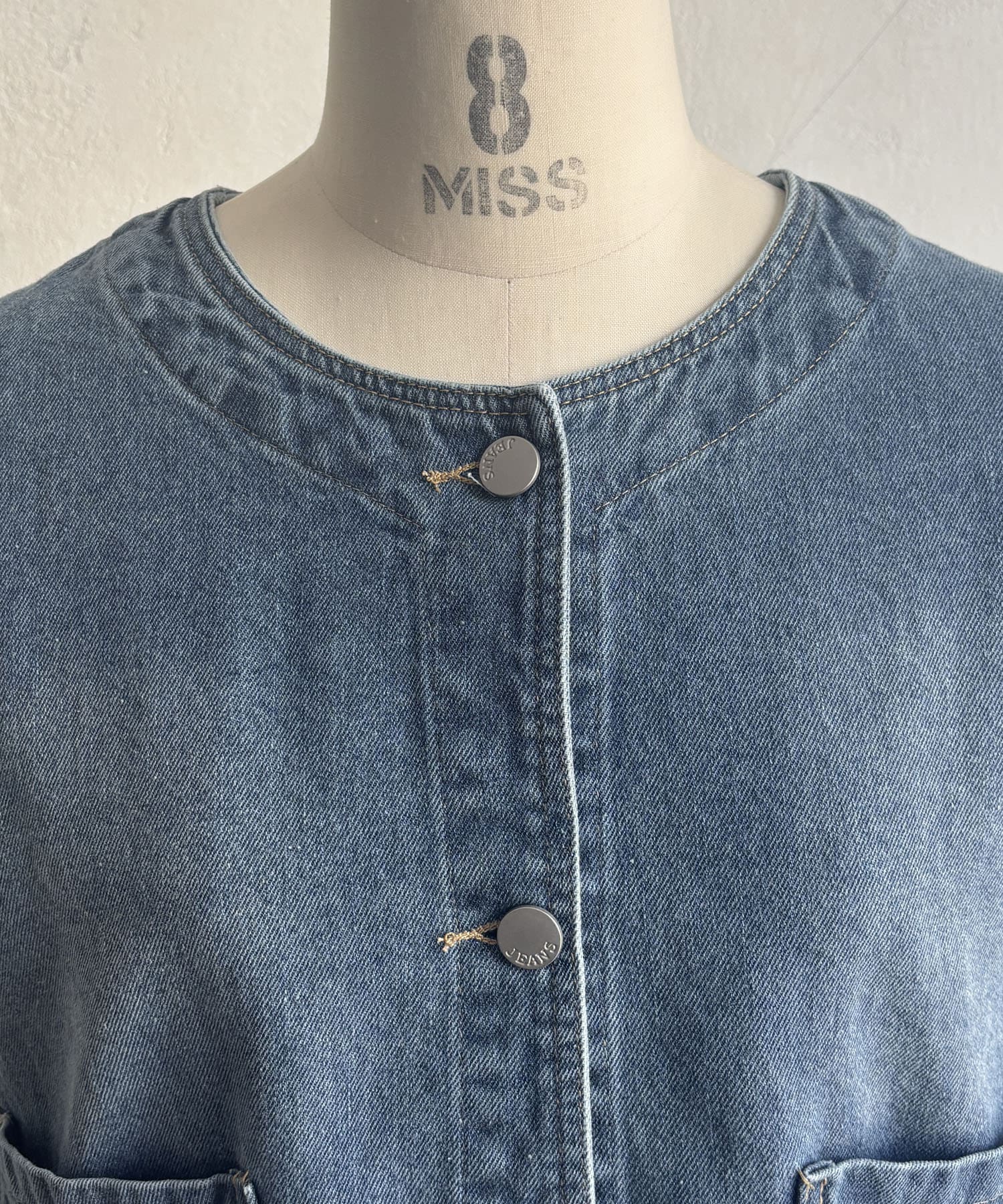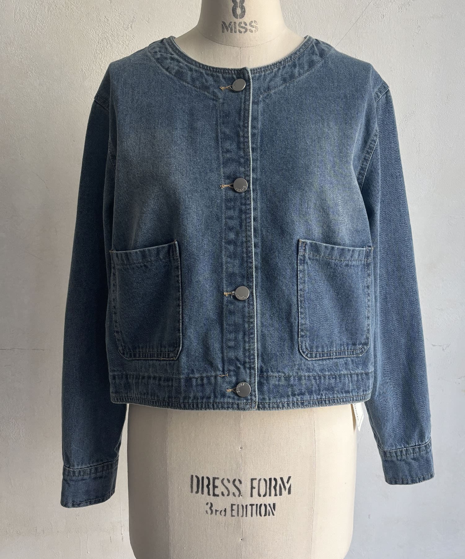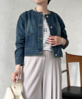 ・襟ぐりのあるアイテムとも相性抜群なノーカラーデザイン