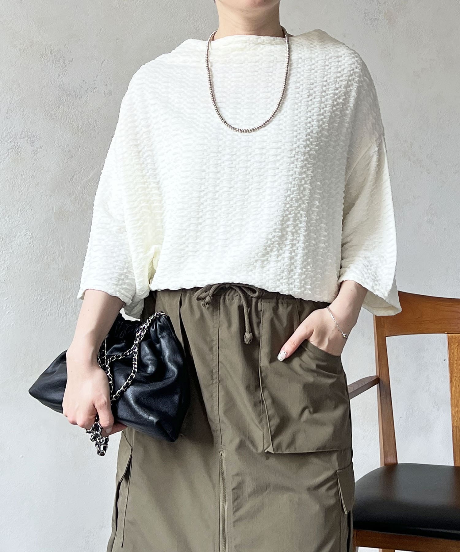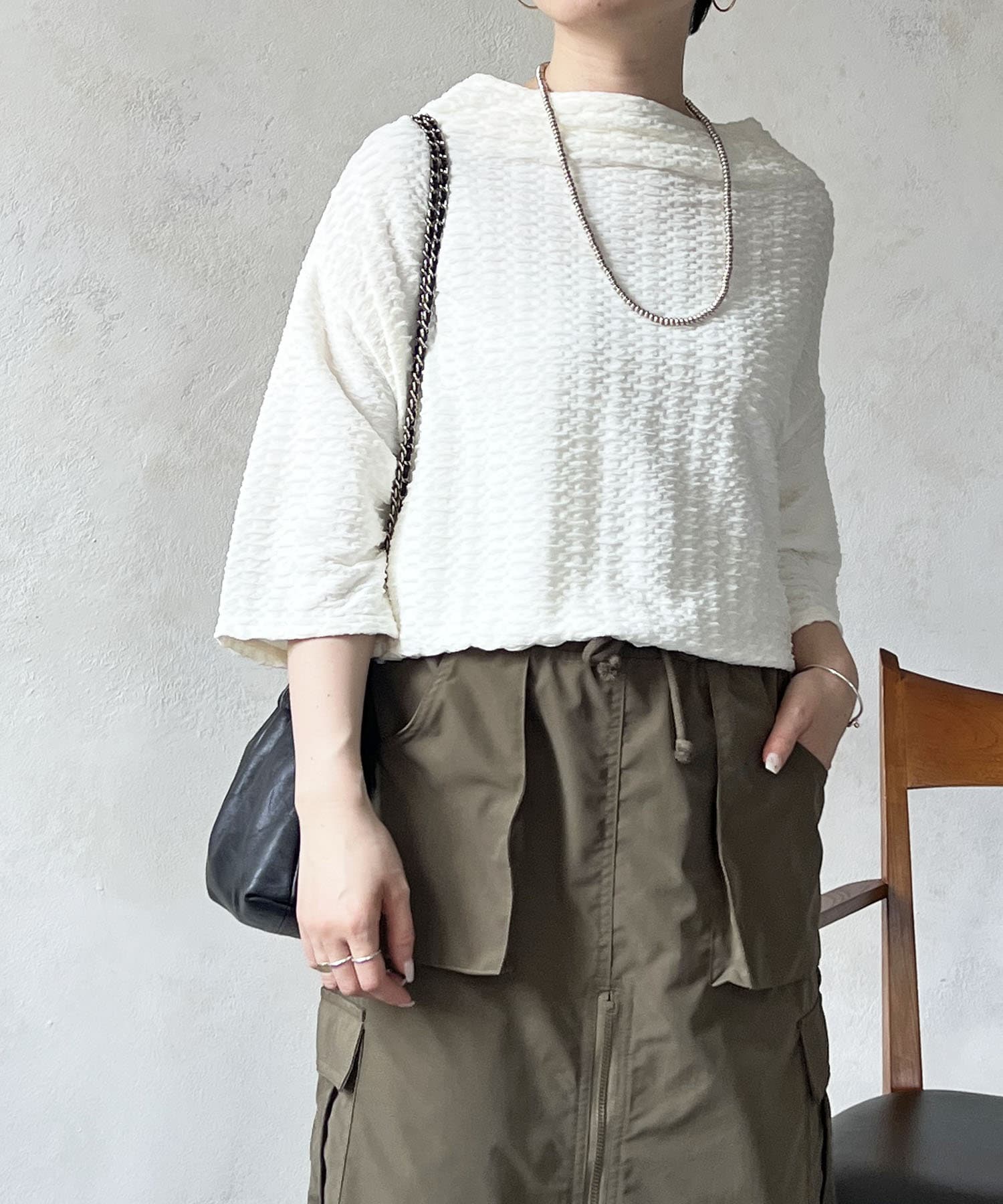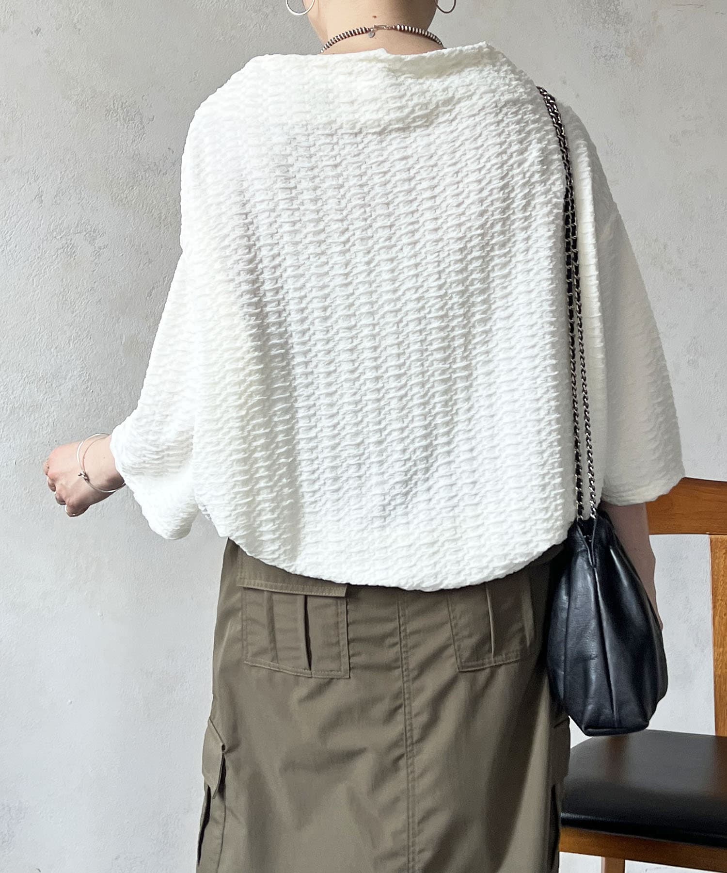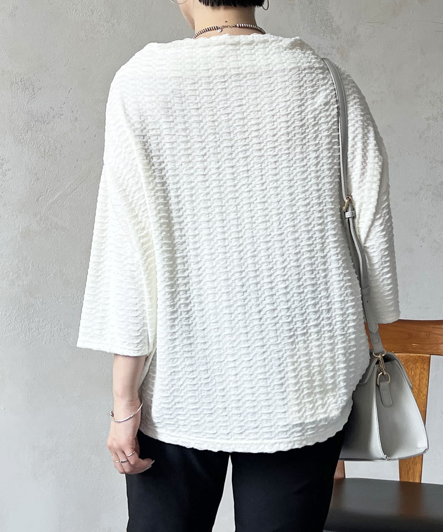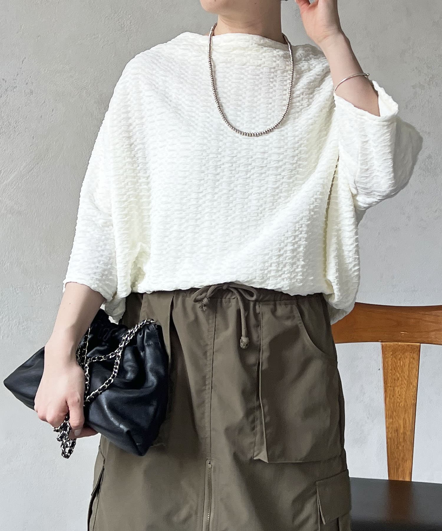 凹凸感が細見え効果を発揮してくれるトップス