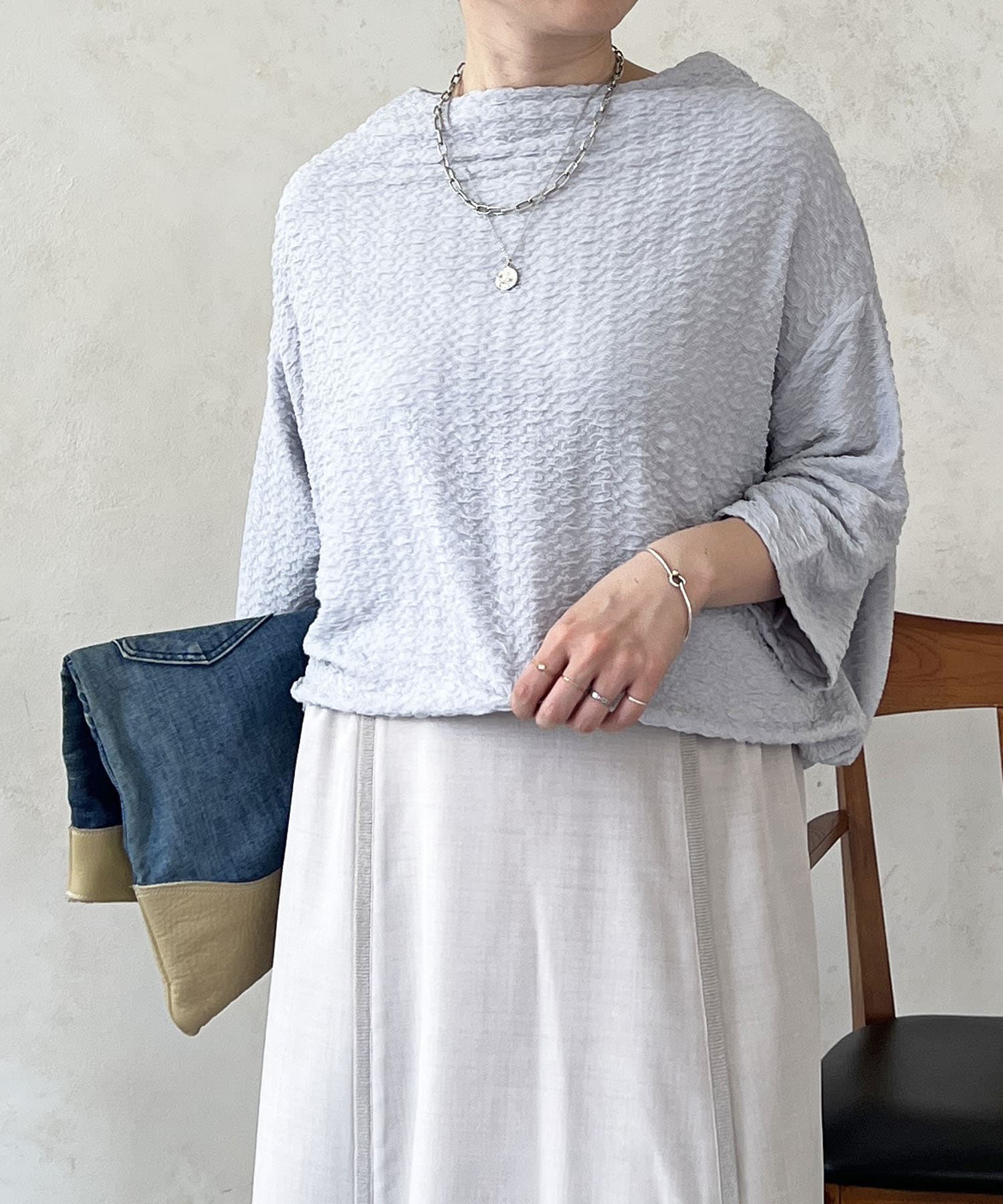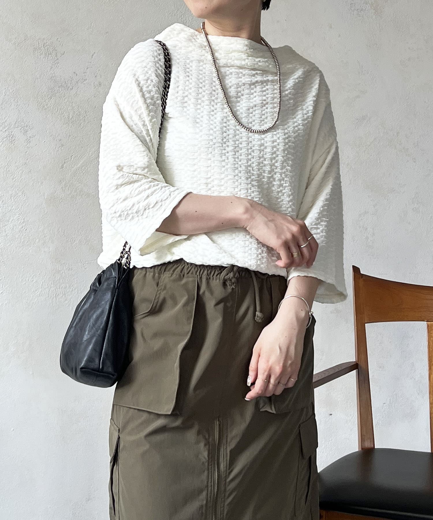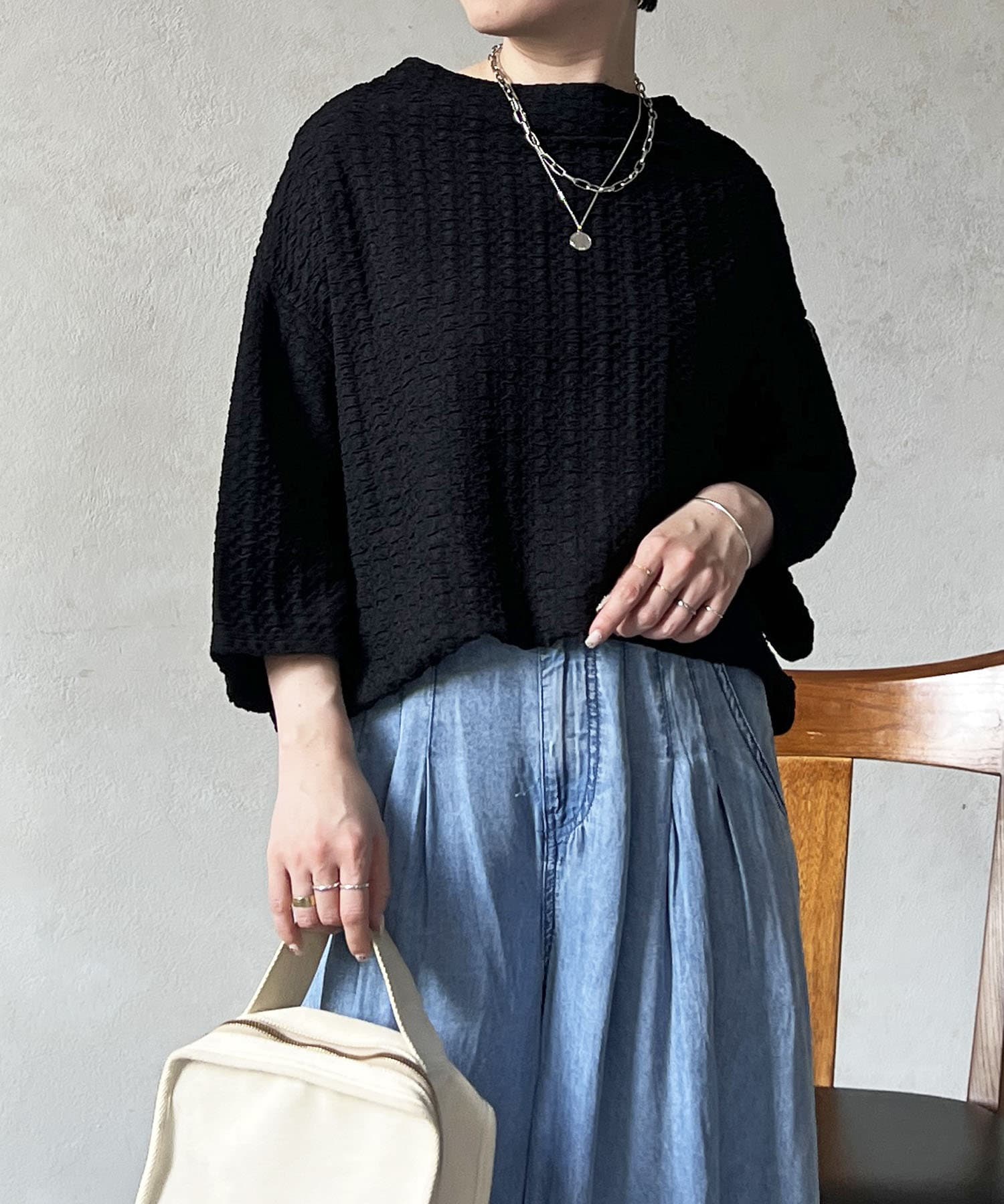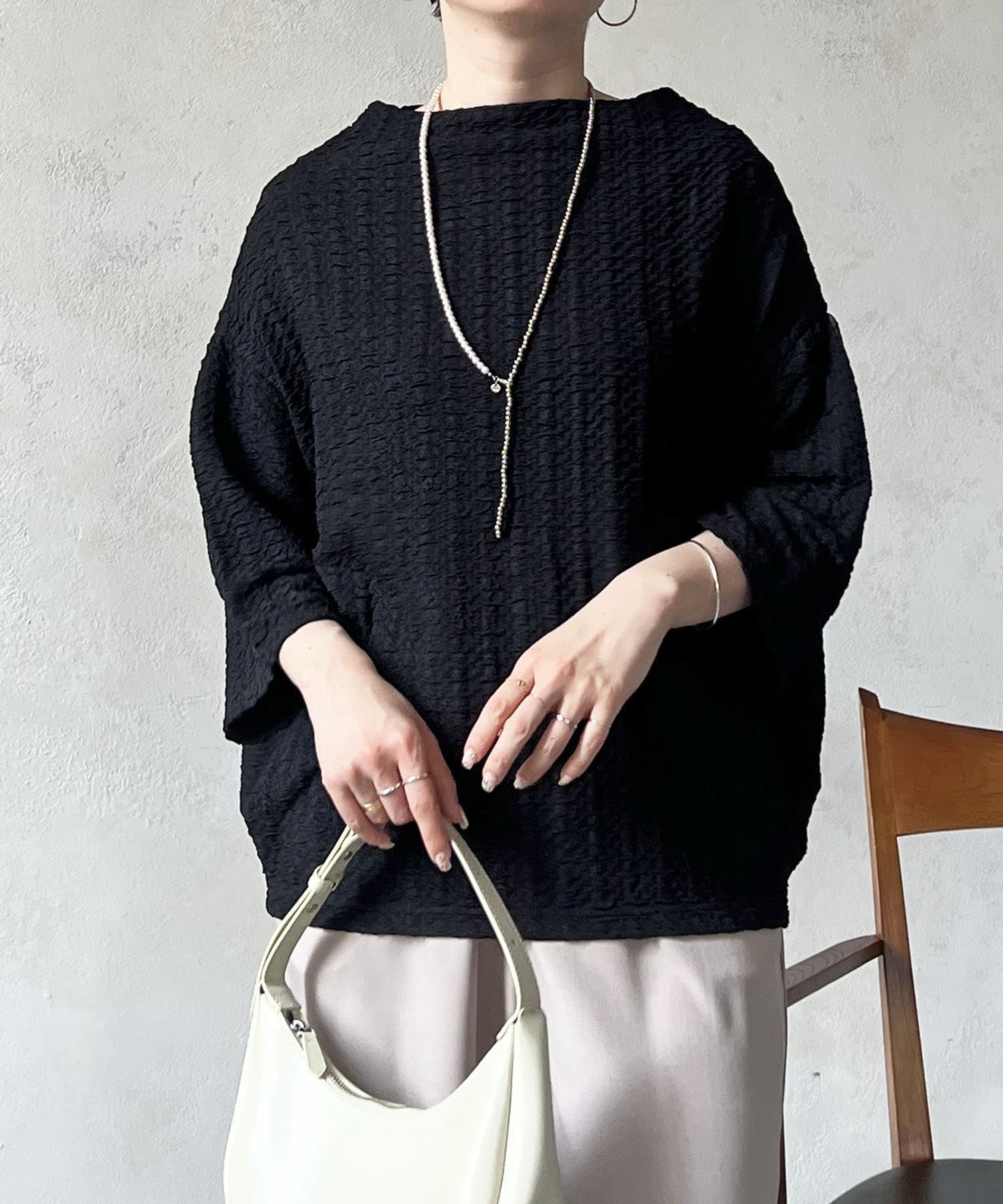 凹凸感が細見え効果を発揮してくれるトップス