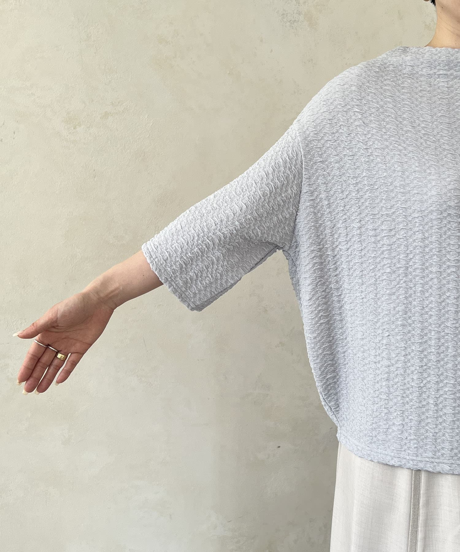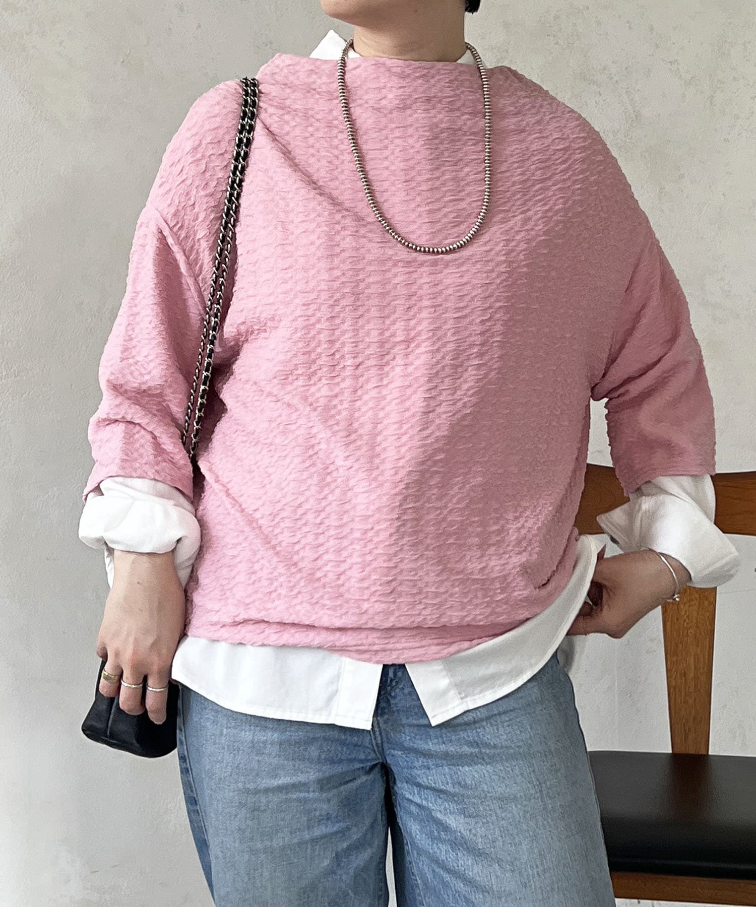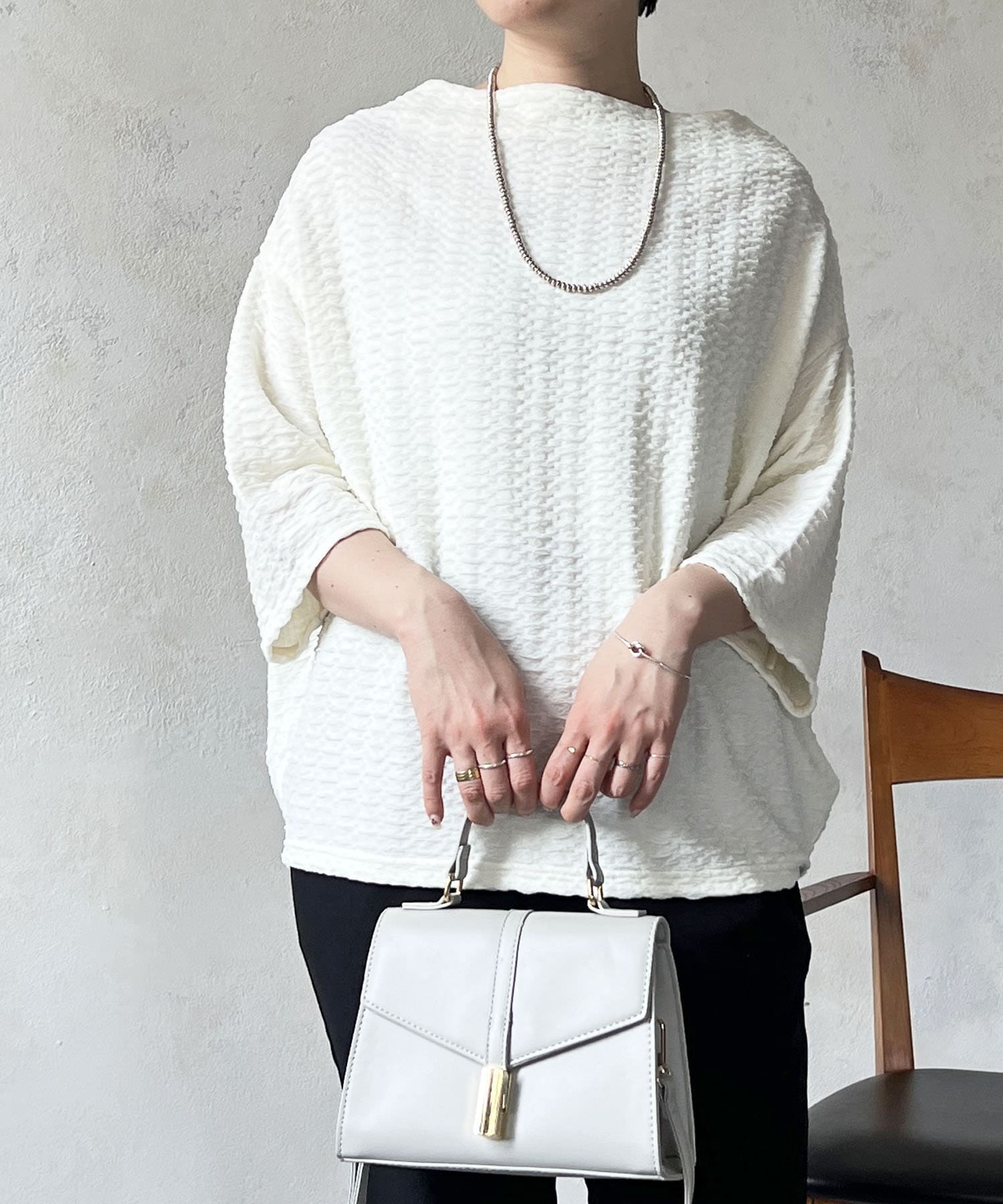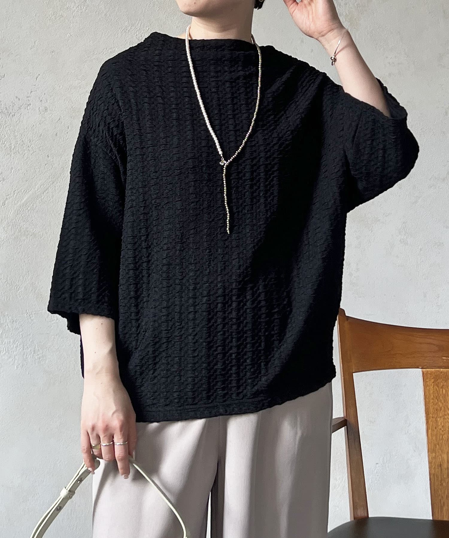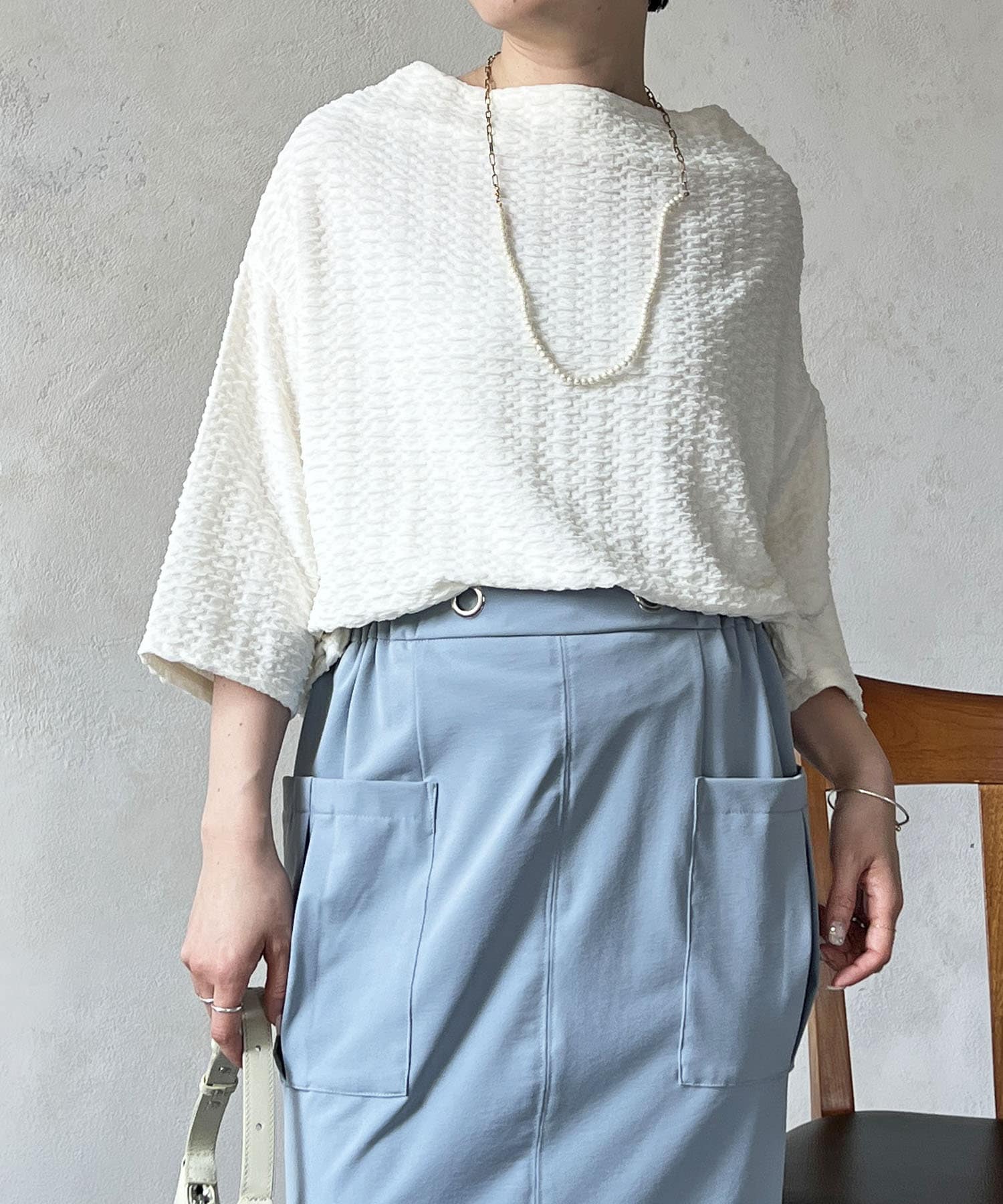 凹凸感が細見え効果を発揮してくれるトップス