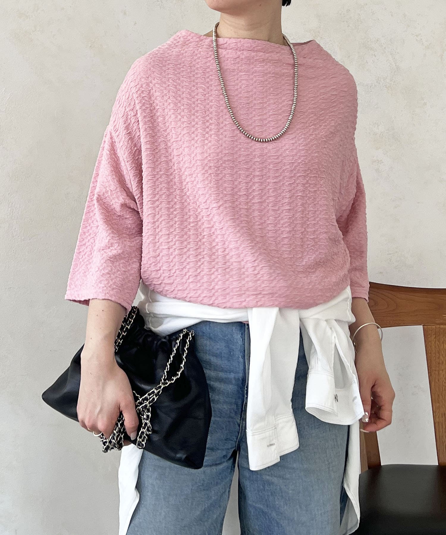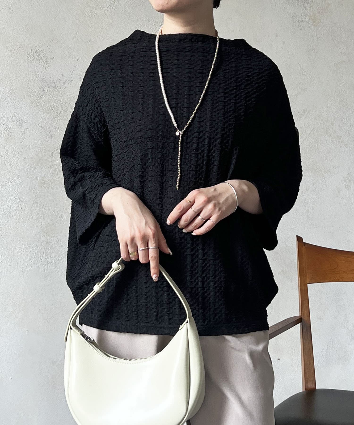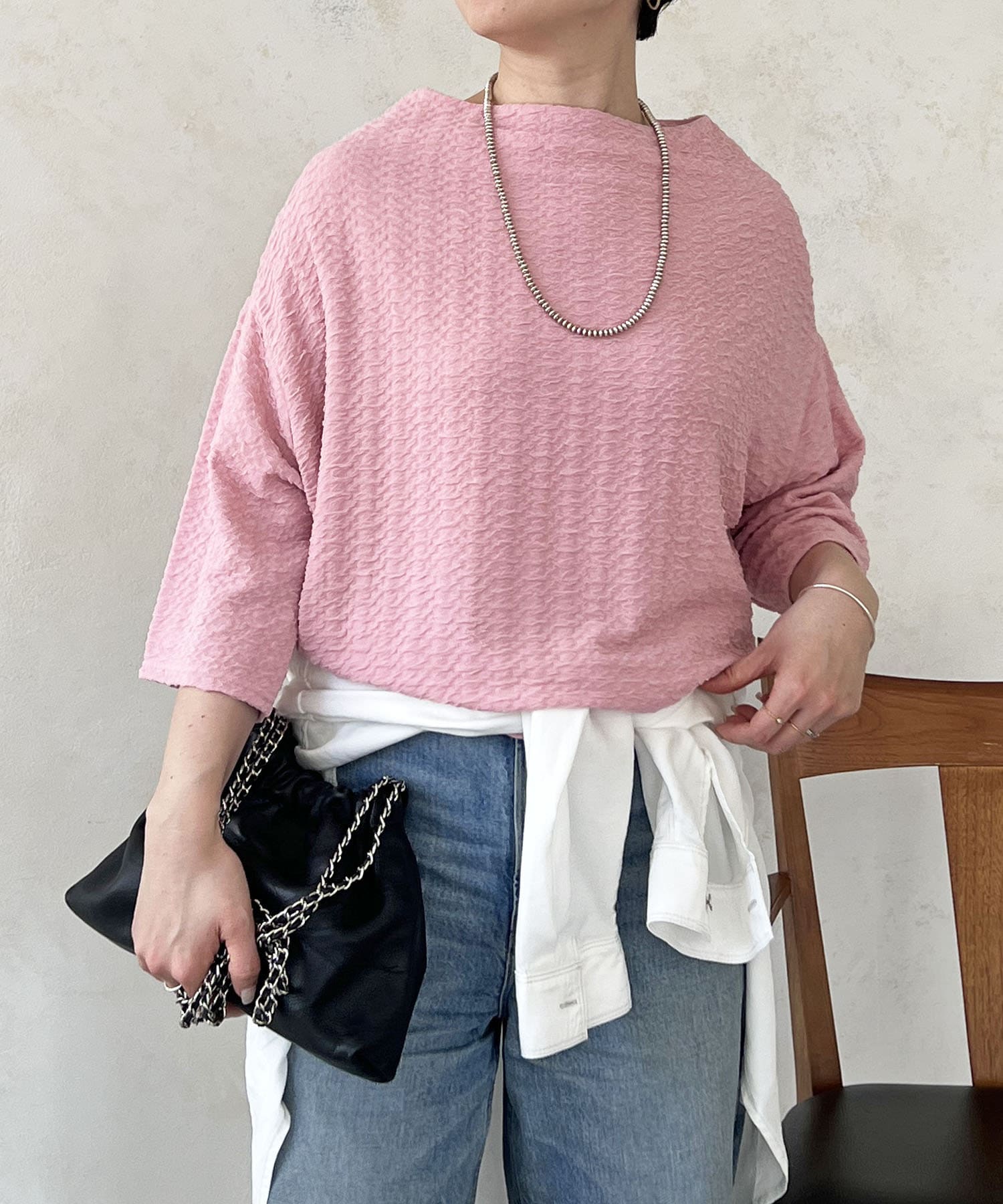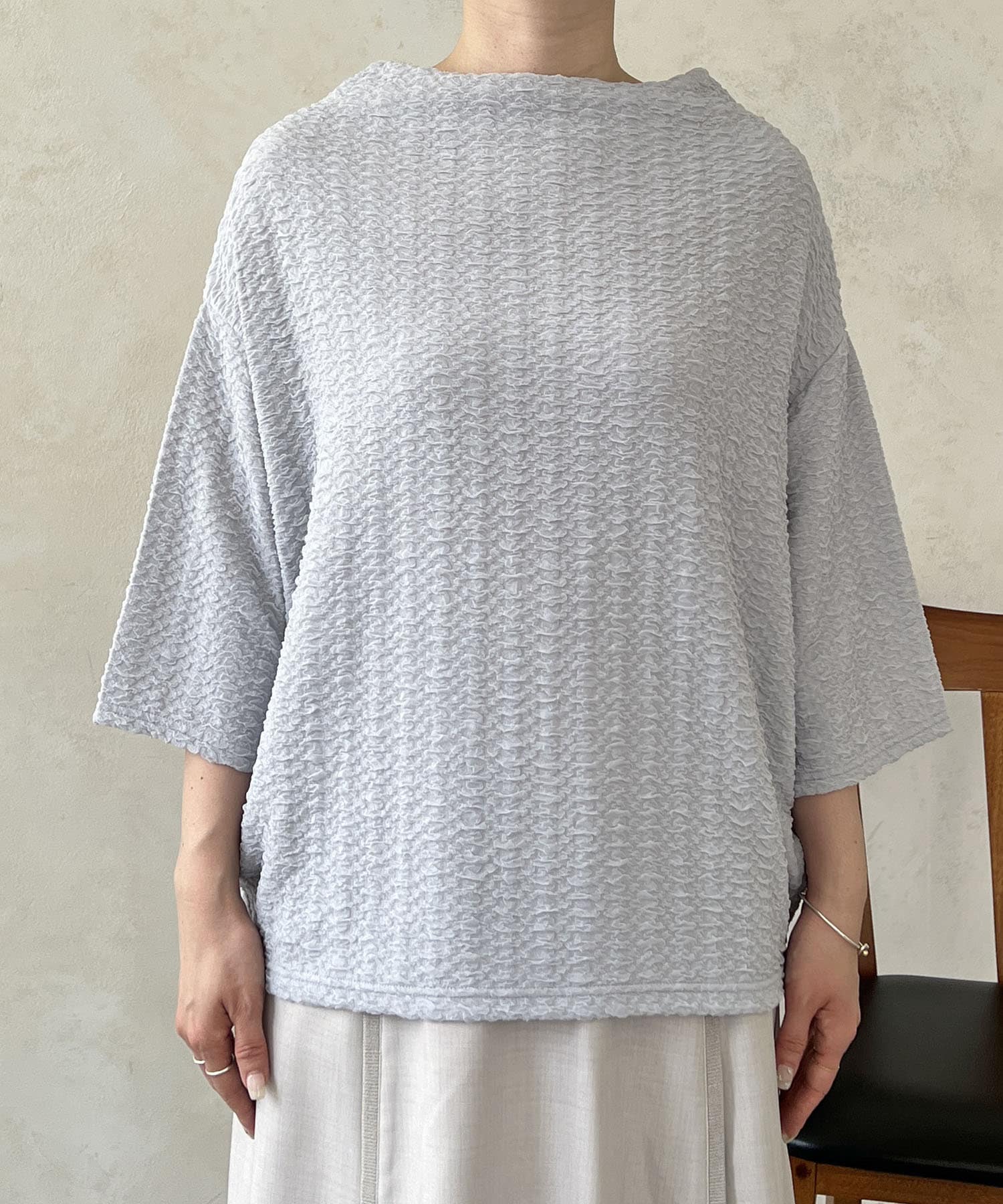 凹凸感が細見え効果を発揮してくれるトップス