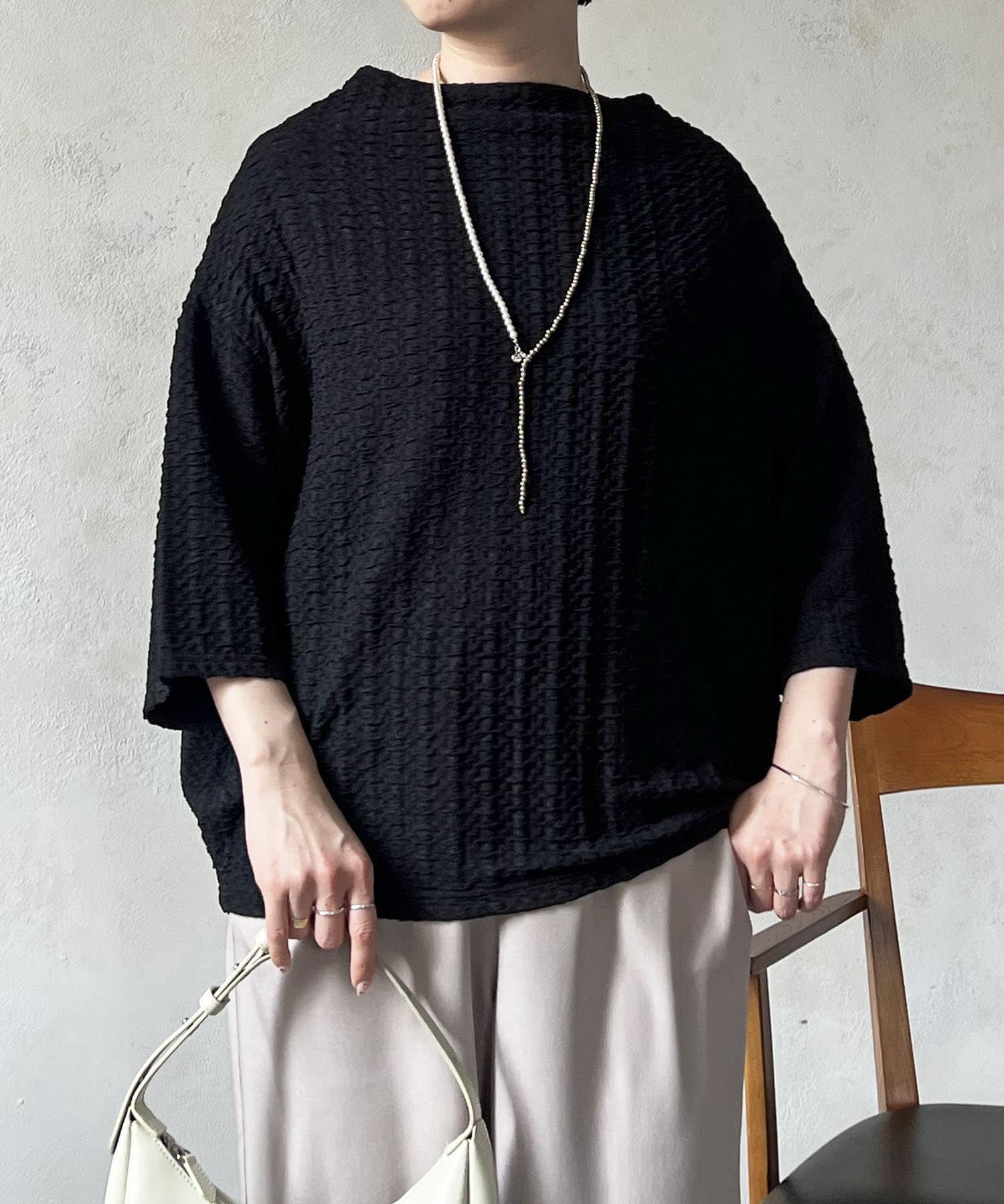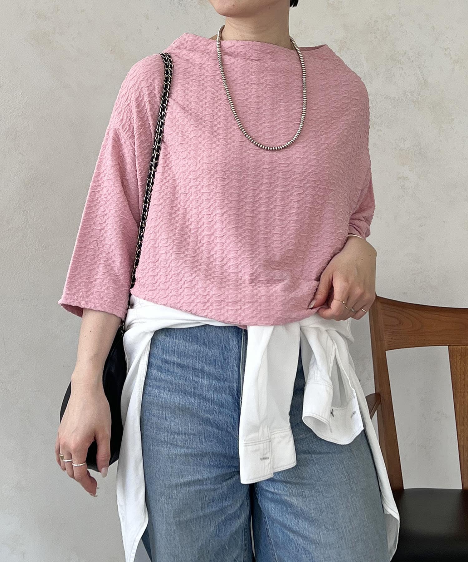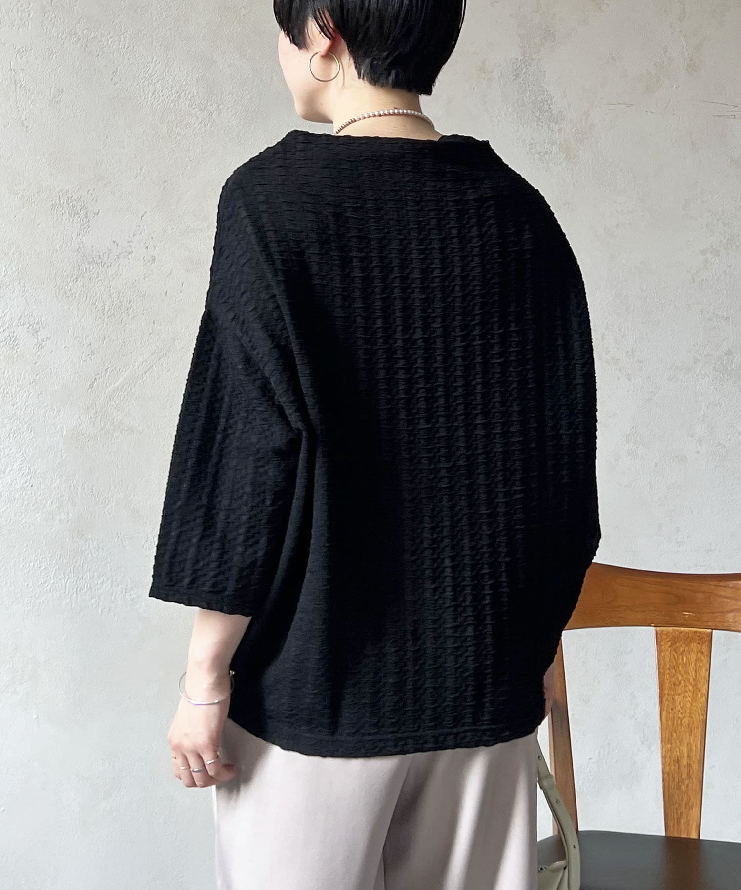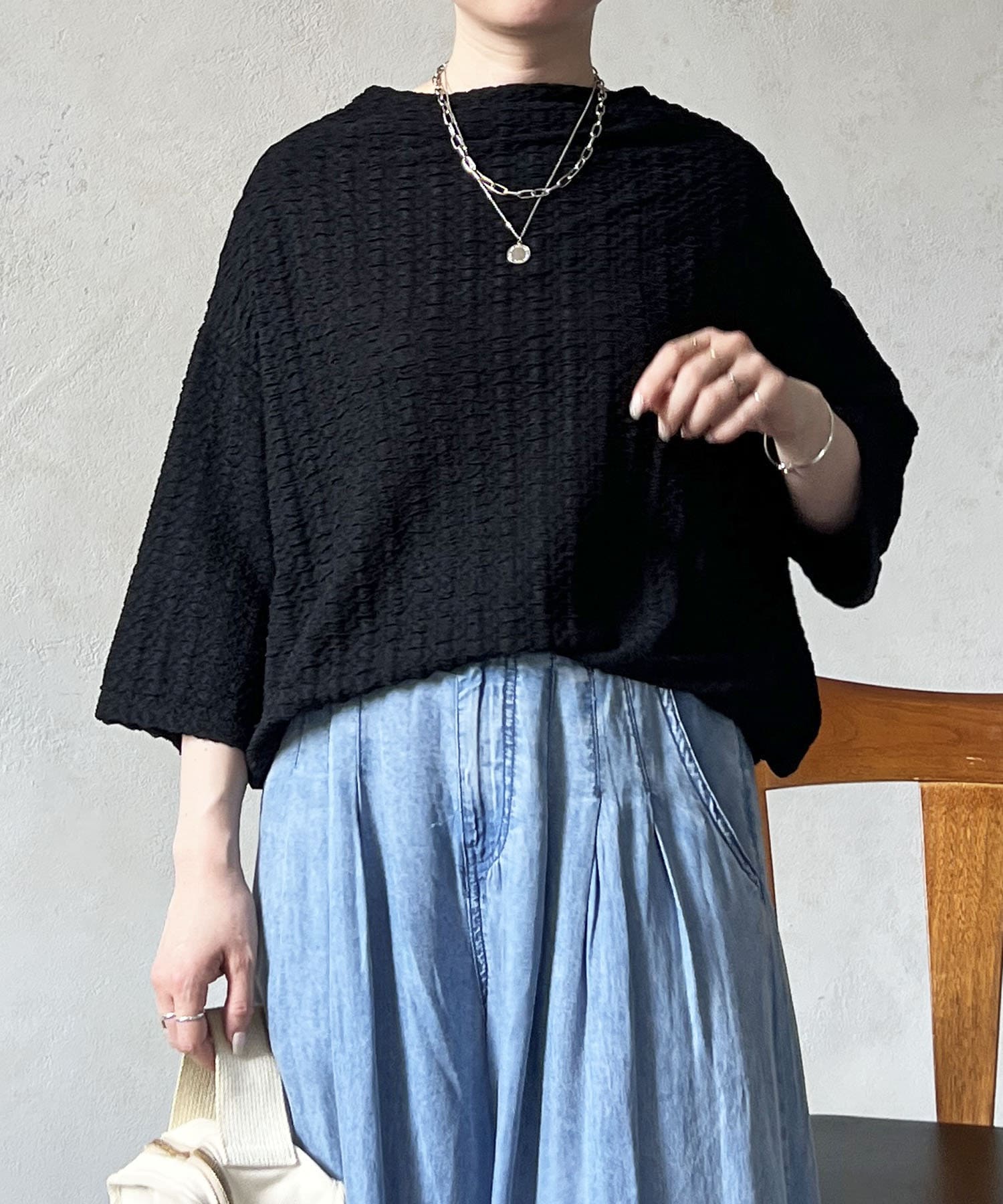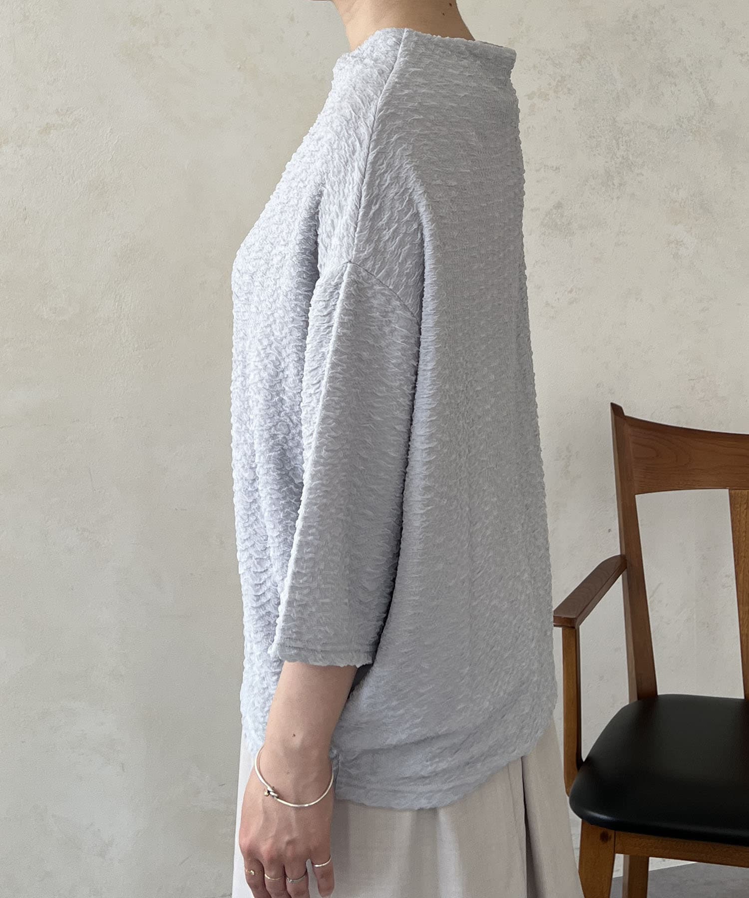 凹凸感が細見え効果を発揮してくれるトップス