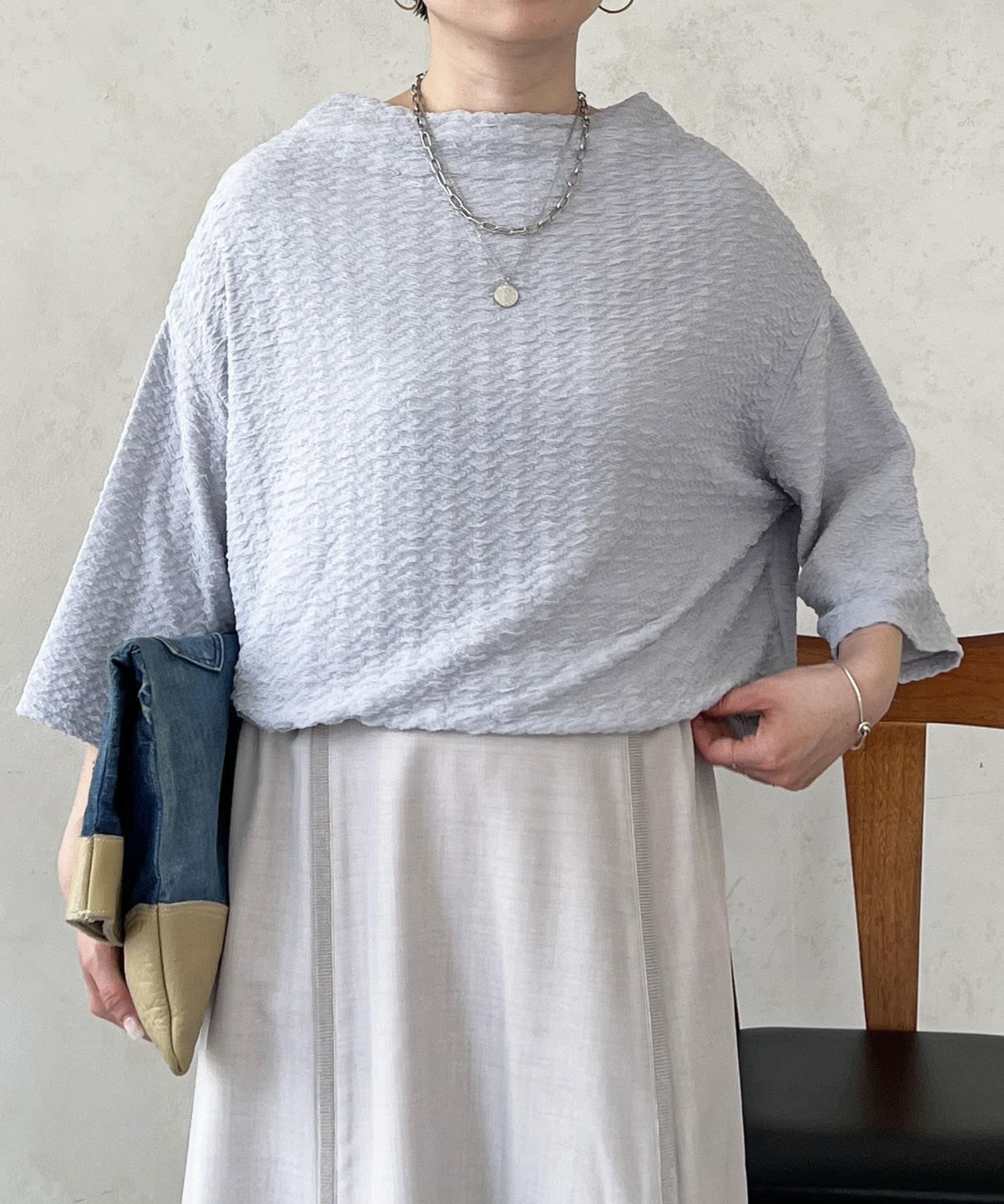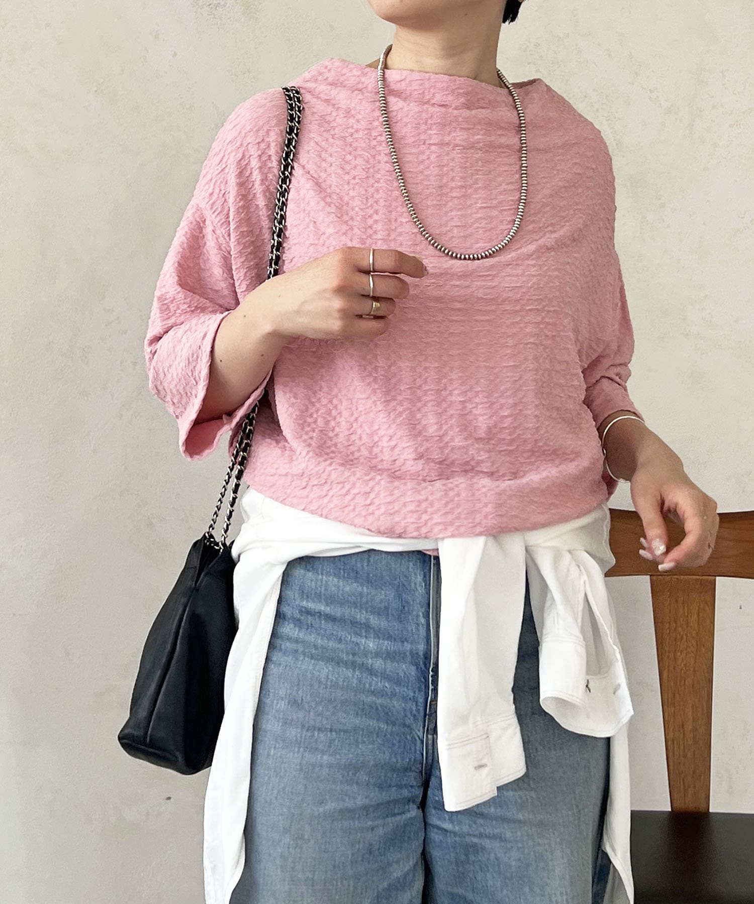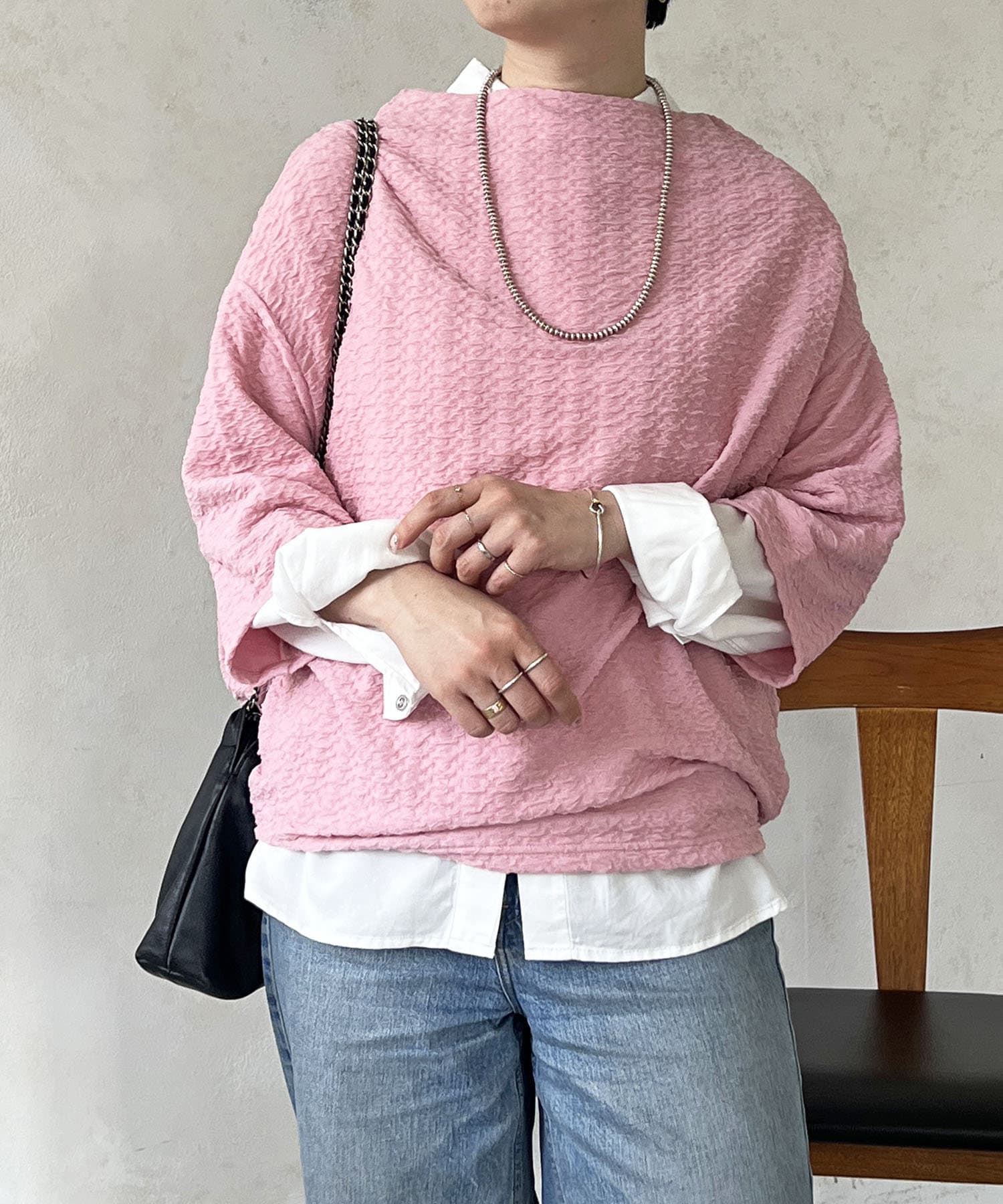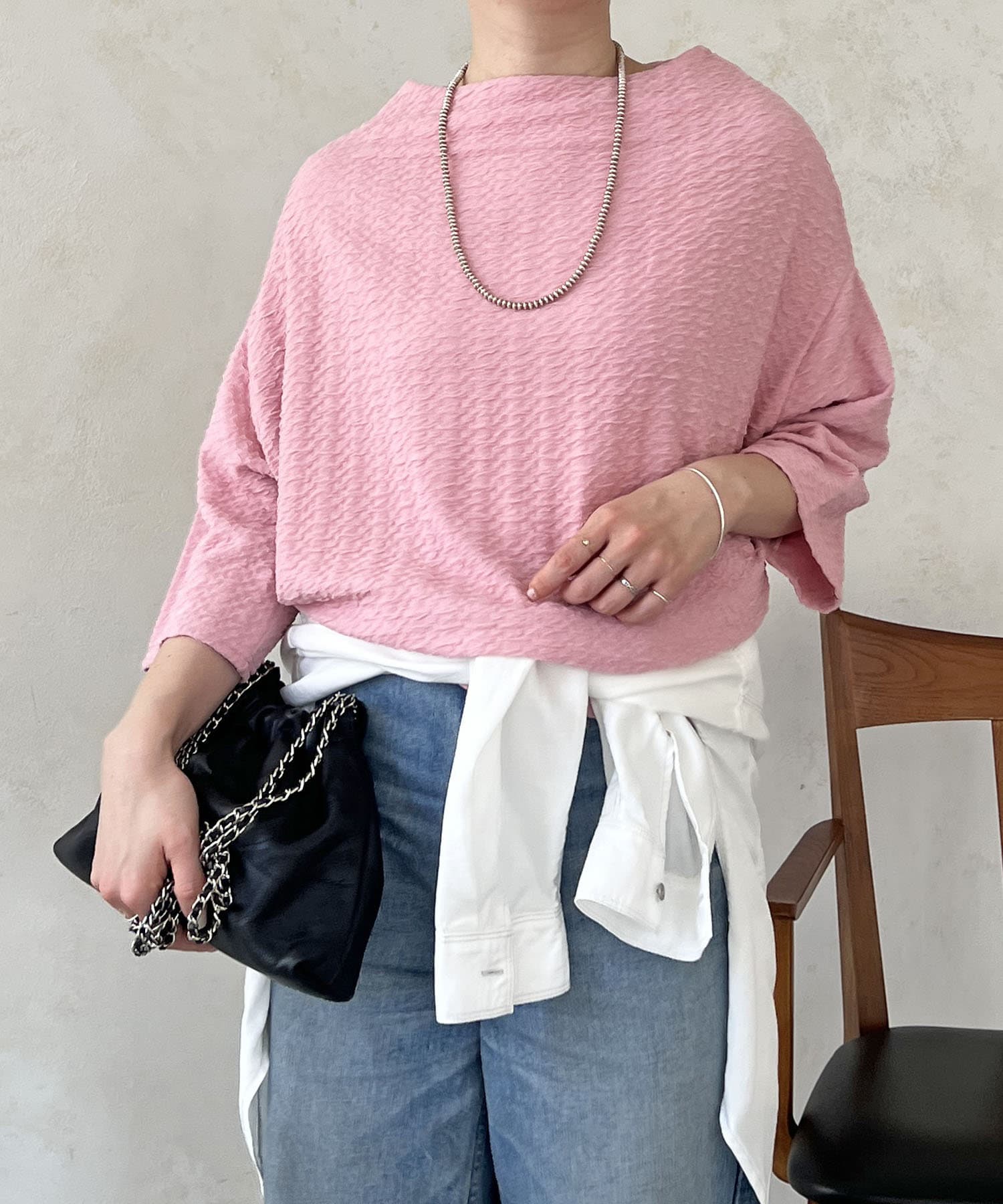 凹凸感が細見え効果を発揮してくれるトップス