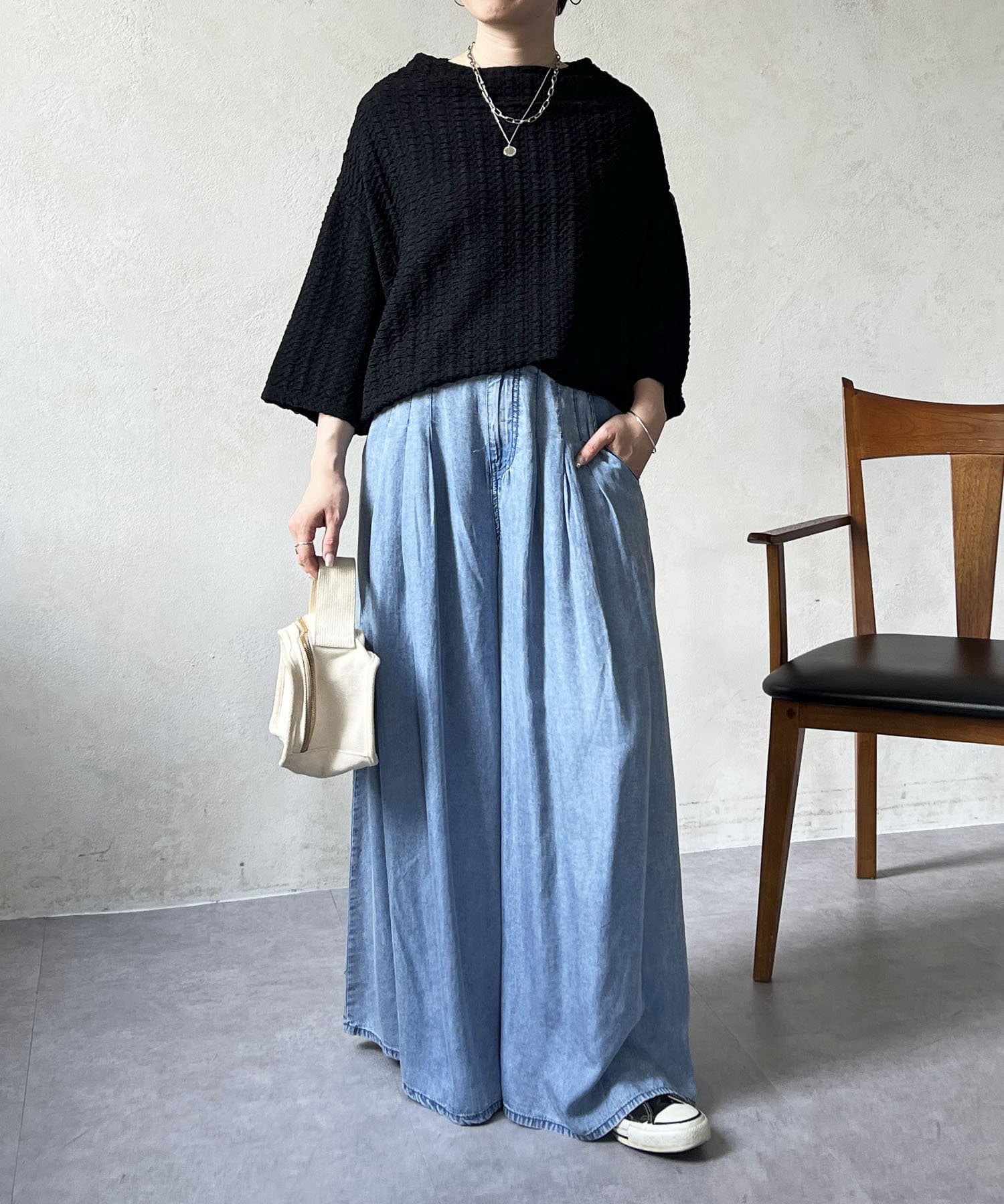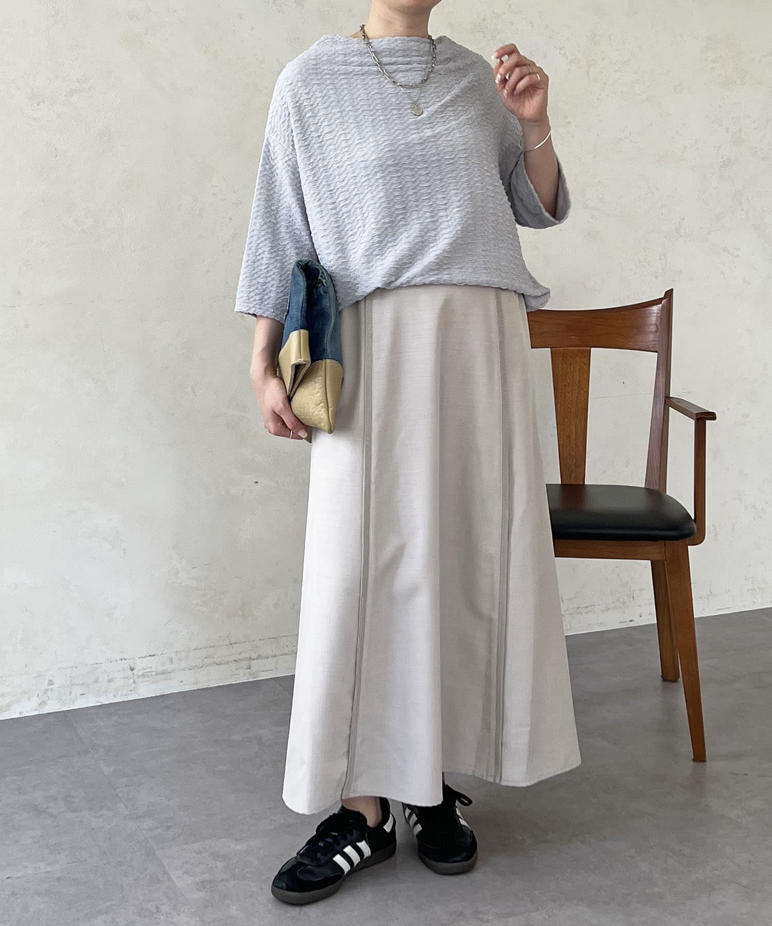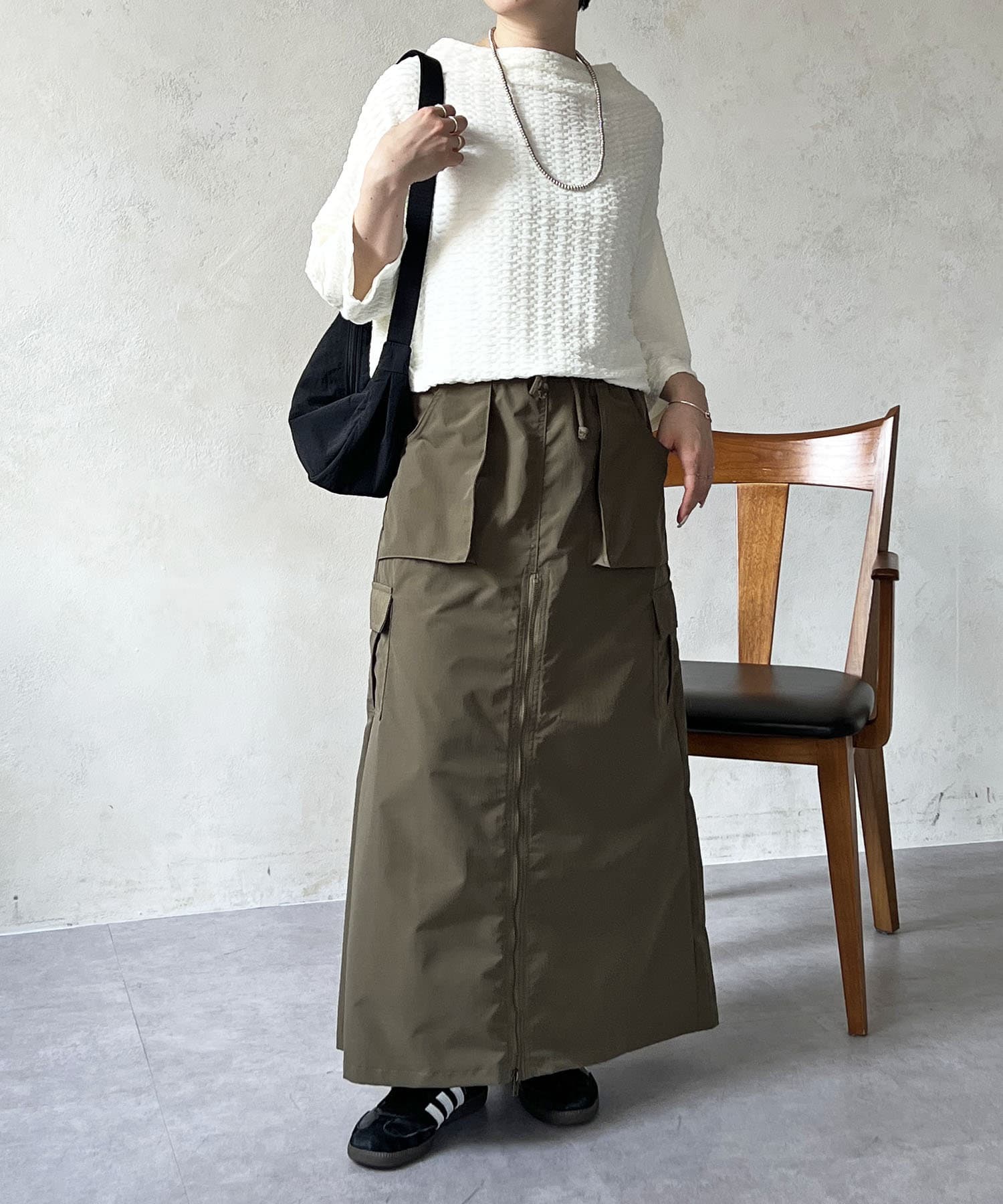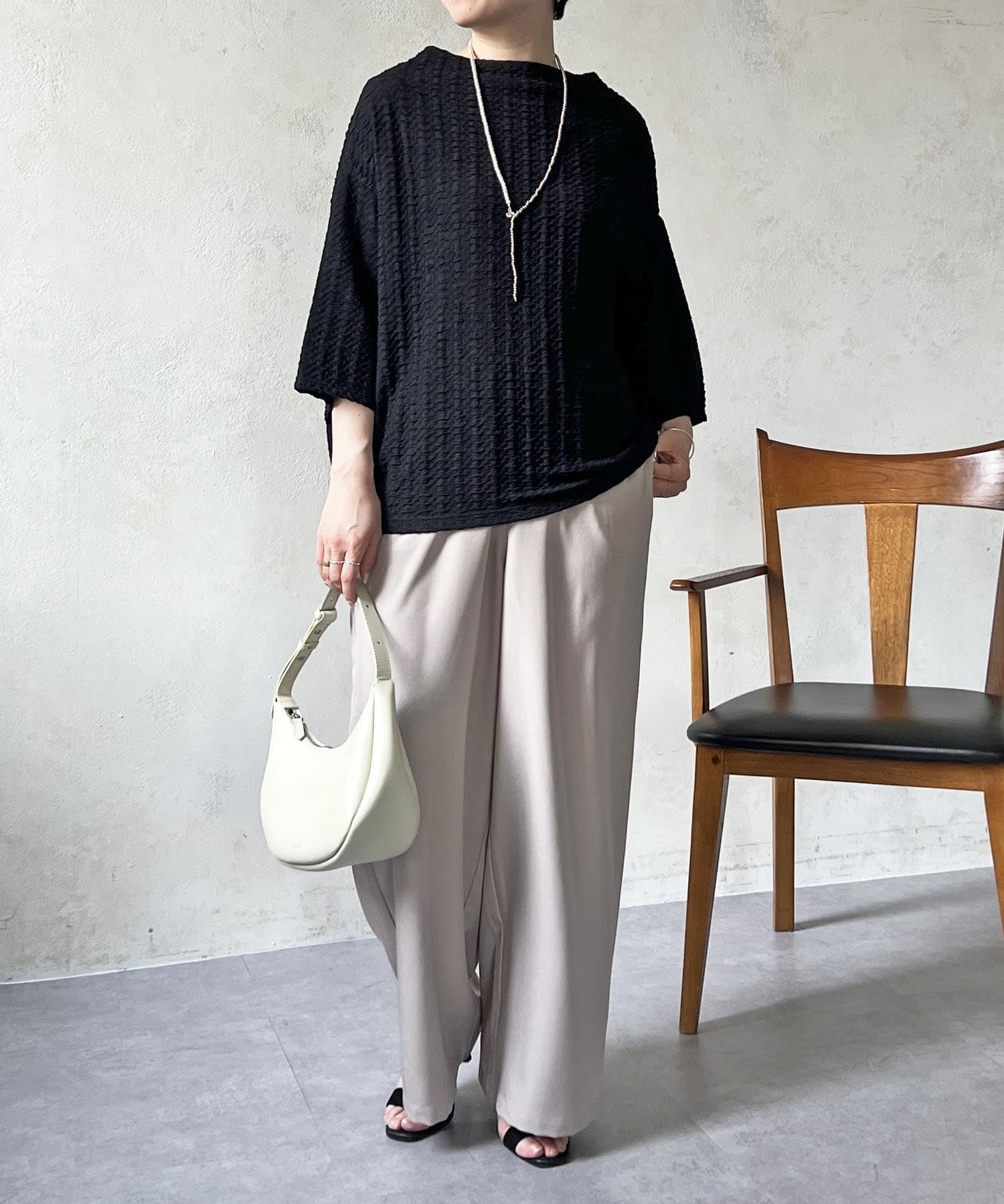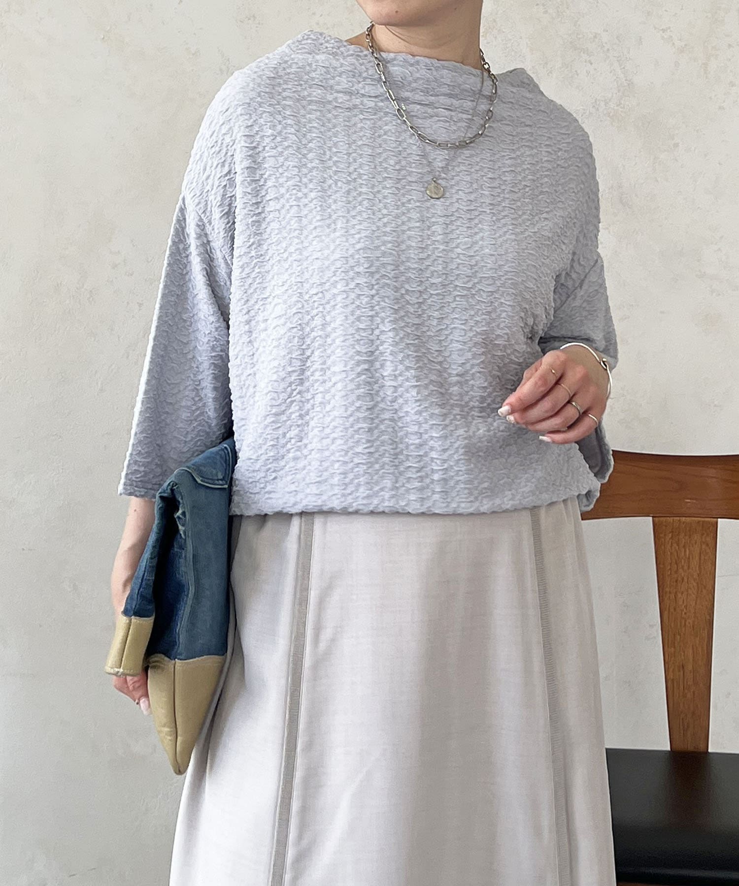 凹凸感が細見え効果を発揮してくれるトップス