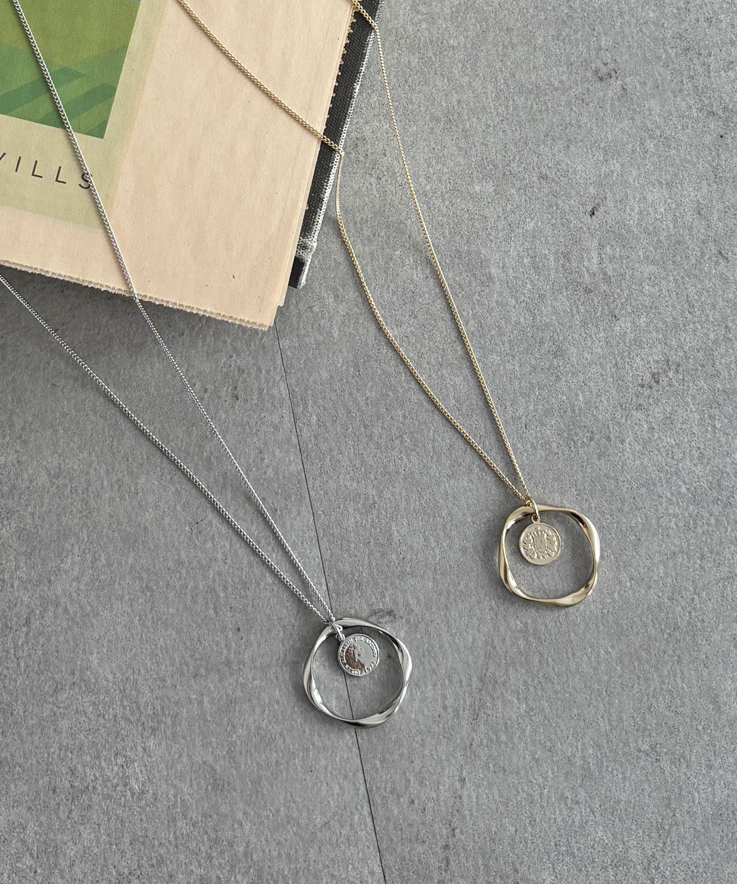 コーディネートを格上げしてくれるツイストリング×コインのロングチェーンネックレス
