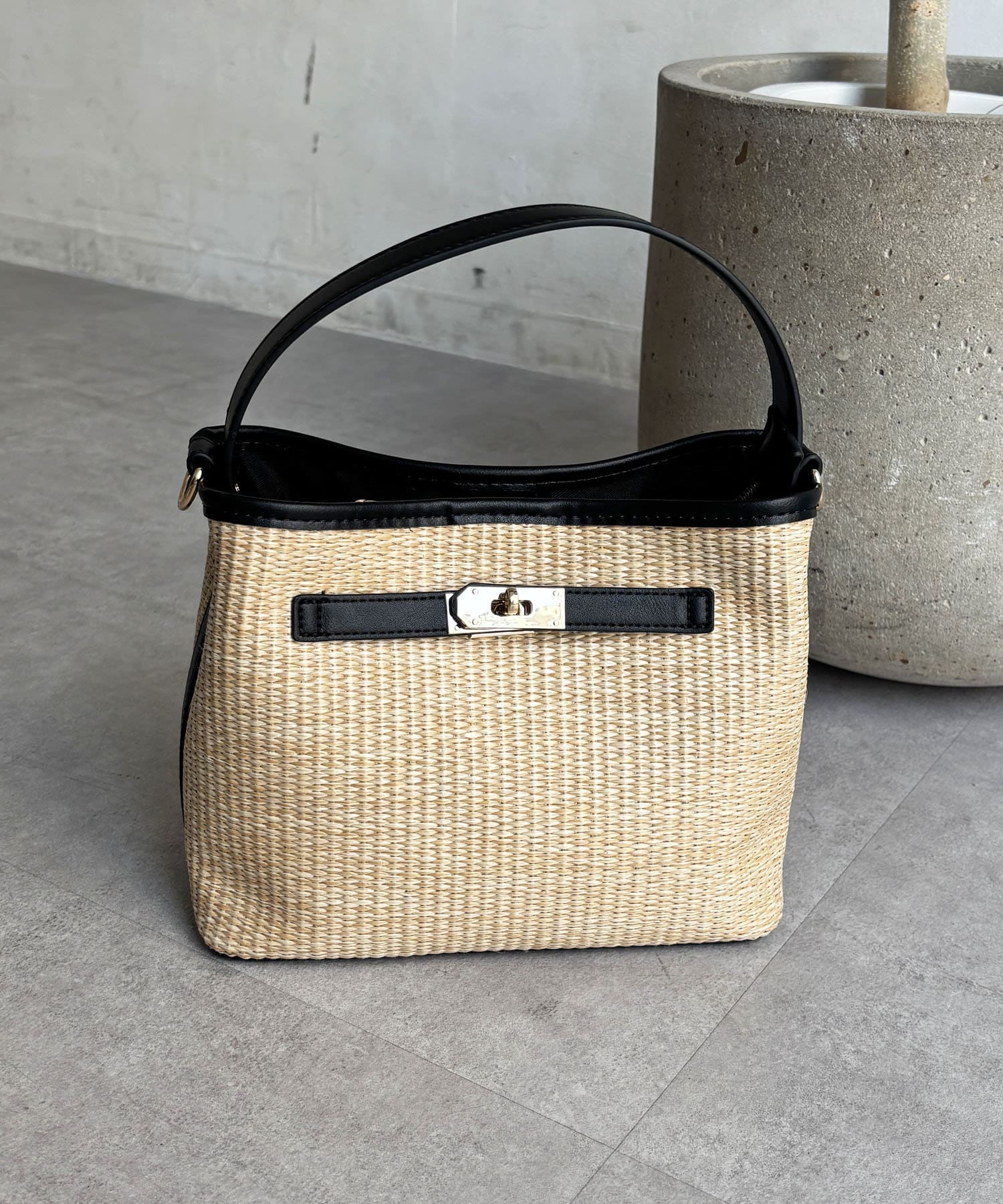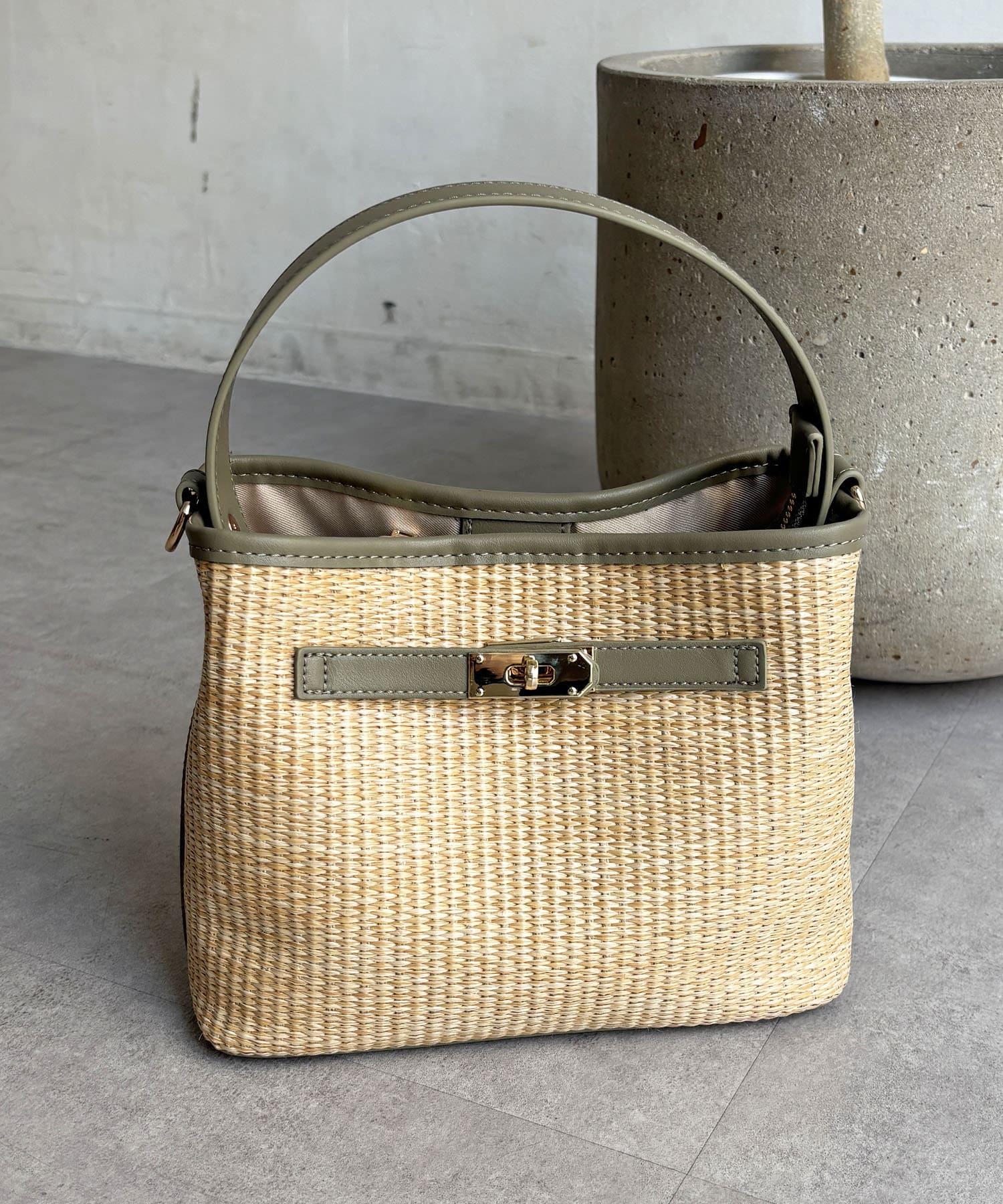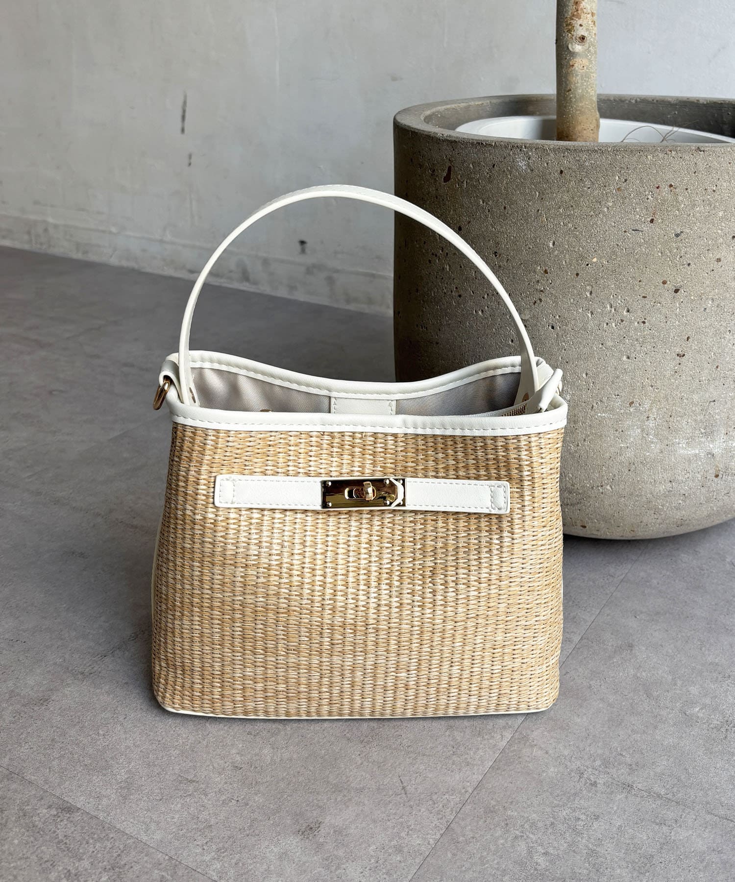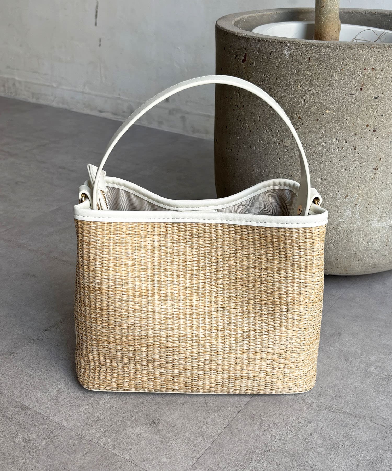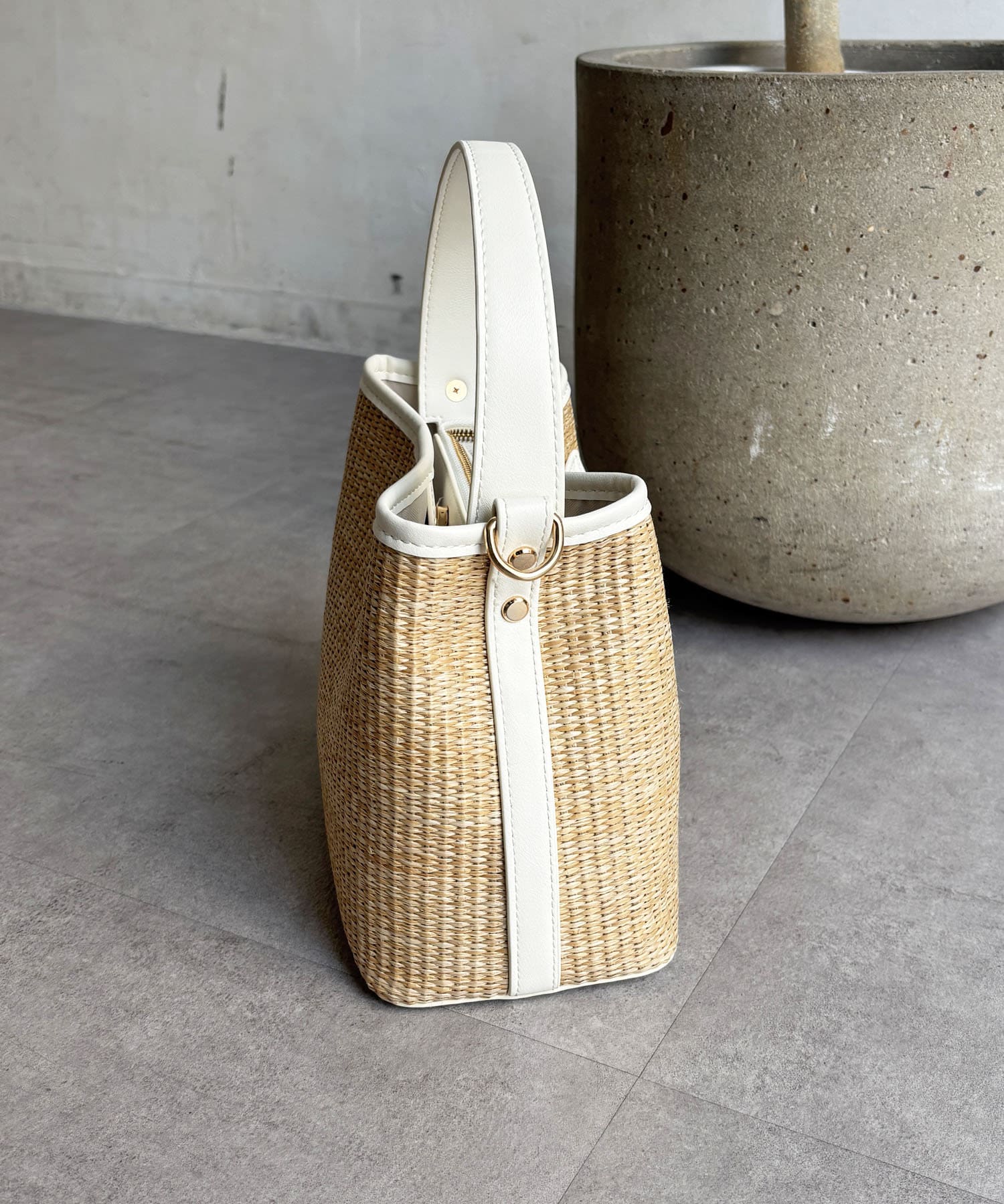 ・バスケット素材×異素材のドッキングで、上品な雰囲気に