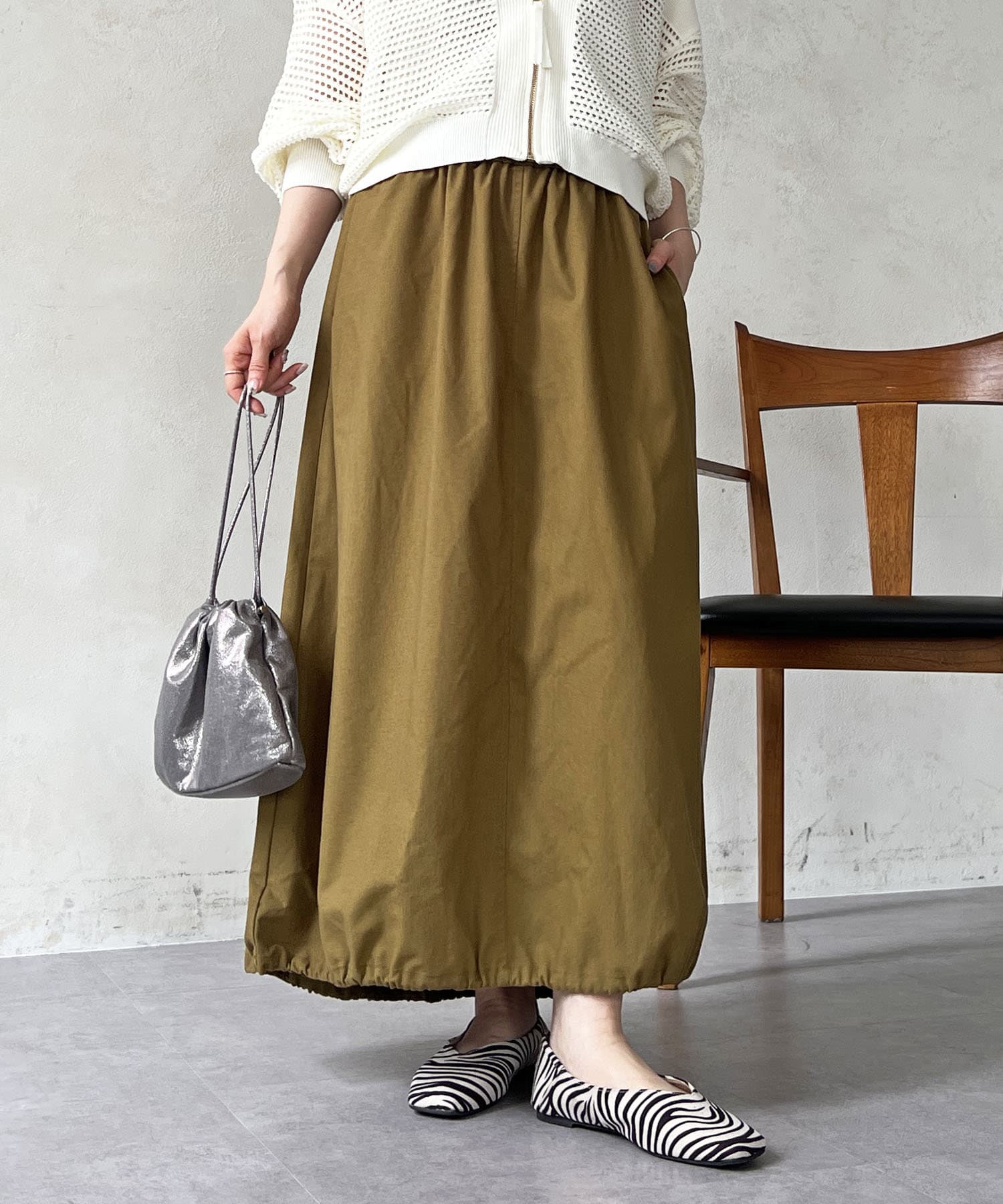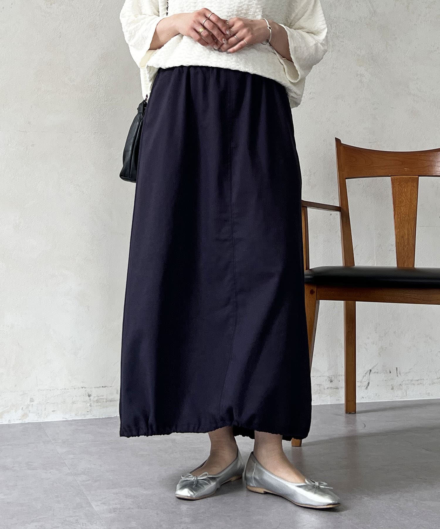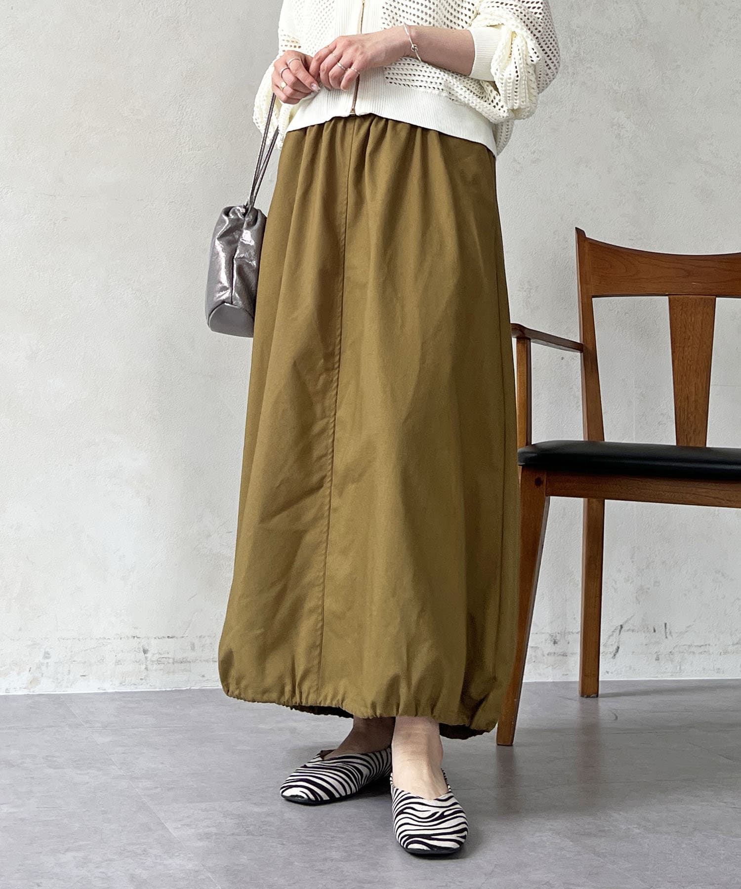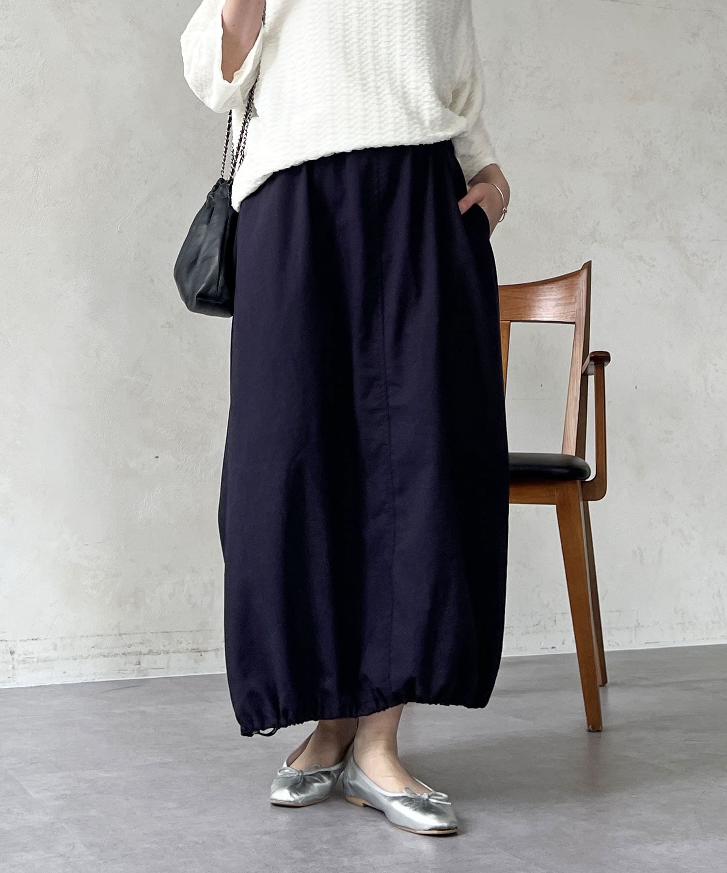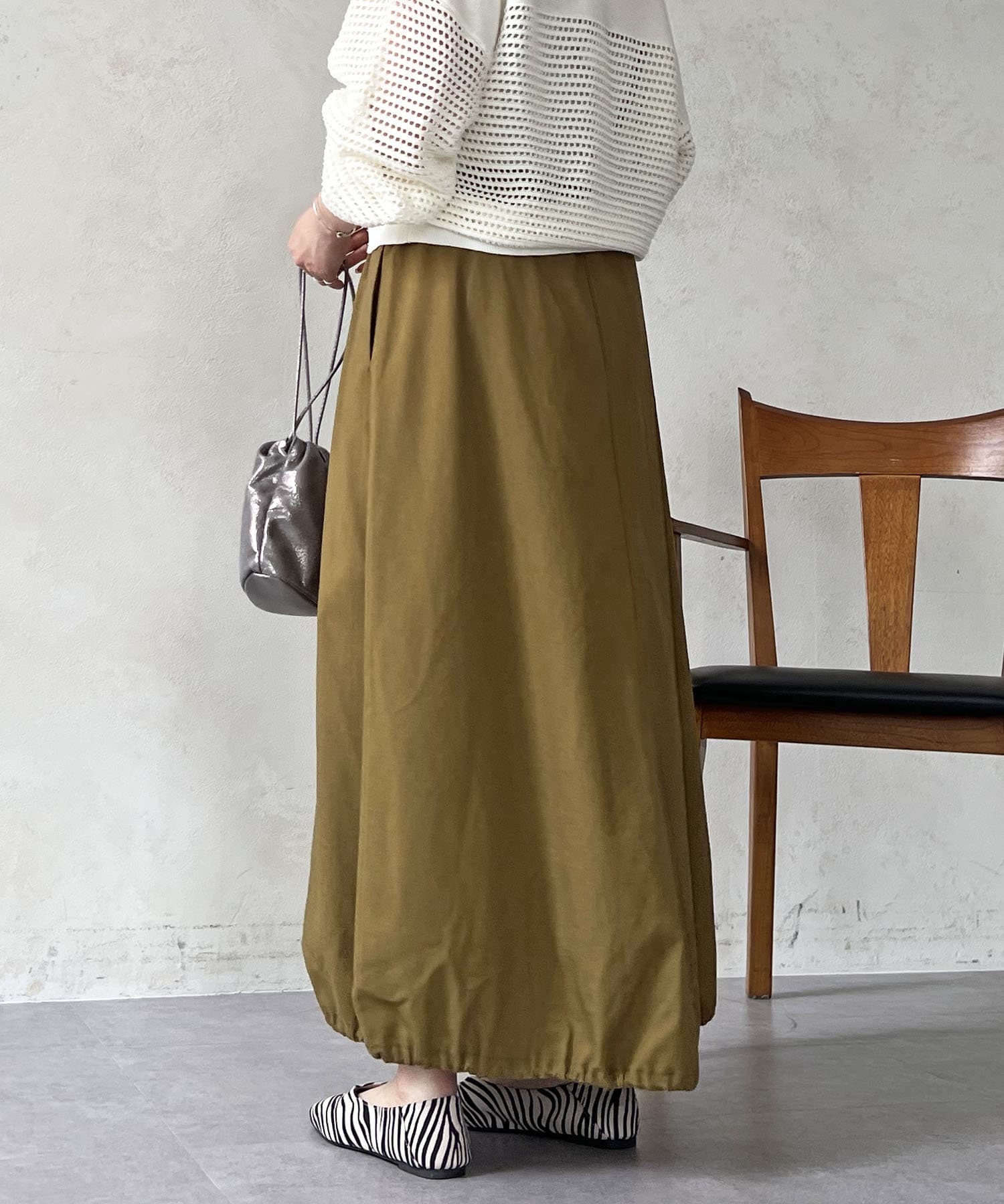 ・裾のドロストでバルーンスカートにも、落ち感のあるスカートにもアレンジできる