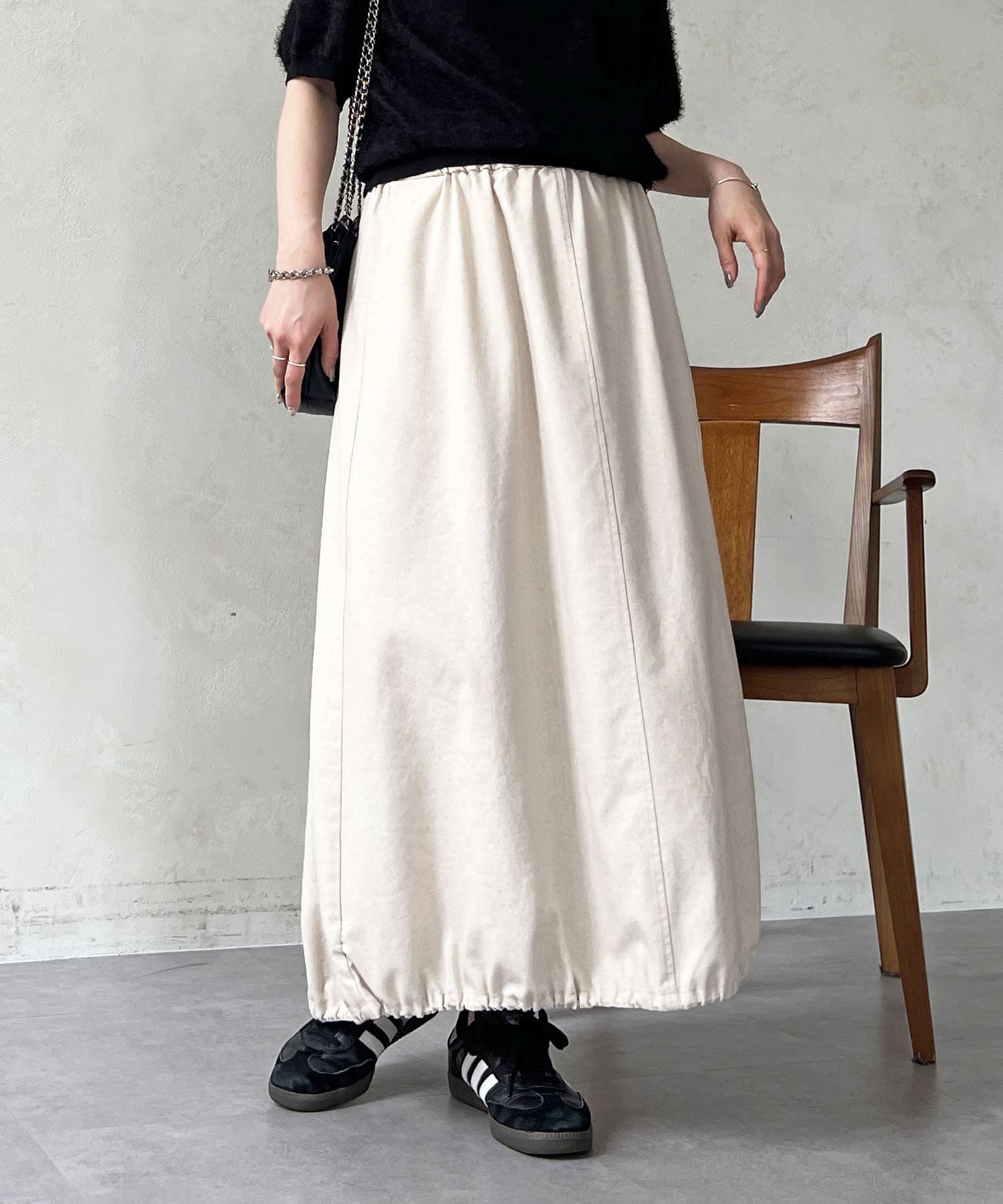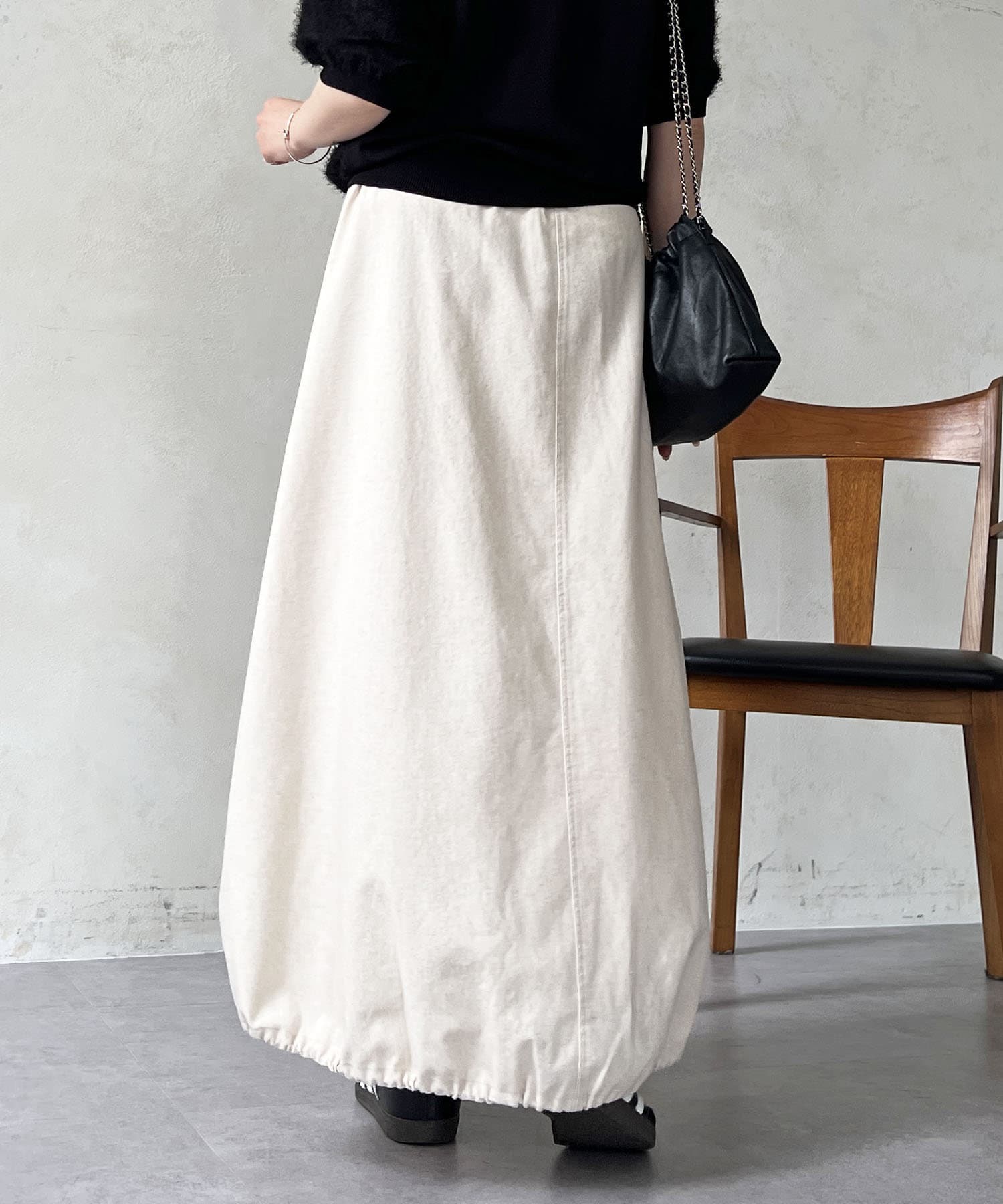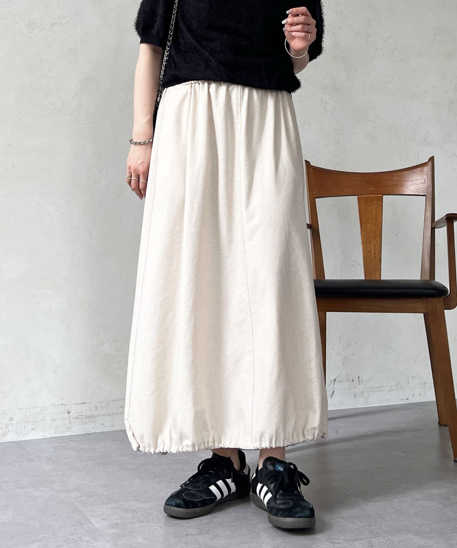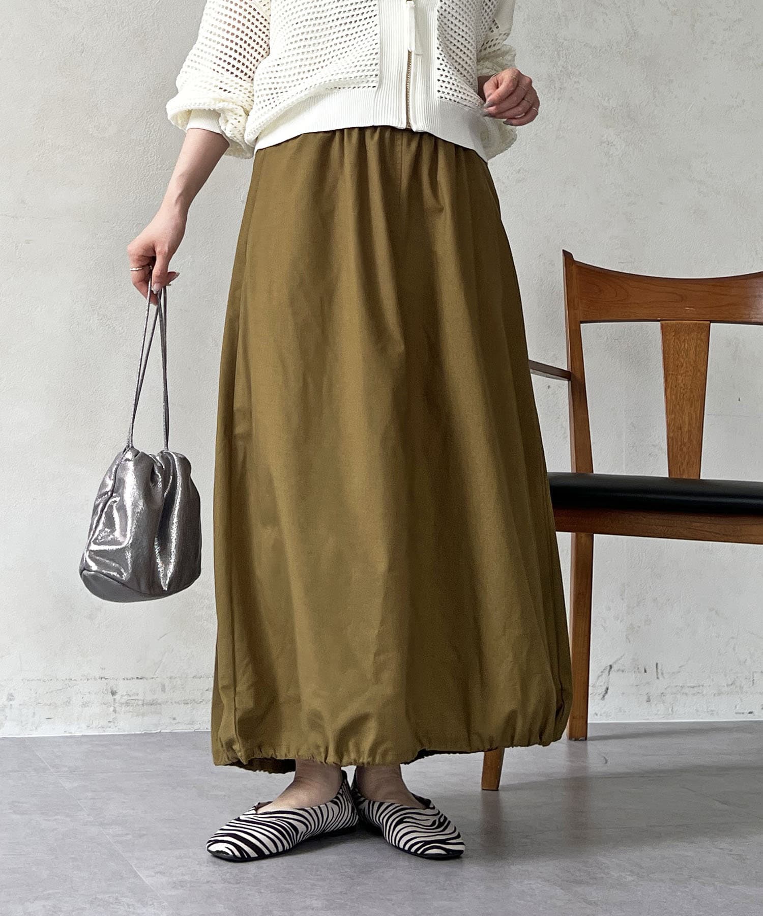 ・裾のドロストでバルーンスカートにも、落ち感のあるスカートにもアレンジできる