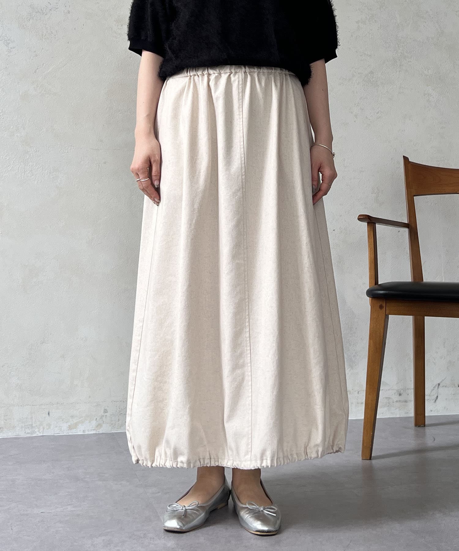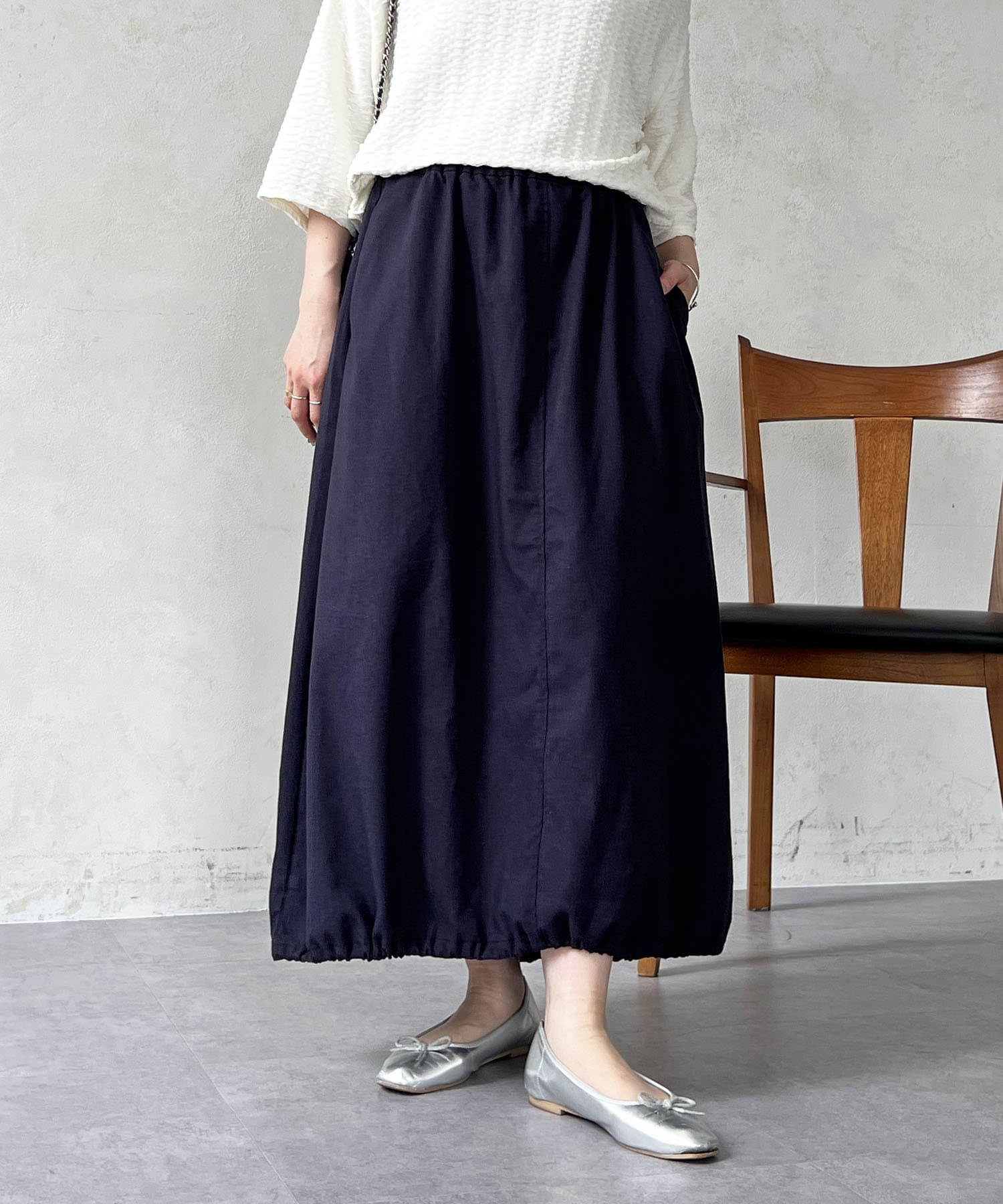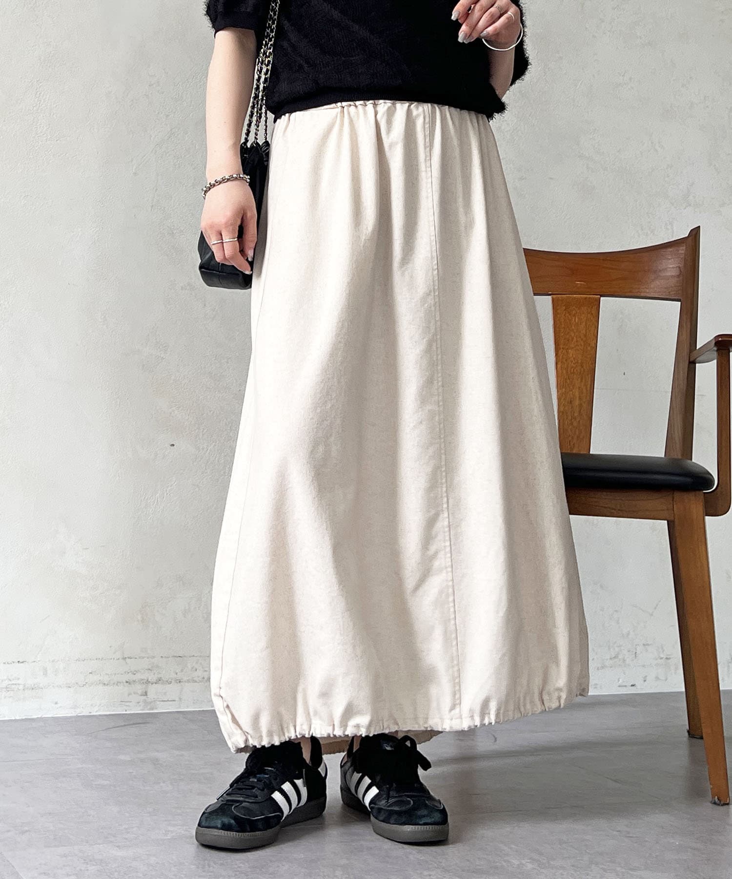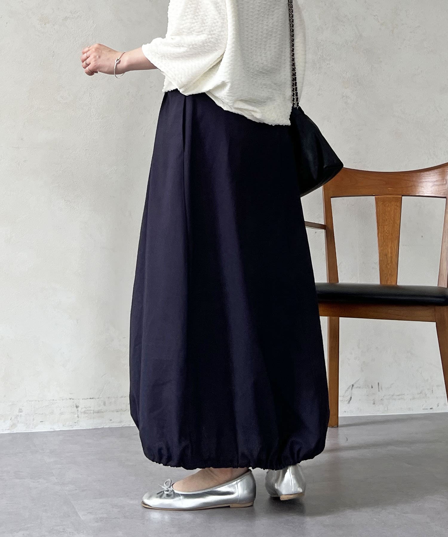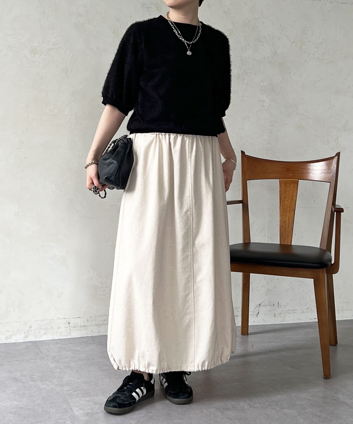 ・裾のドロストでバルーンスカートにも、落ち感のあるスカートにもアレンジできる