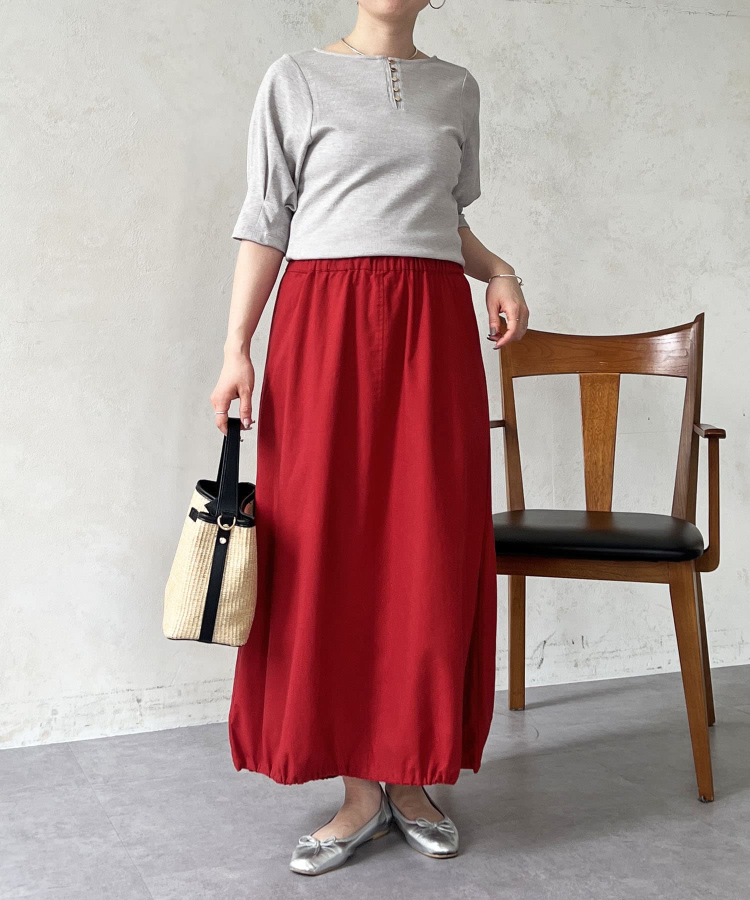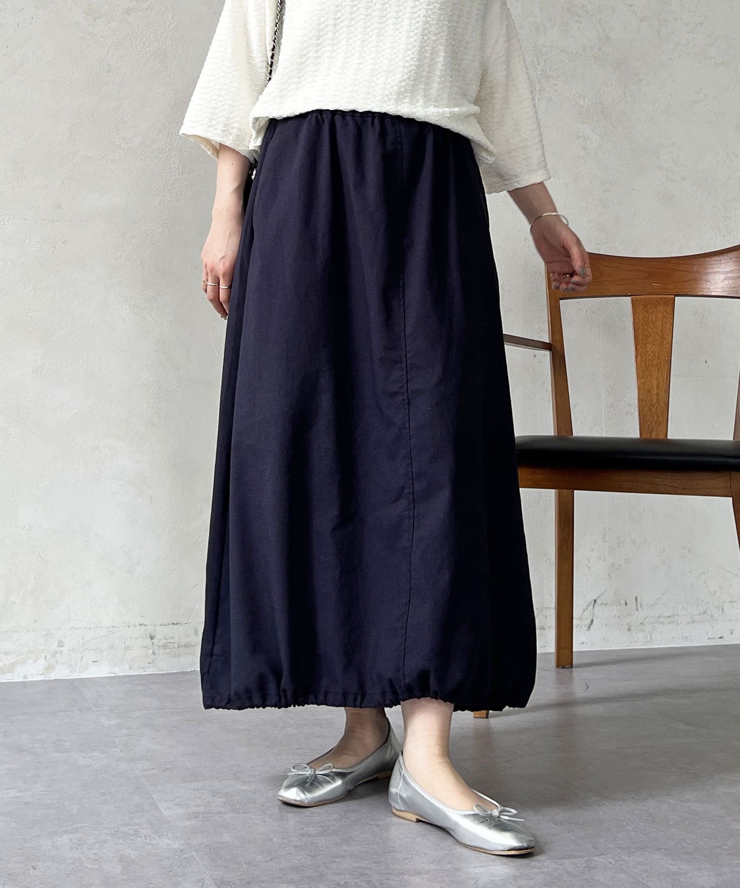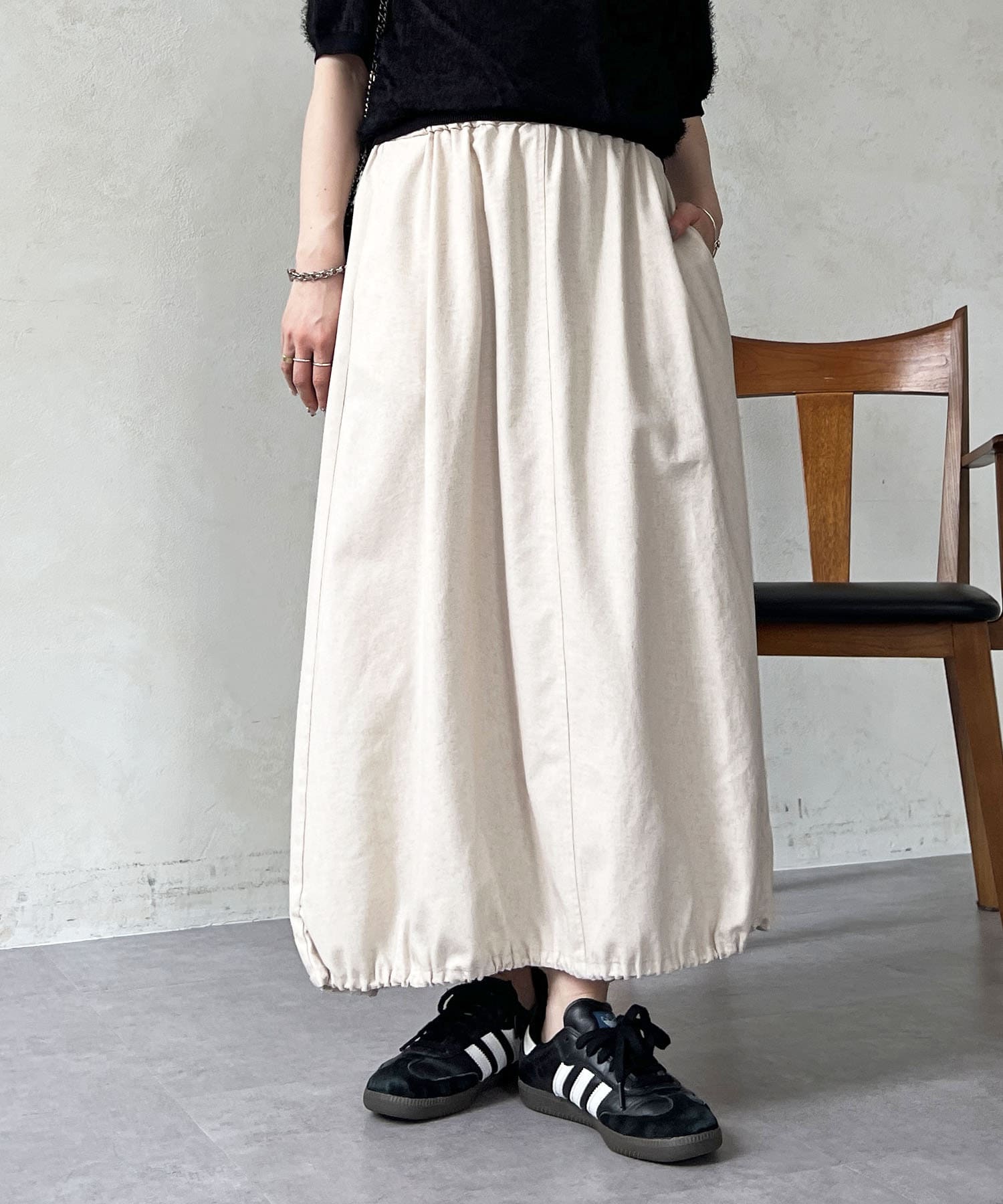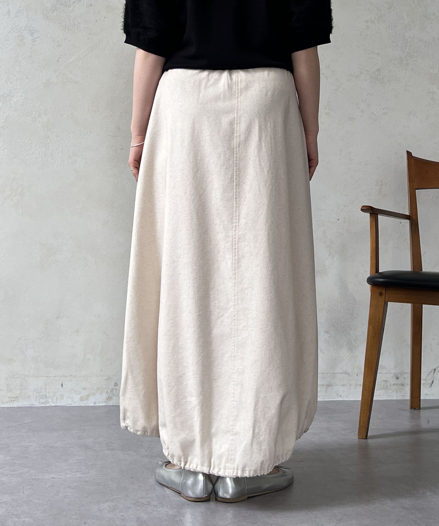 ・裾のドロストでバルーンスカートにも、落ち感のあるスカートにもアレンジできる