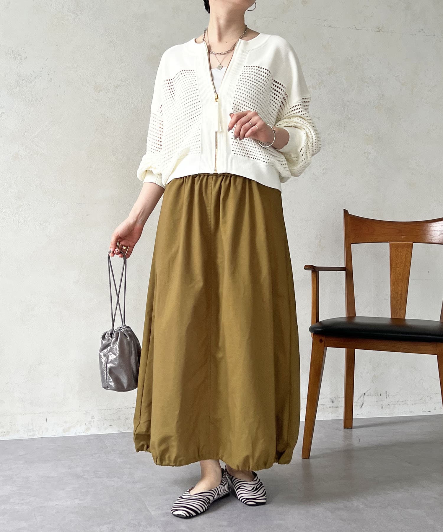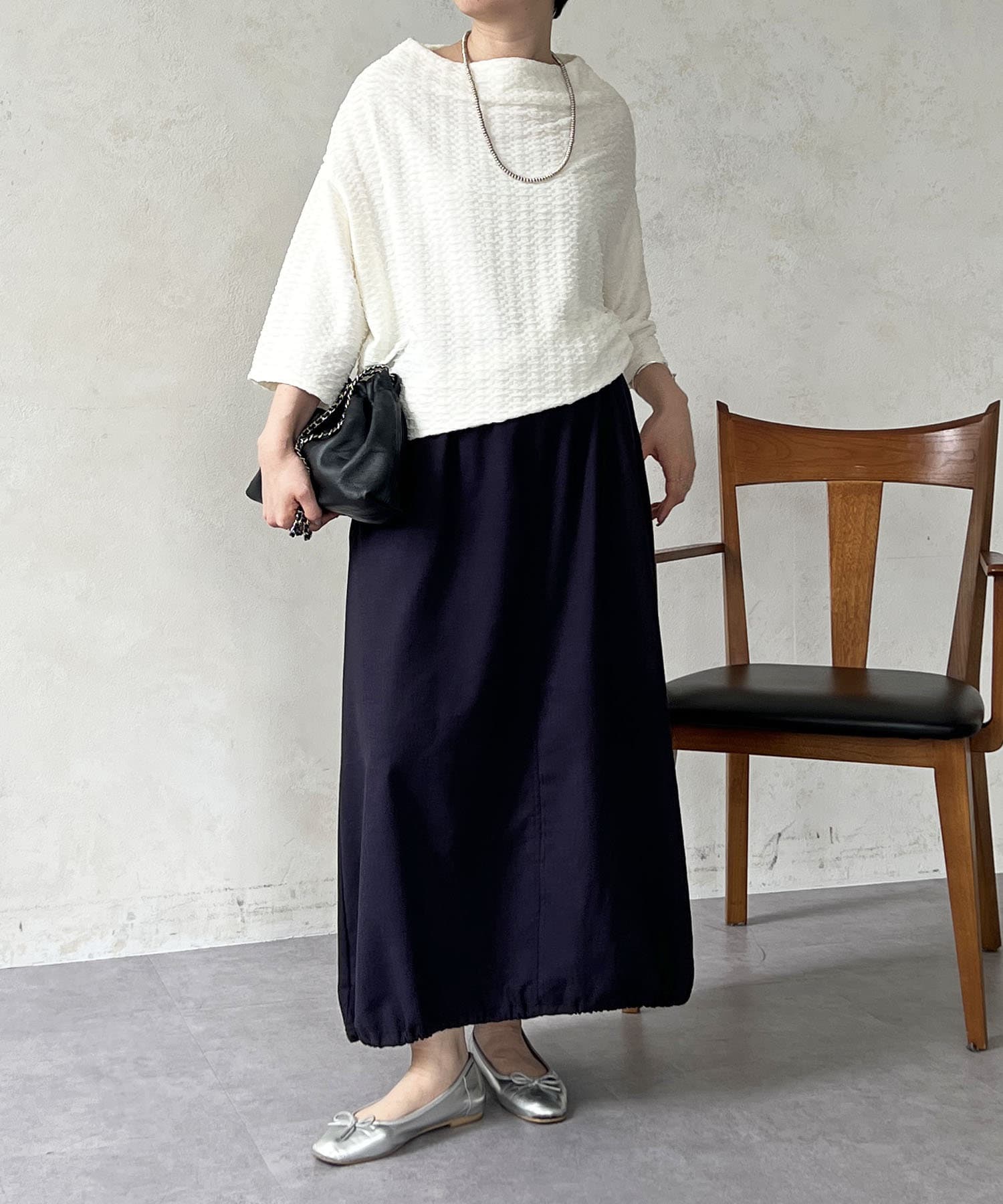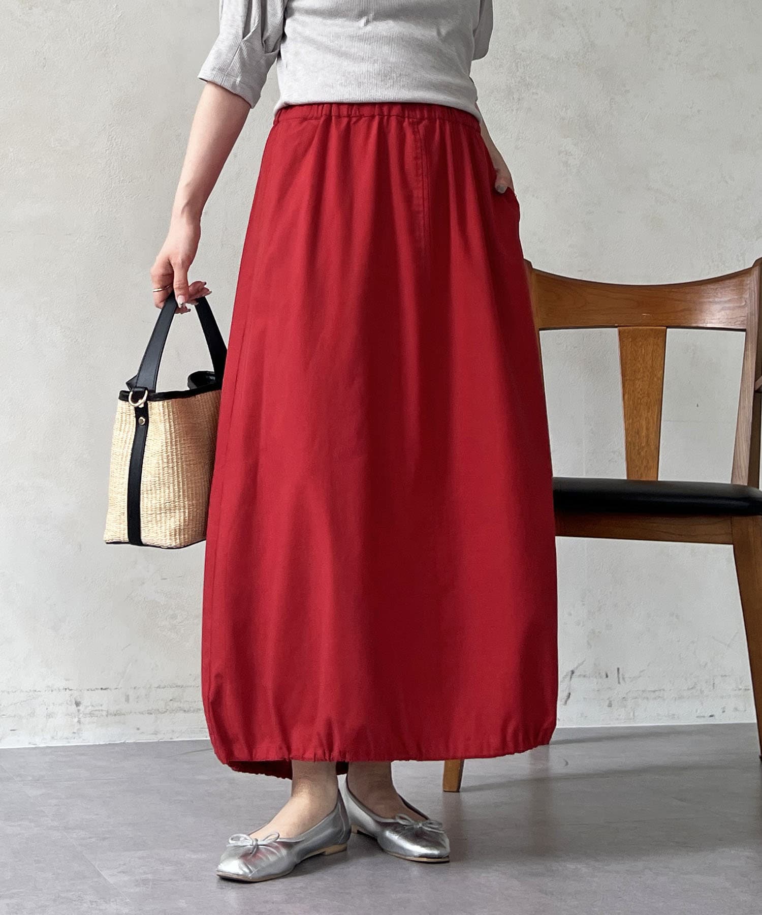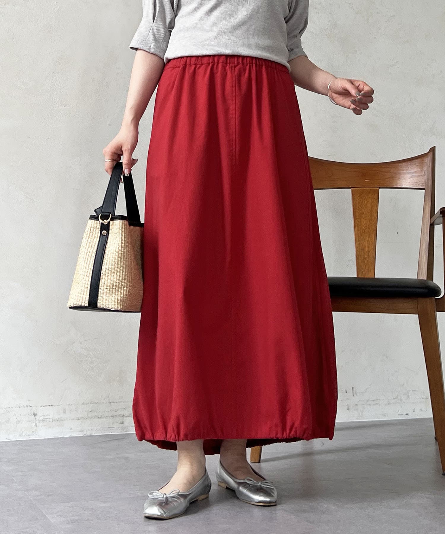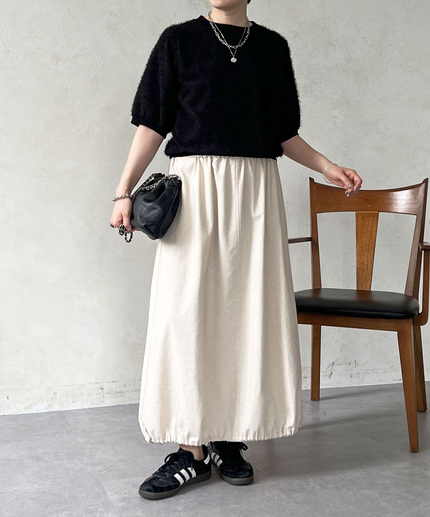 ・裾のドロストでバルーンスカートにも、落ち感のあるスカートにもアレンジできる