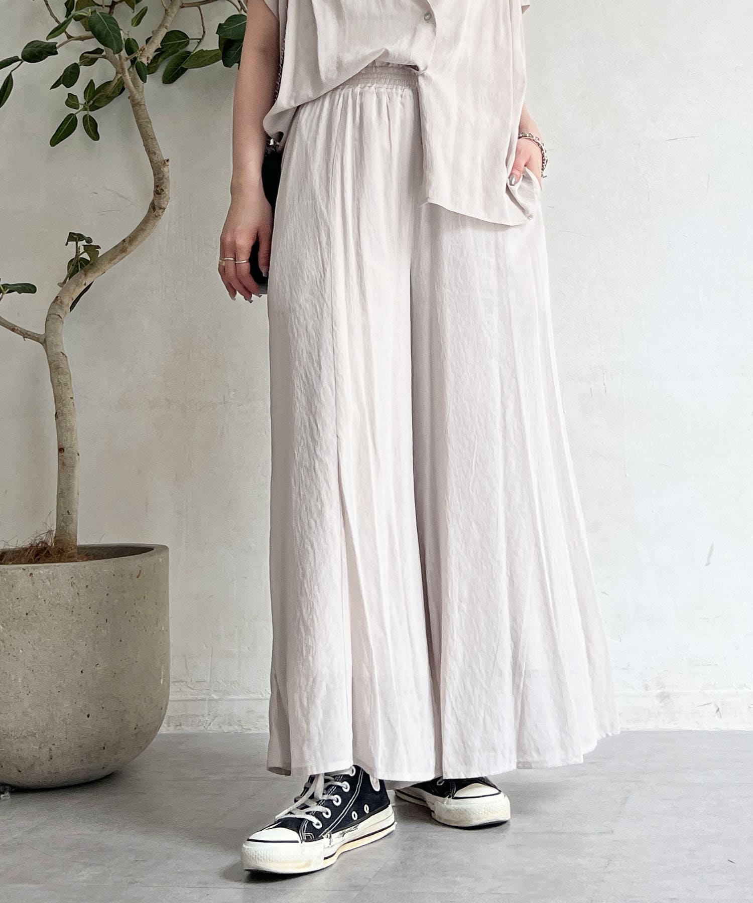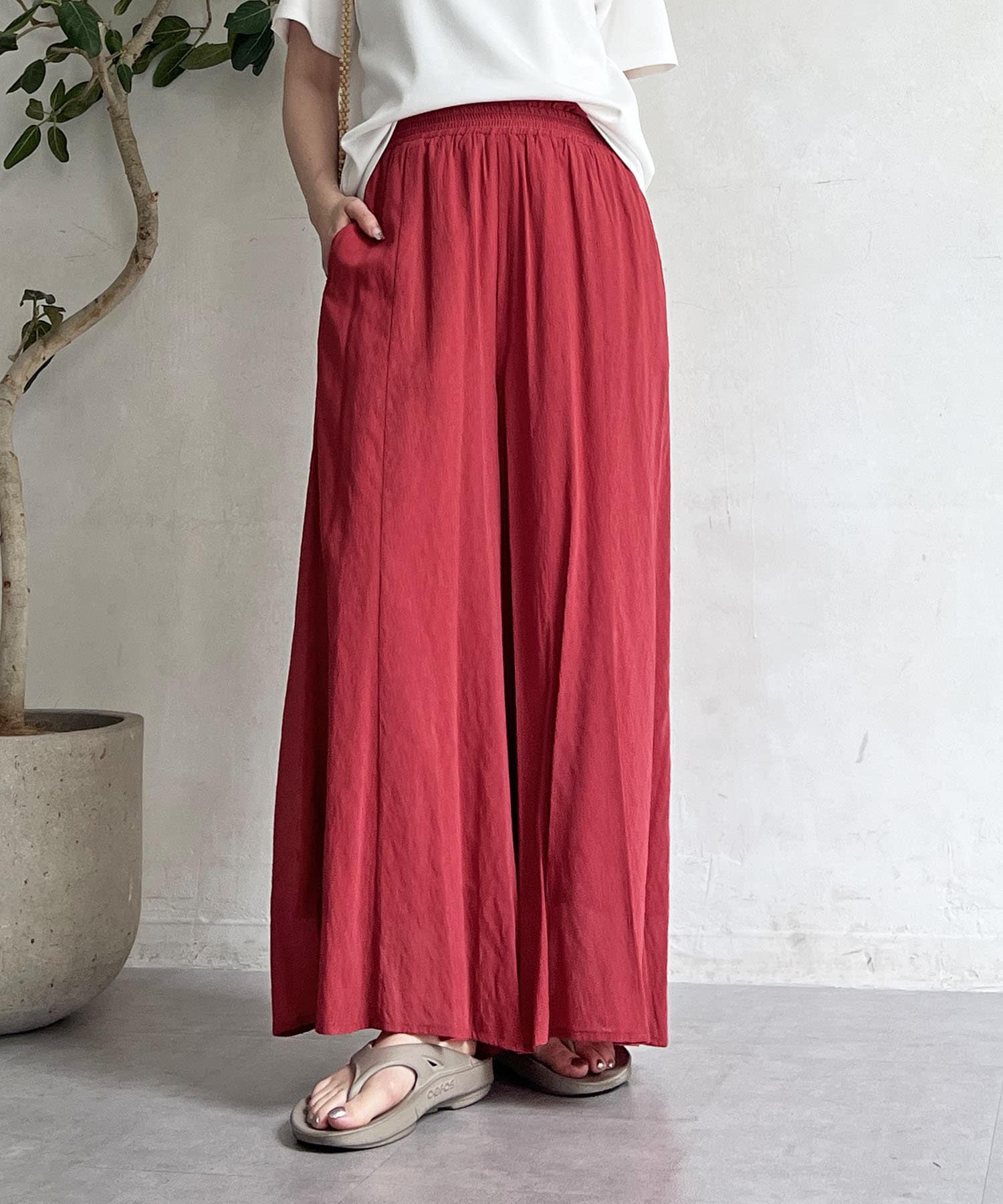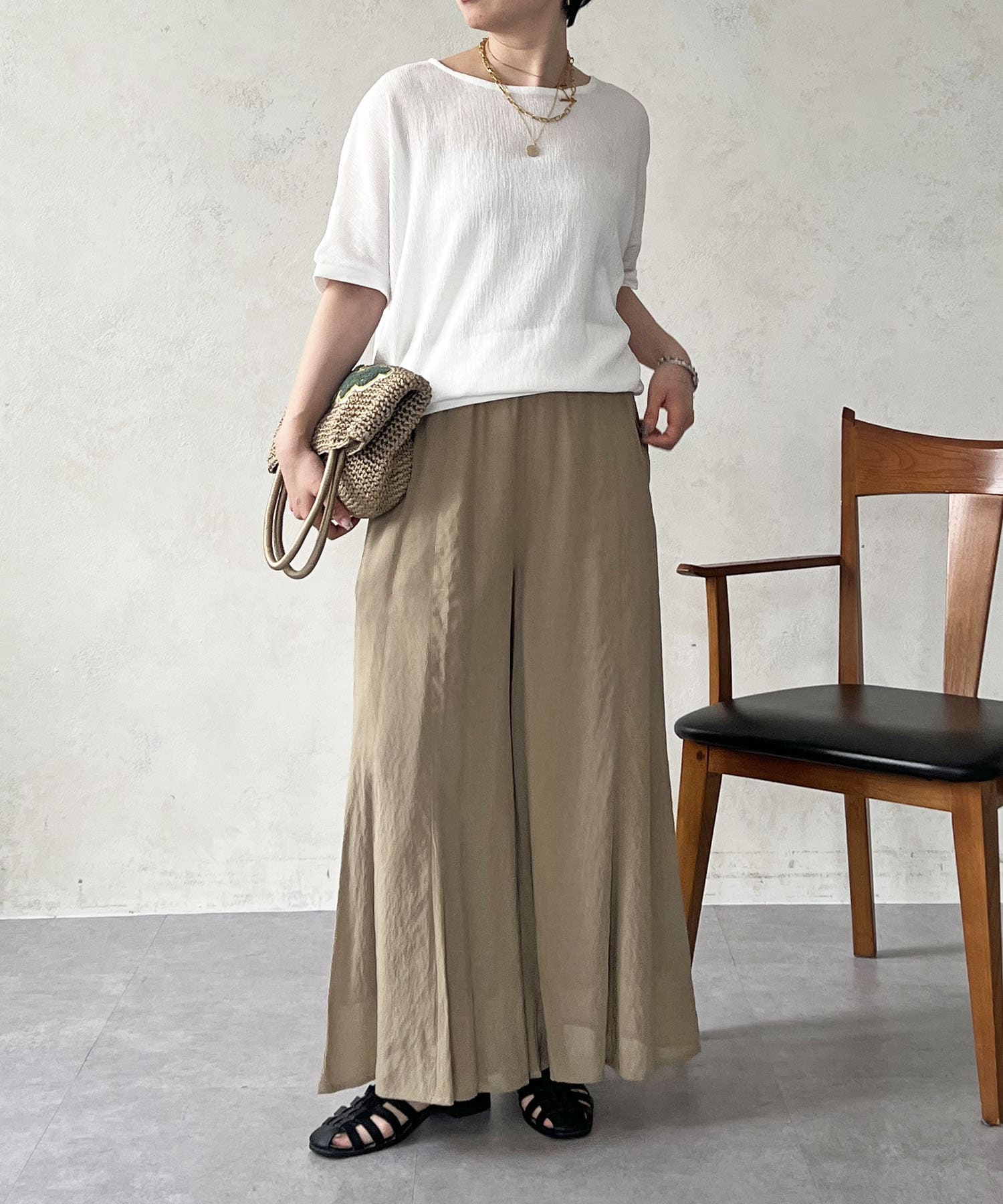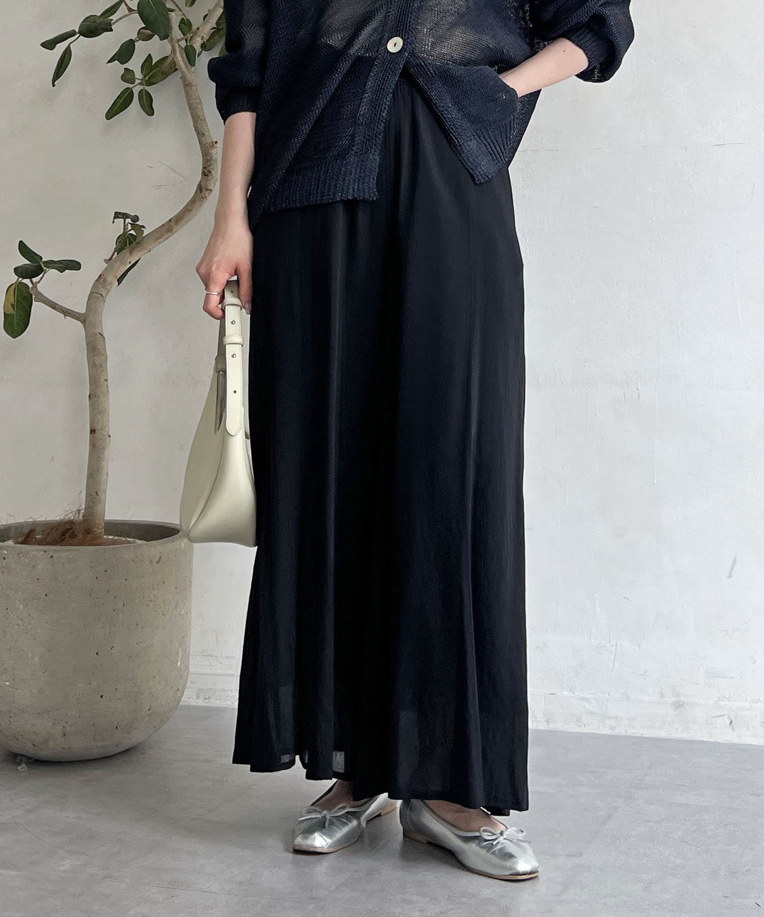 歩くたびに揺れるフレアが美しい、スカートライクなフレアワイドパンツ