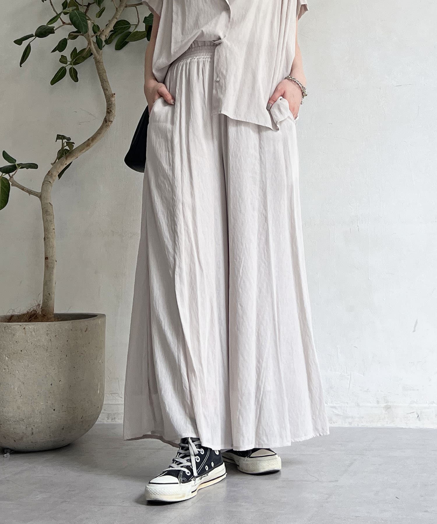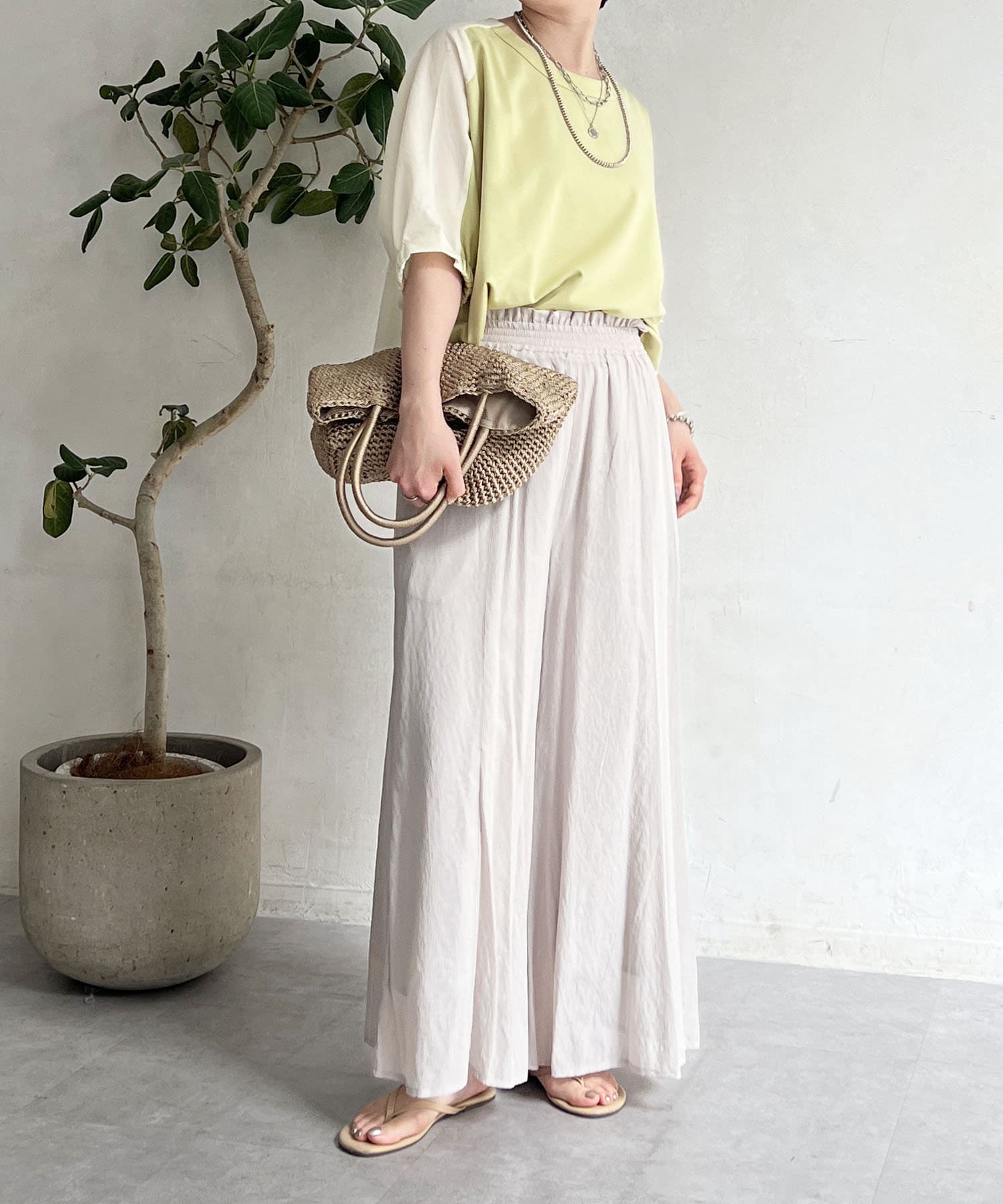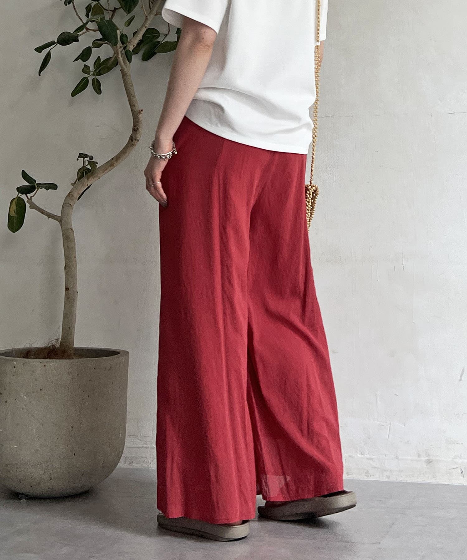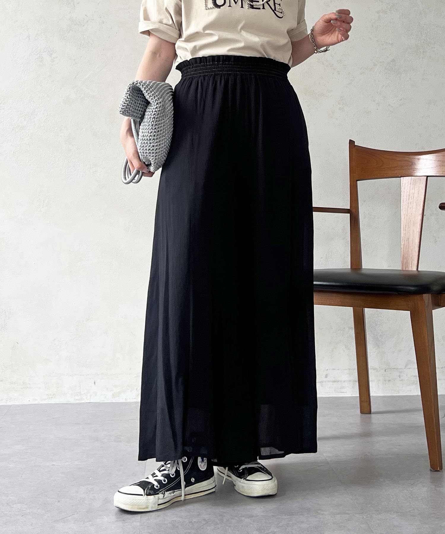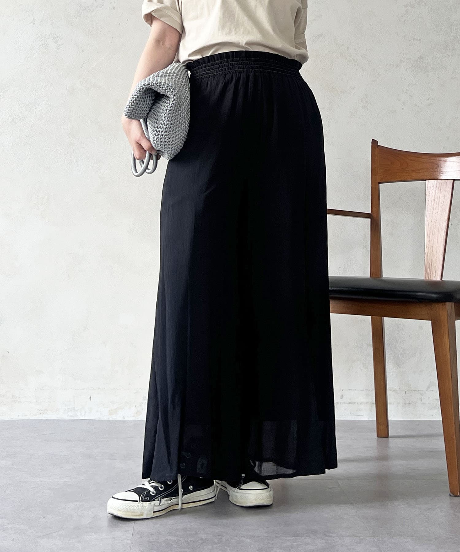 歩くたびに揺れるフレアが美しい、スカートライクなフレアワイドパンツ
