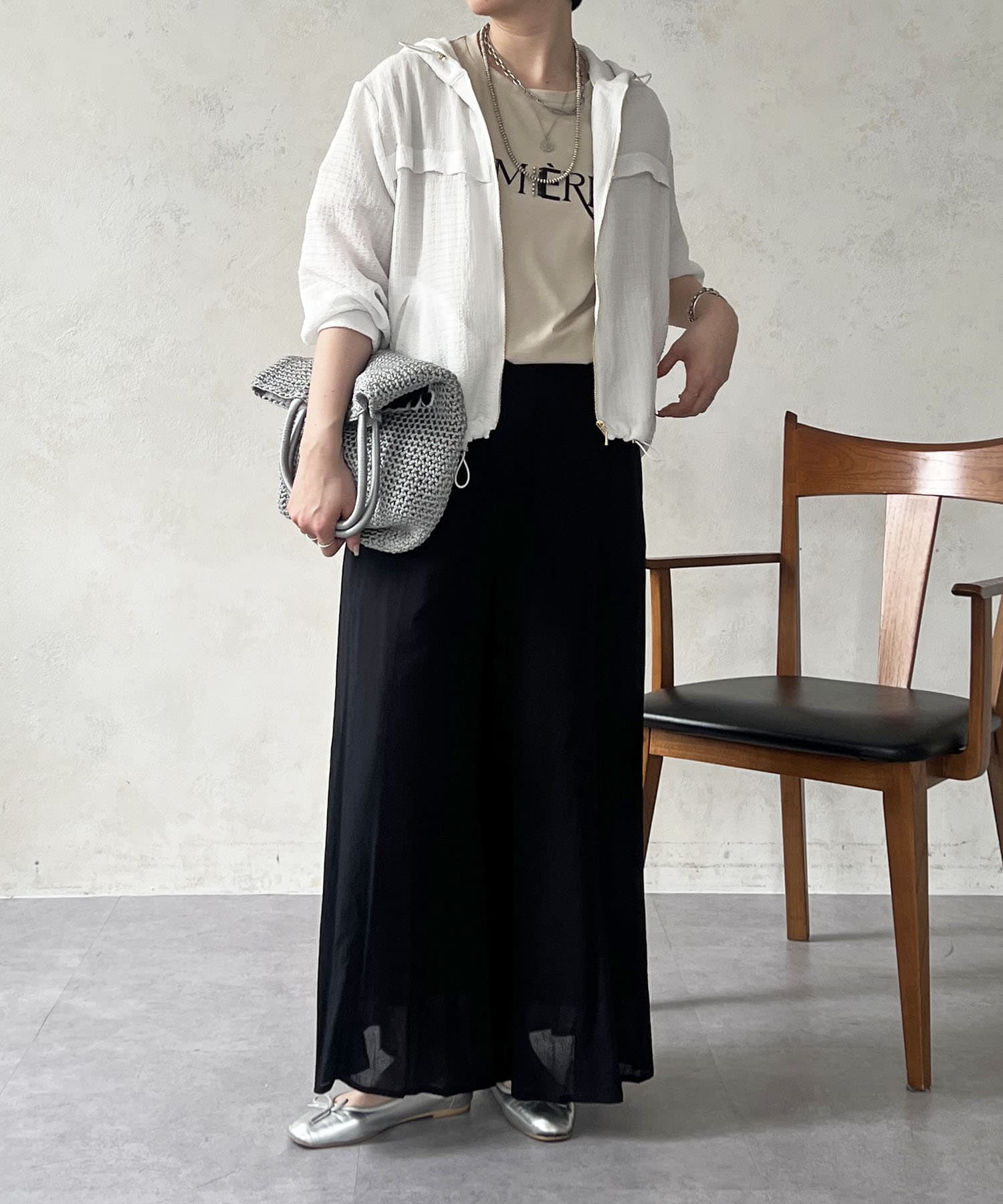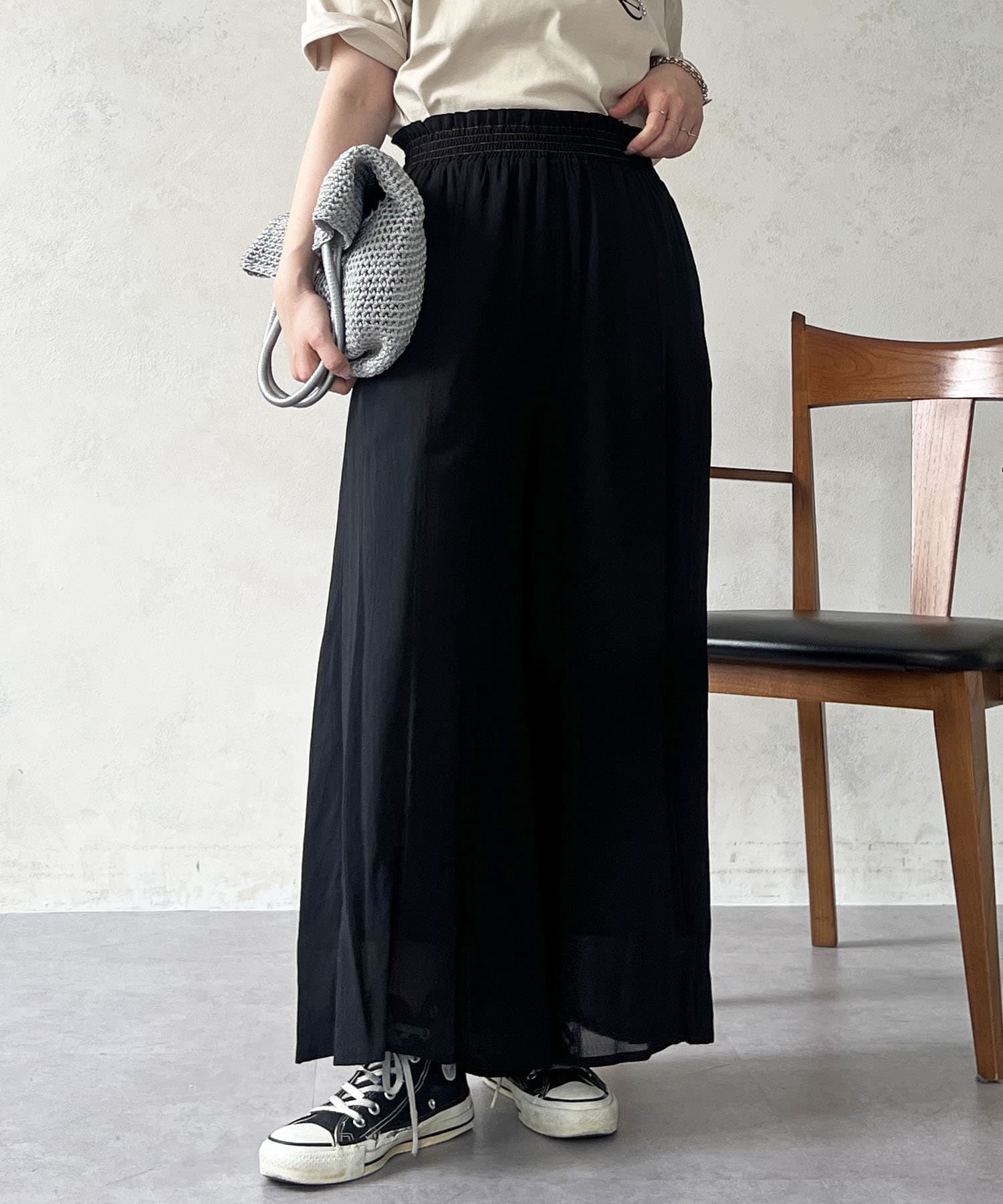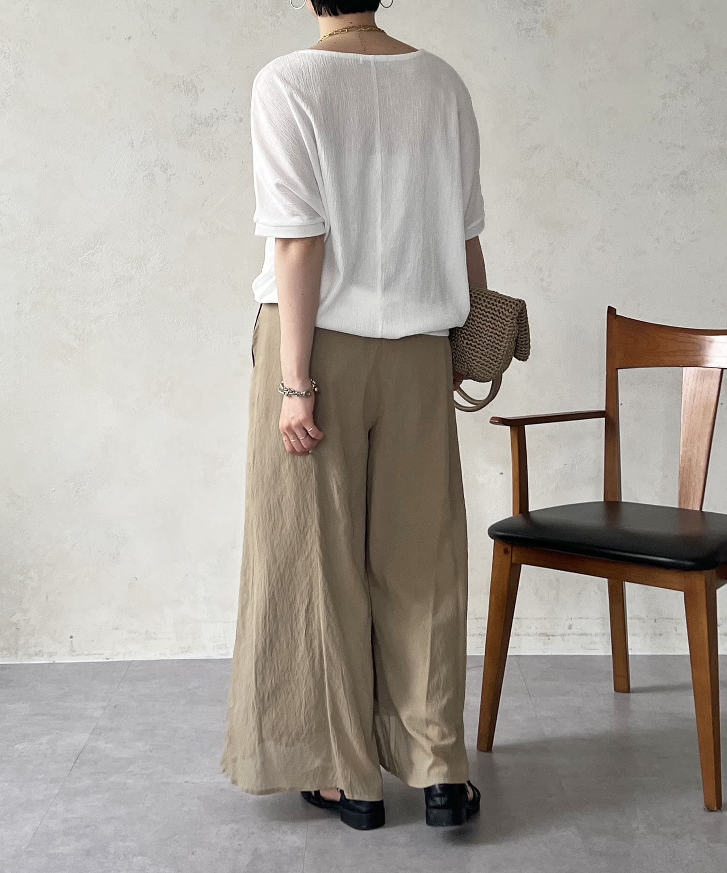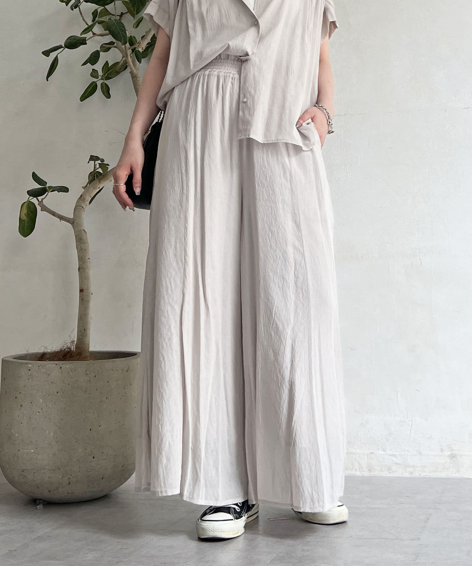 歩くたびに揺れるフレアが美しい、スカートライクなフレアワイドパンツ