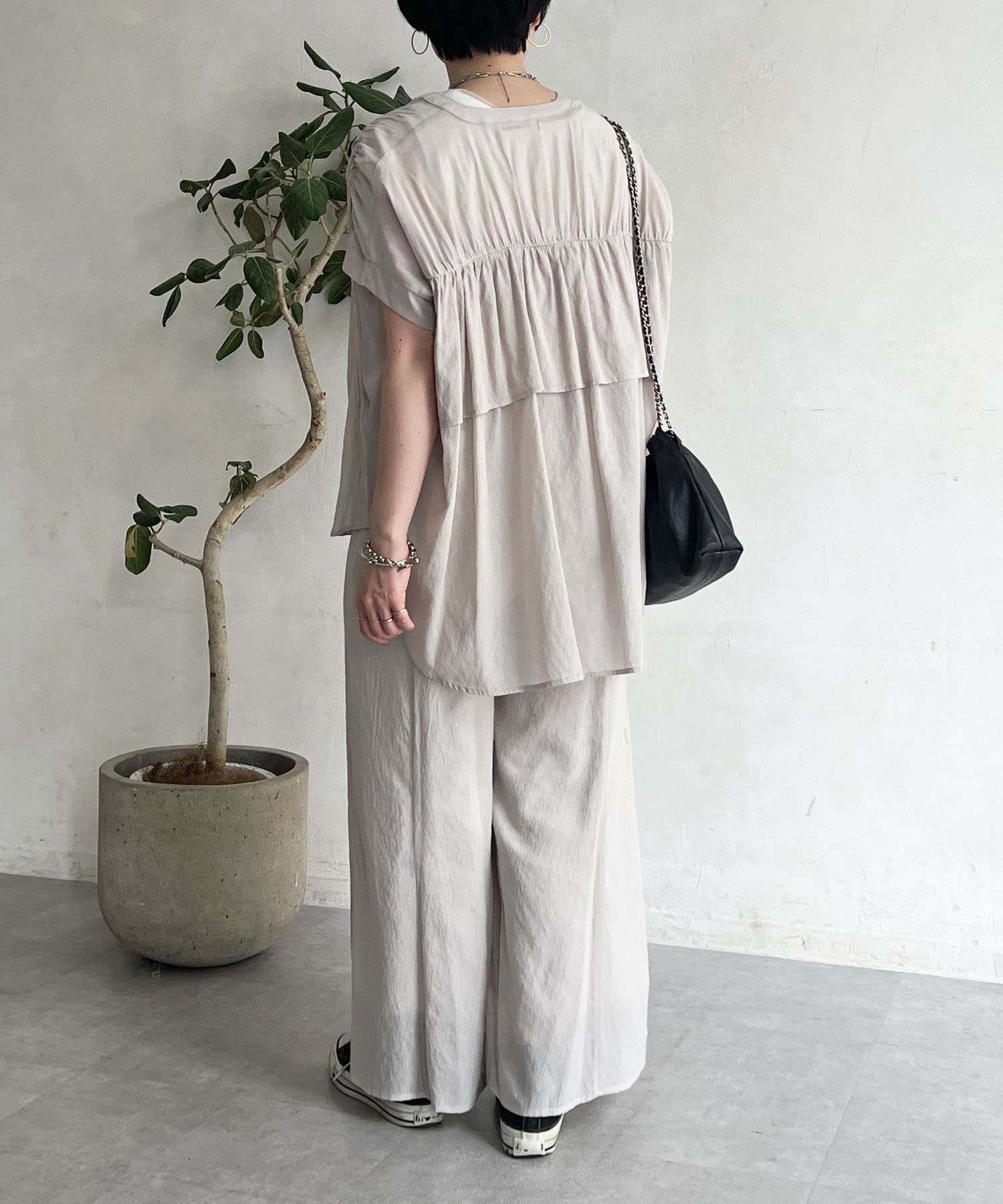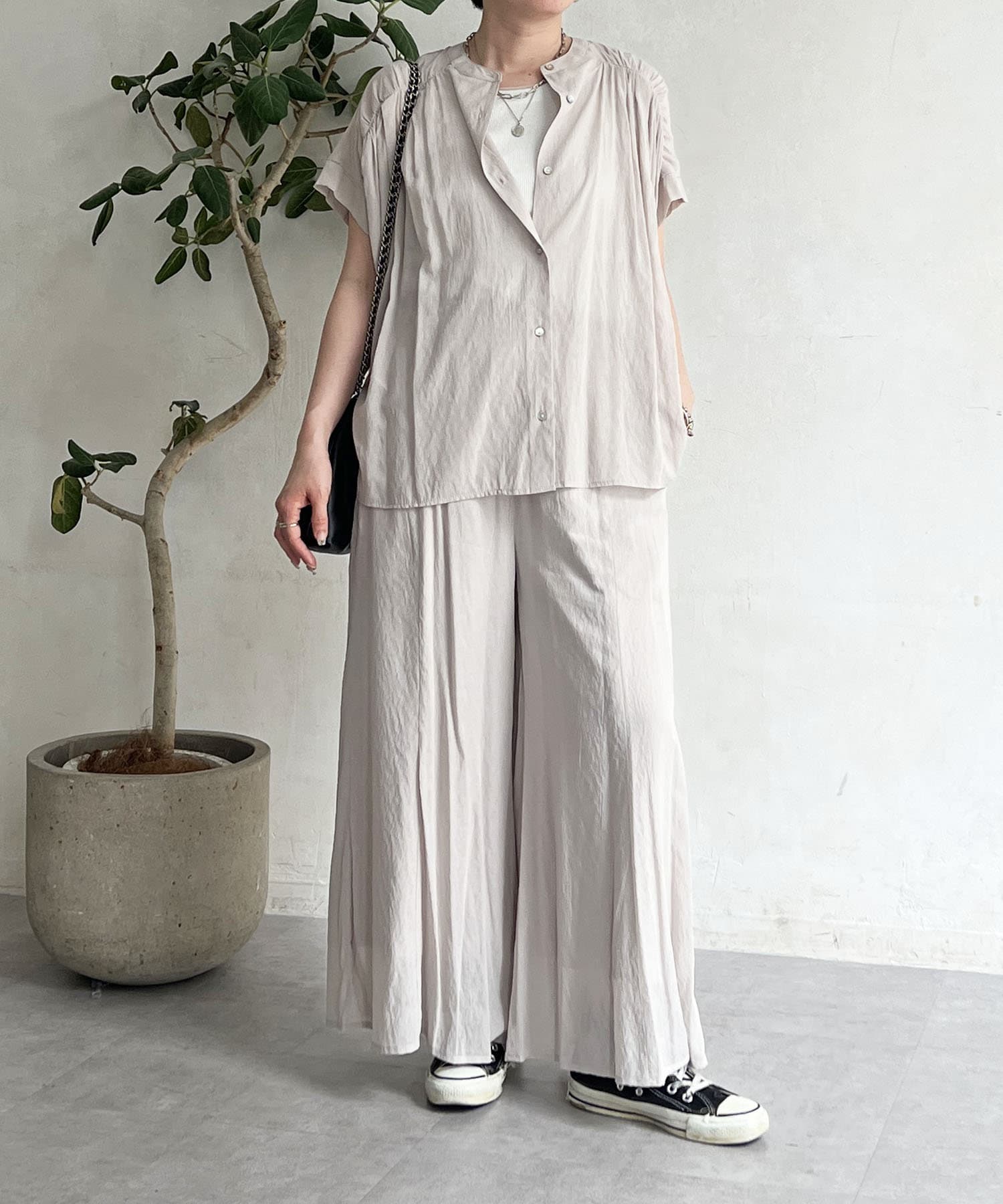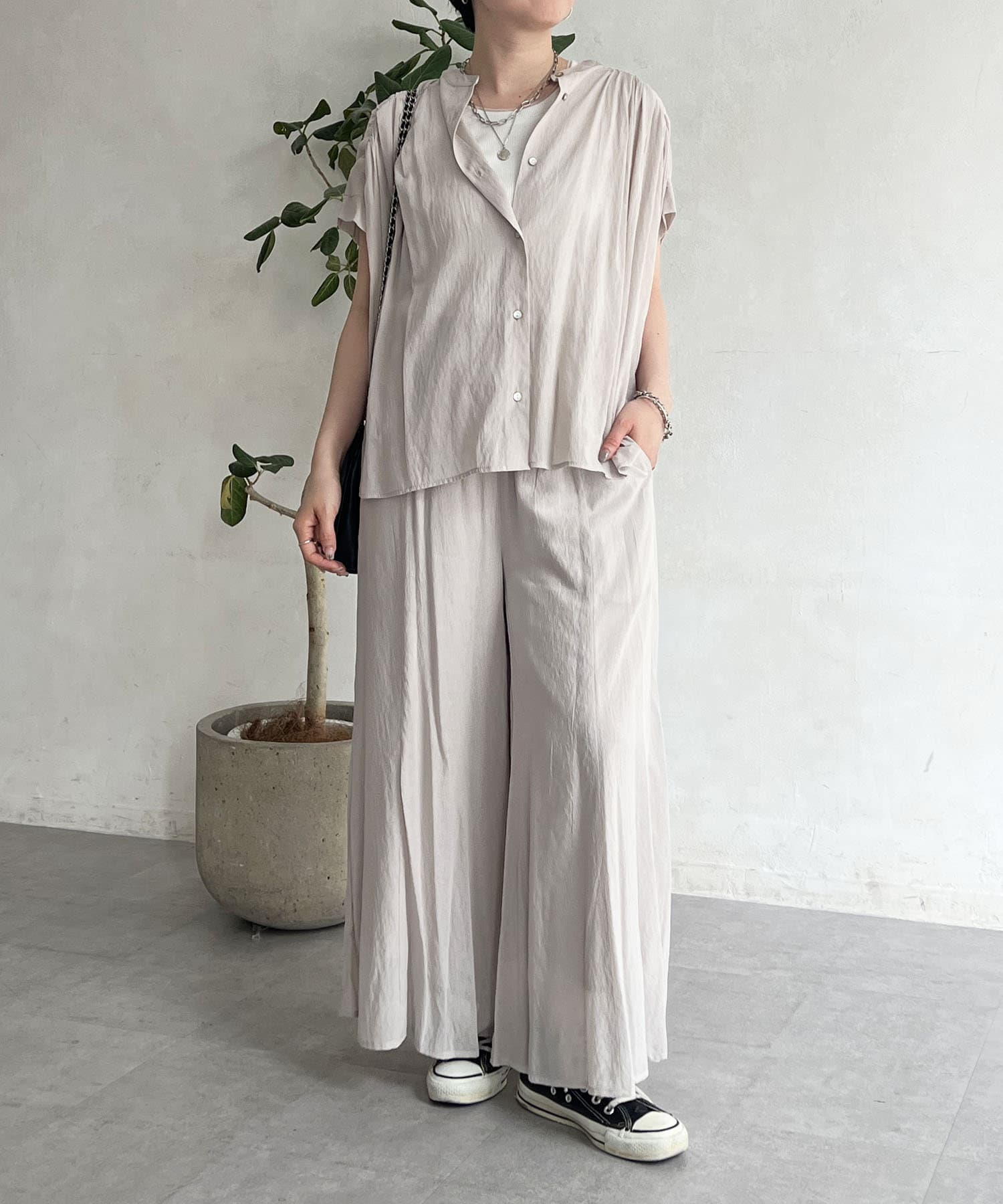 ▼同素材のシャツと合わせて、セットアップとしても着ていただけます