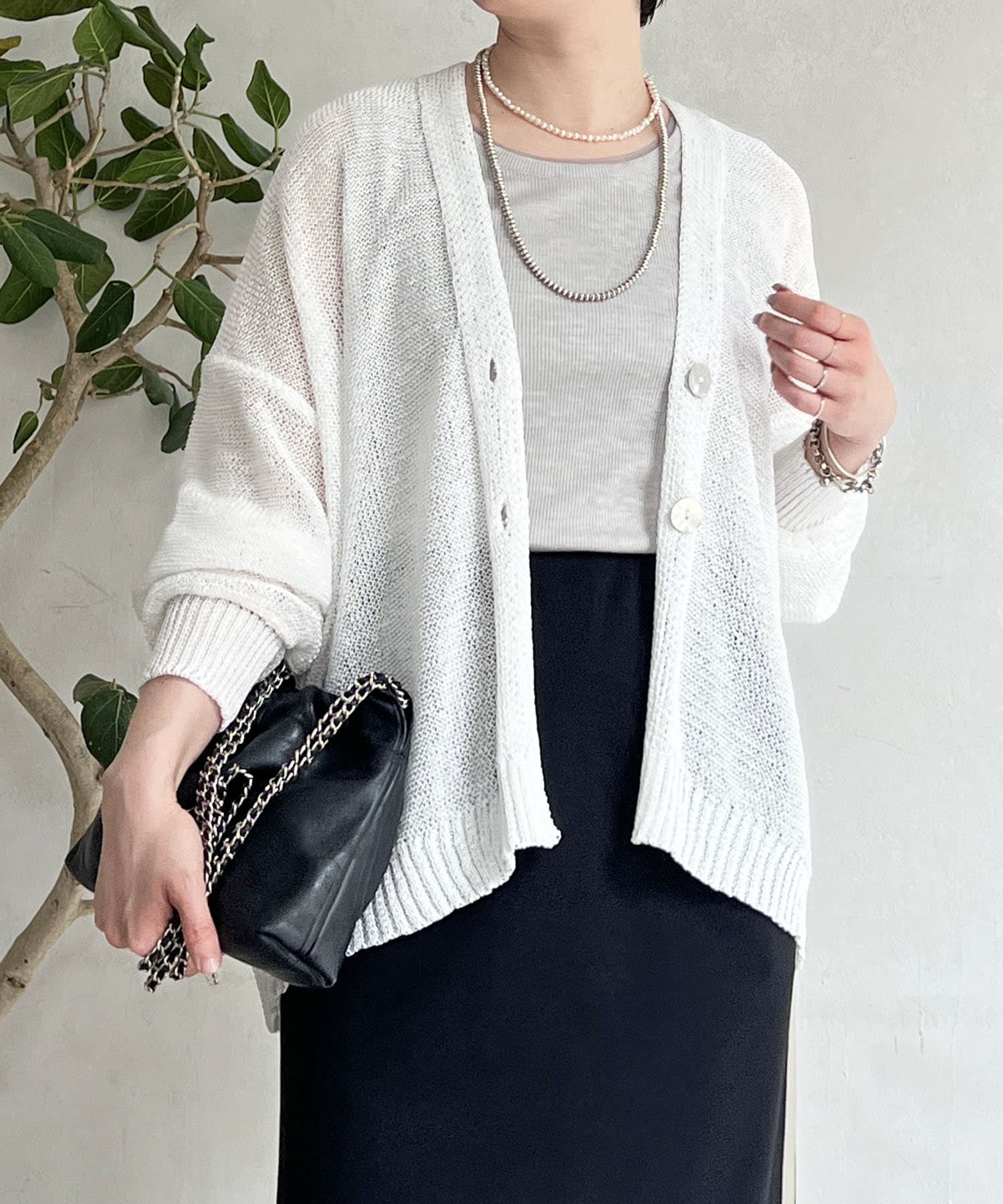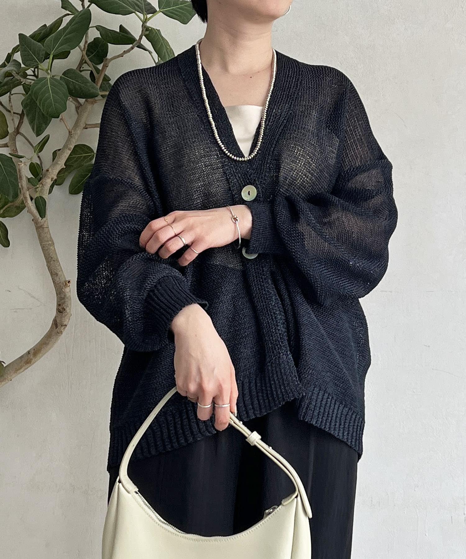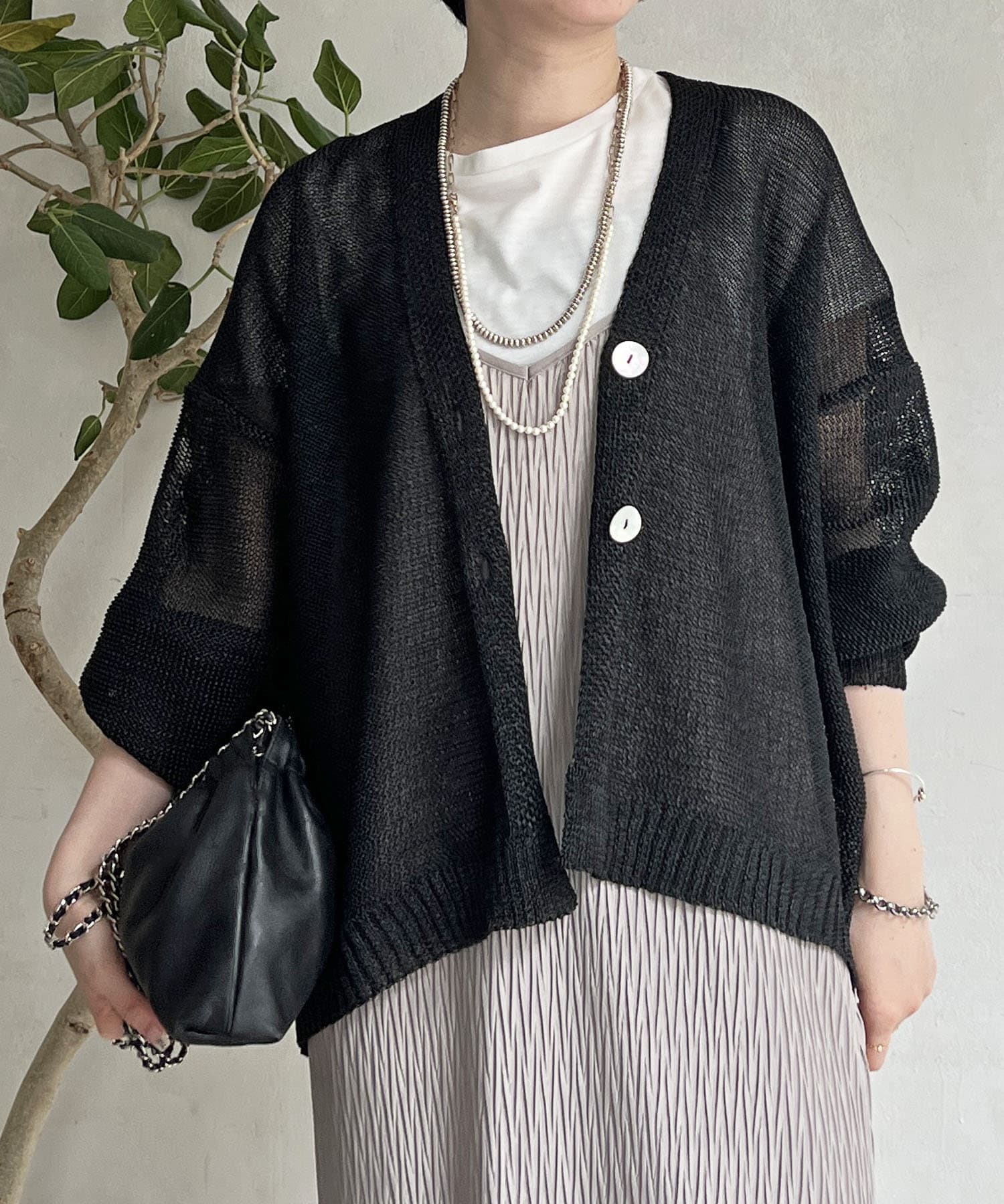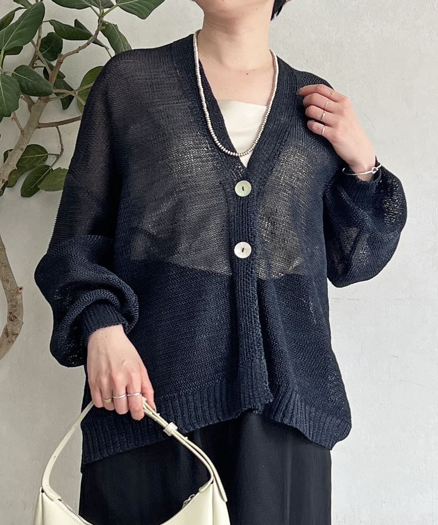 ナチュラルな素材感が印象的な、和紙素材カーディガン