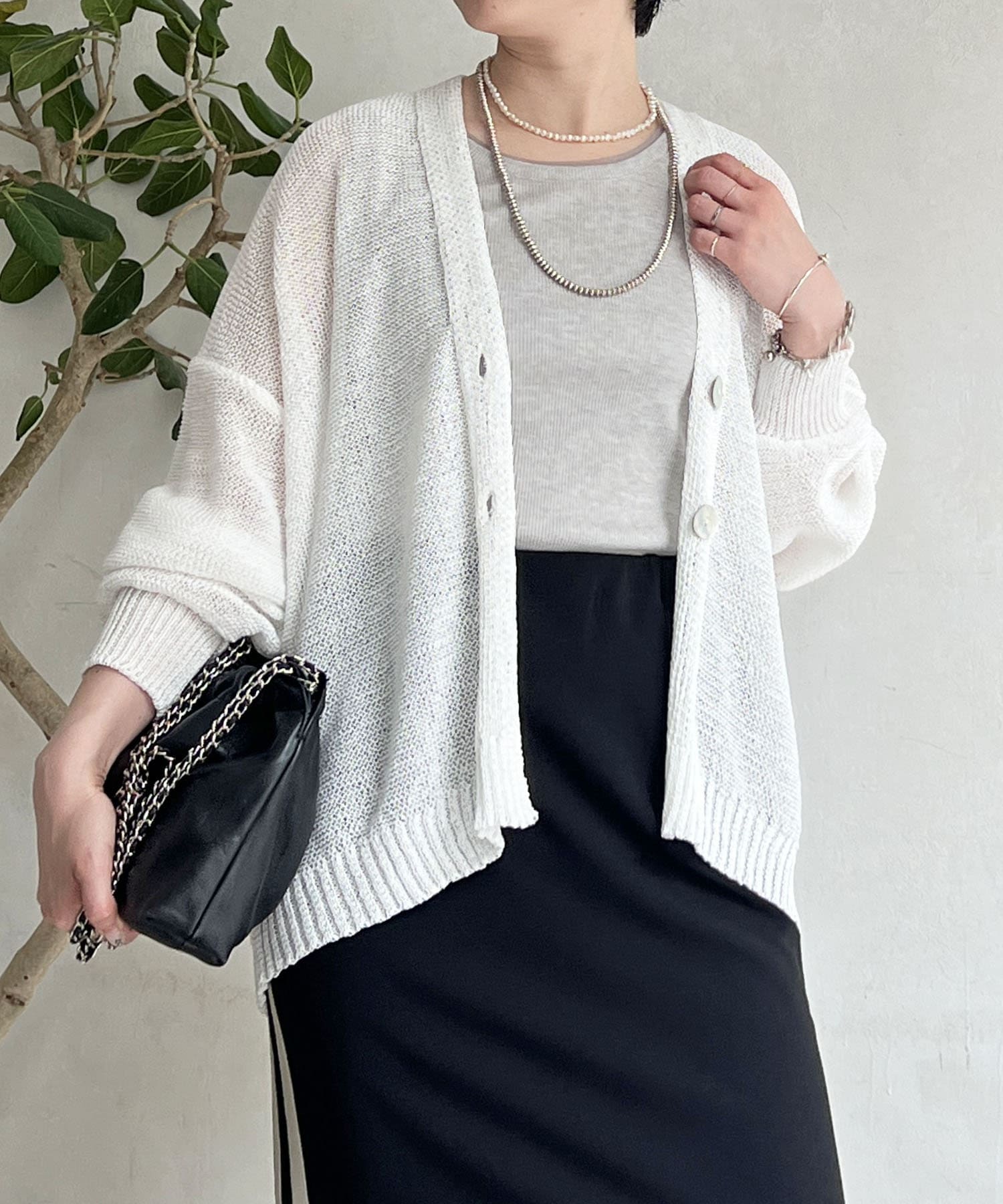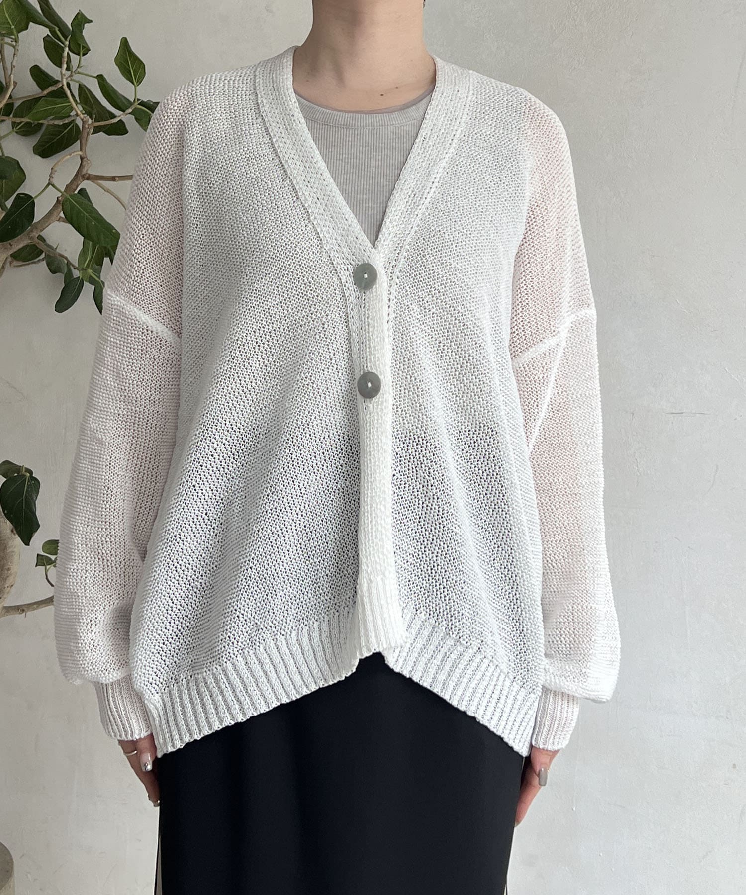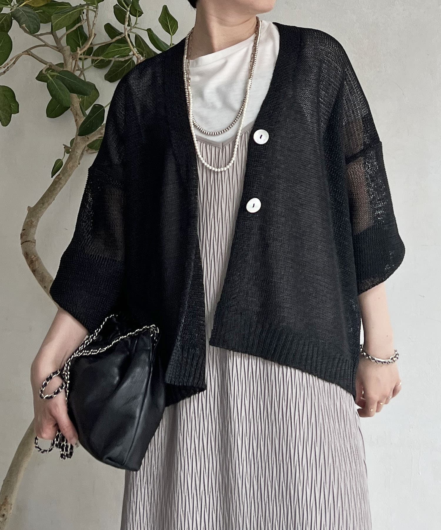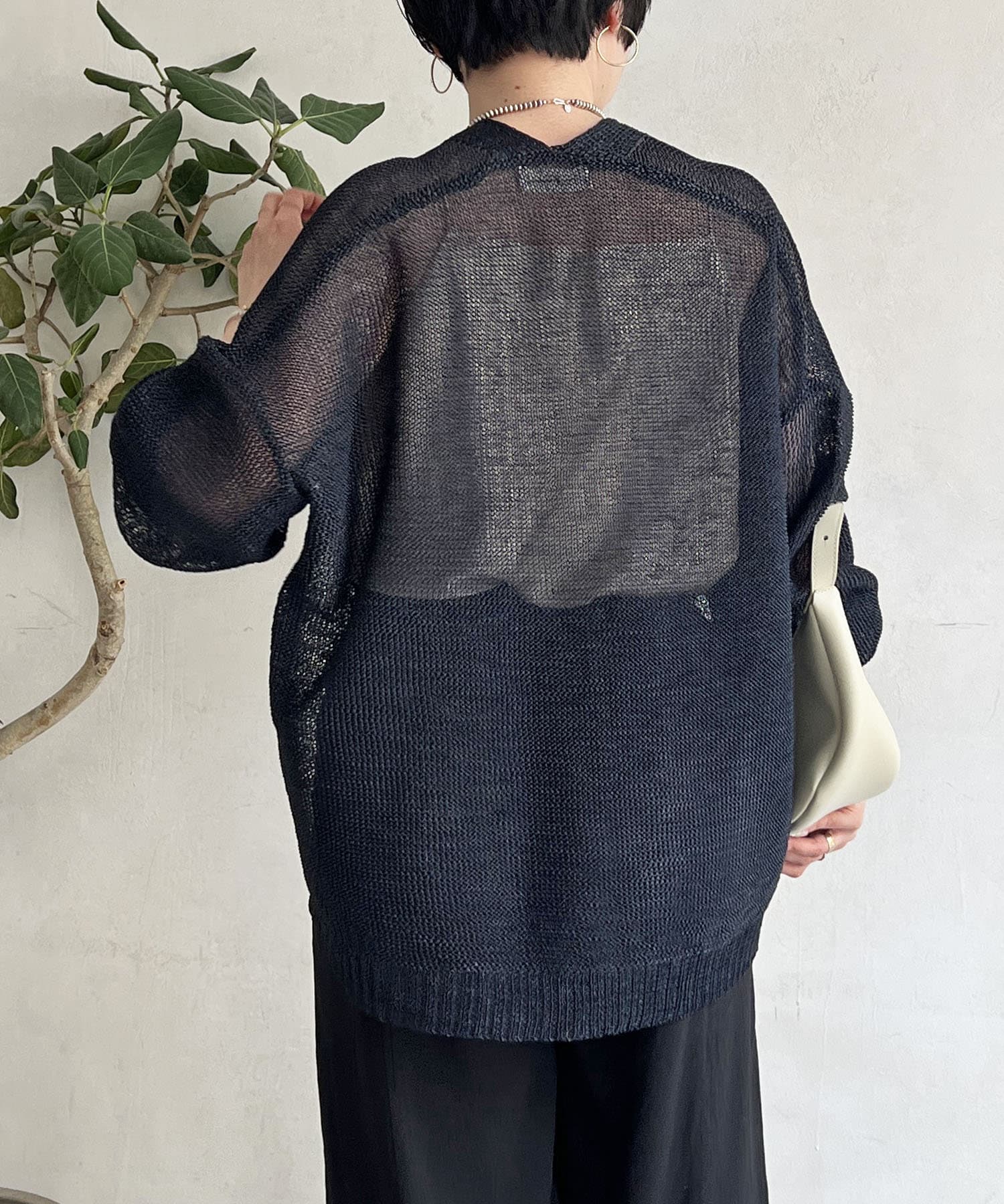 ナチュラルな素材感が印象的な、和紙素材カーディガン