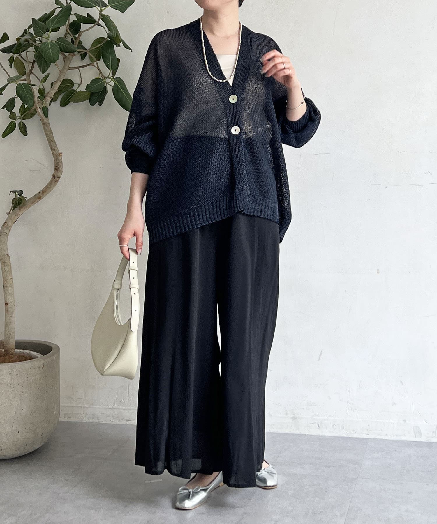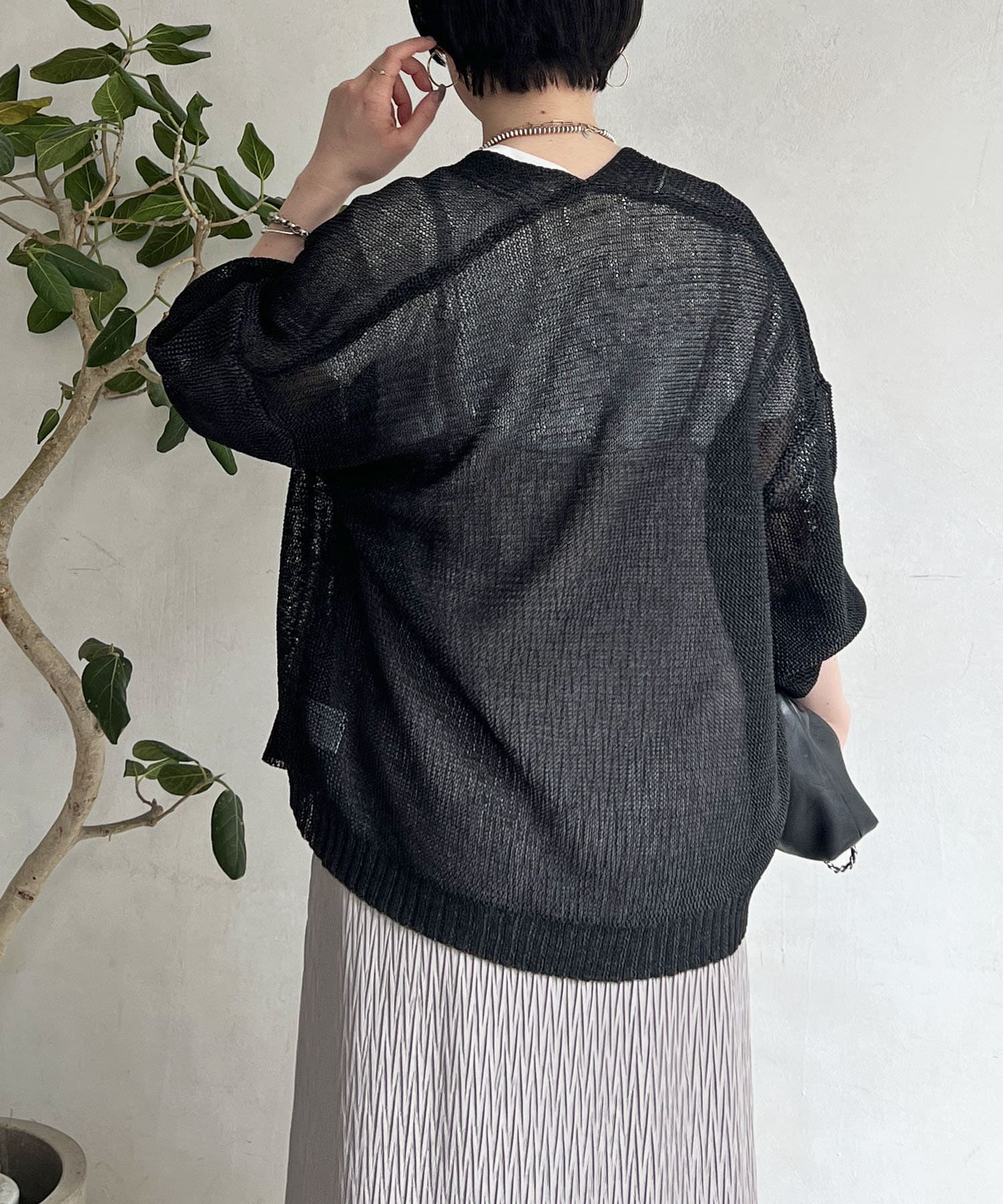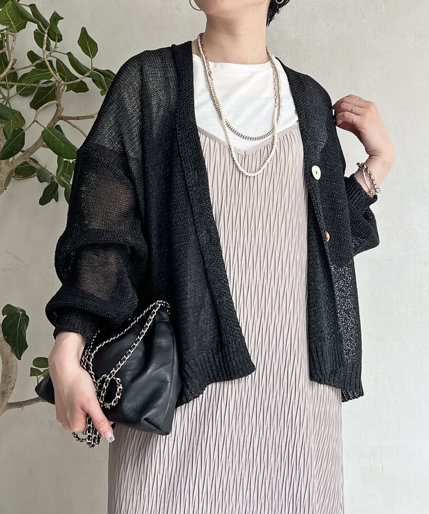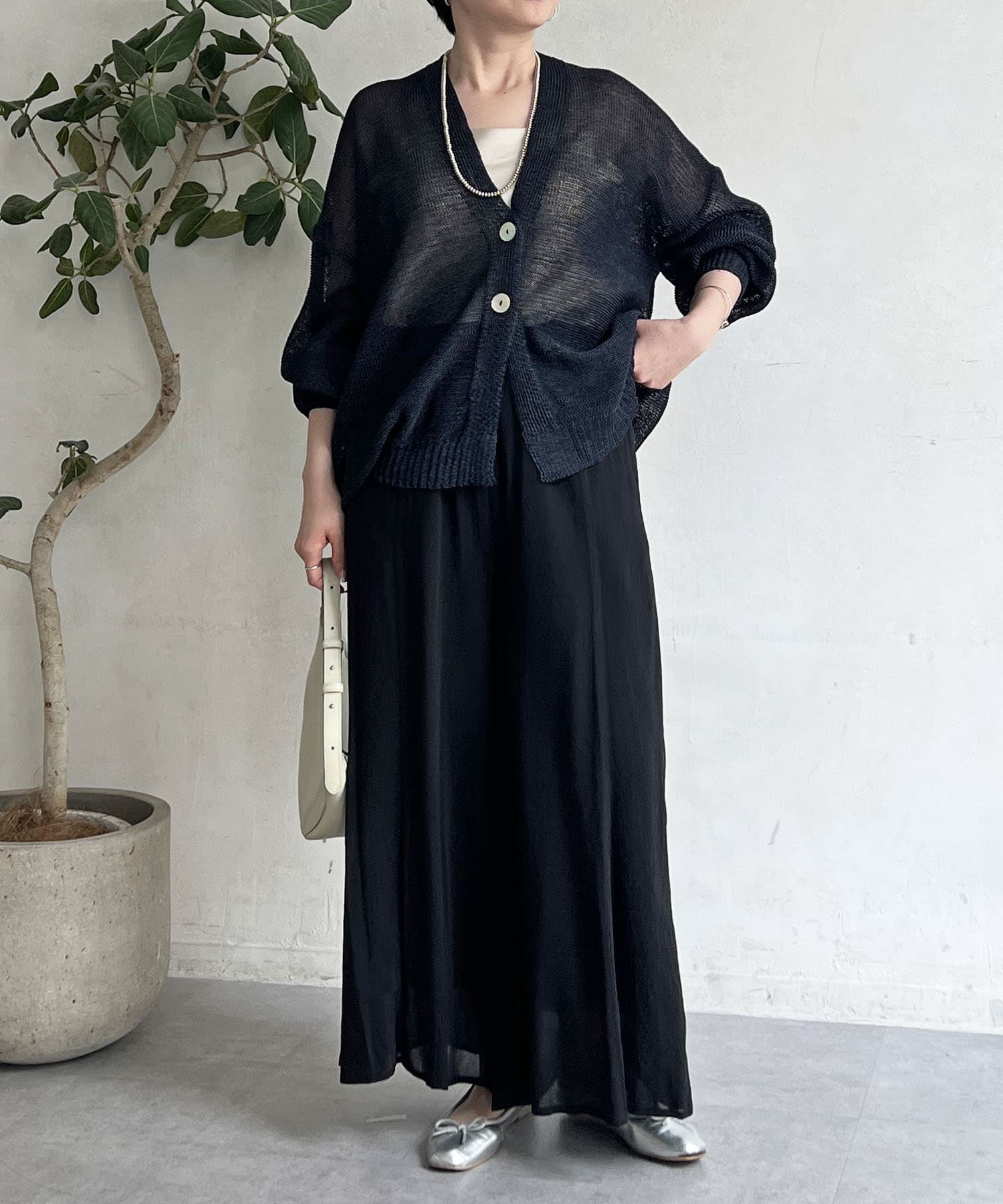 ナチュラルな素材感が印象的な、和紙素材カーディガン