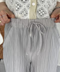 セルフカット可能でお好みの長さに変えられるラメプリーツパンツ