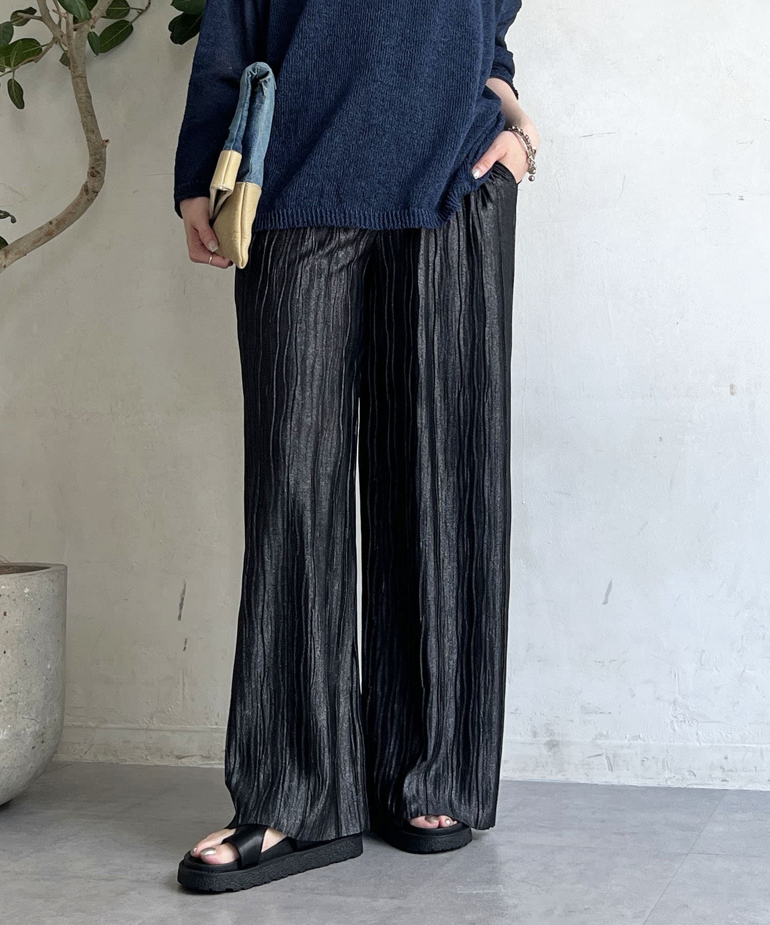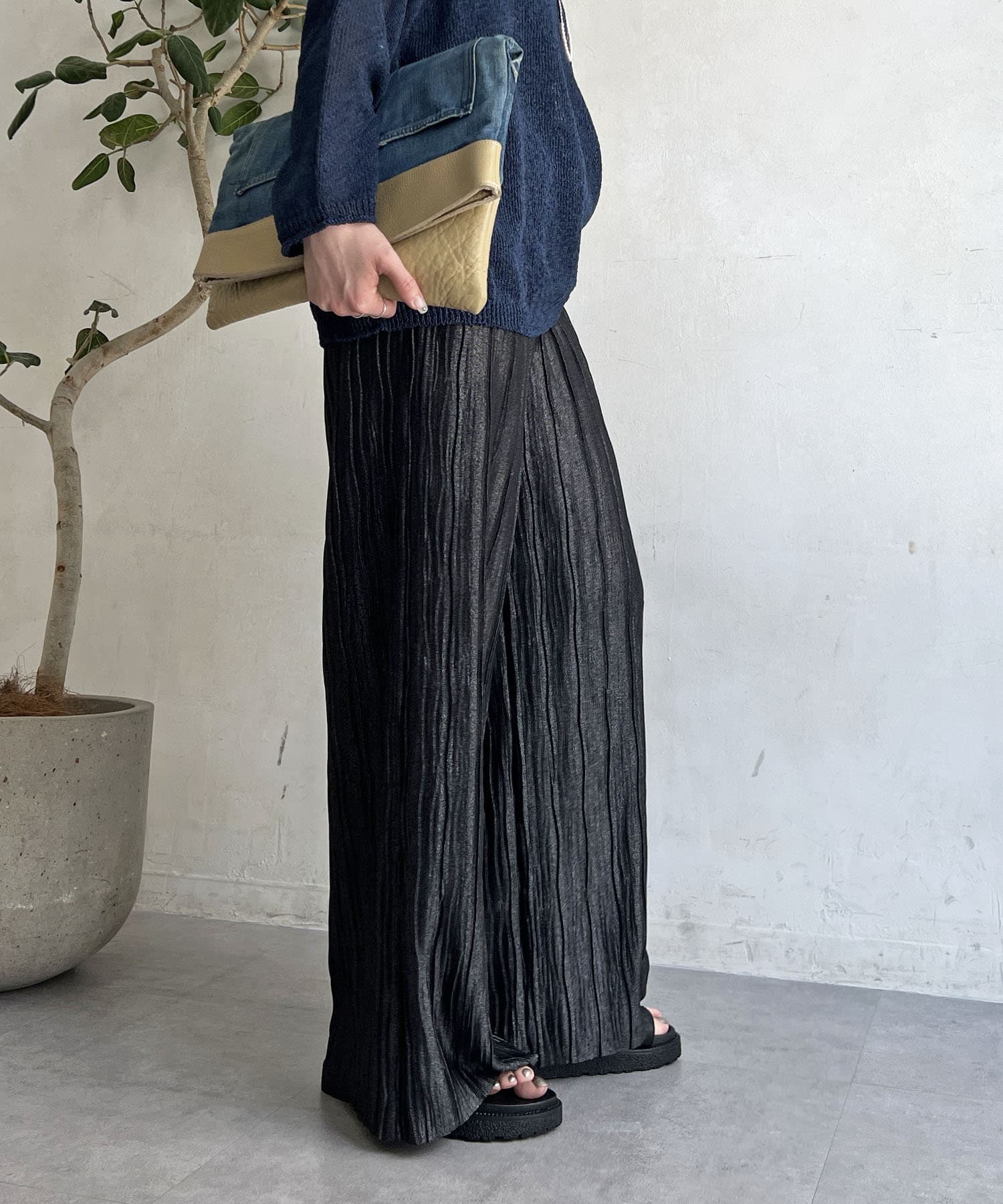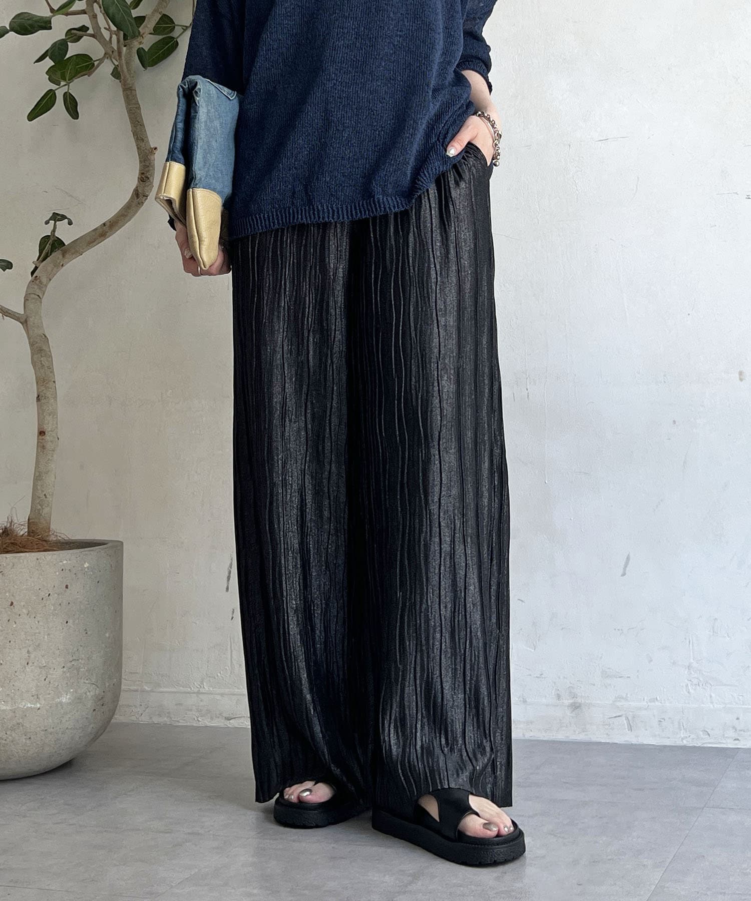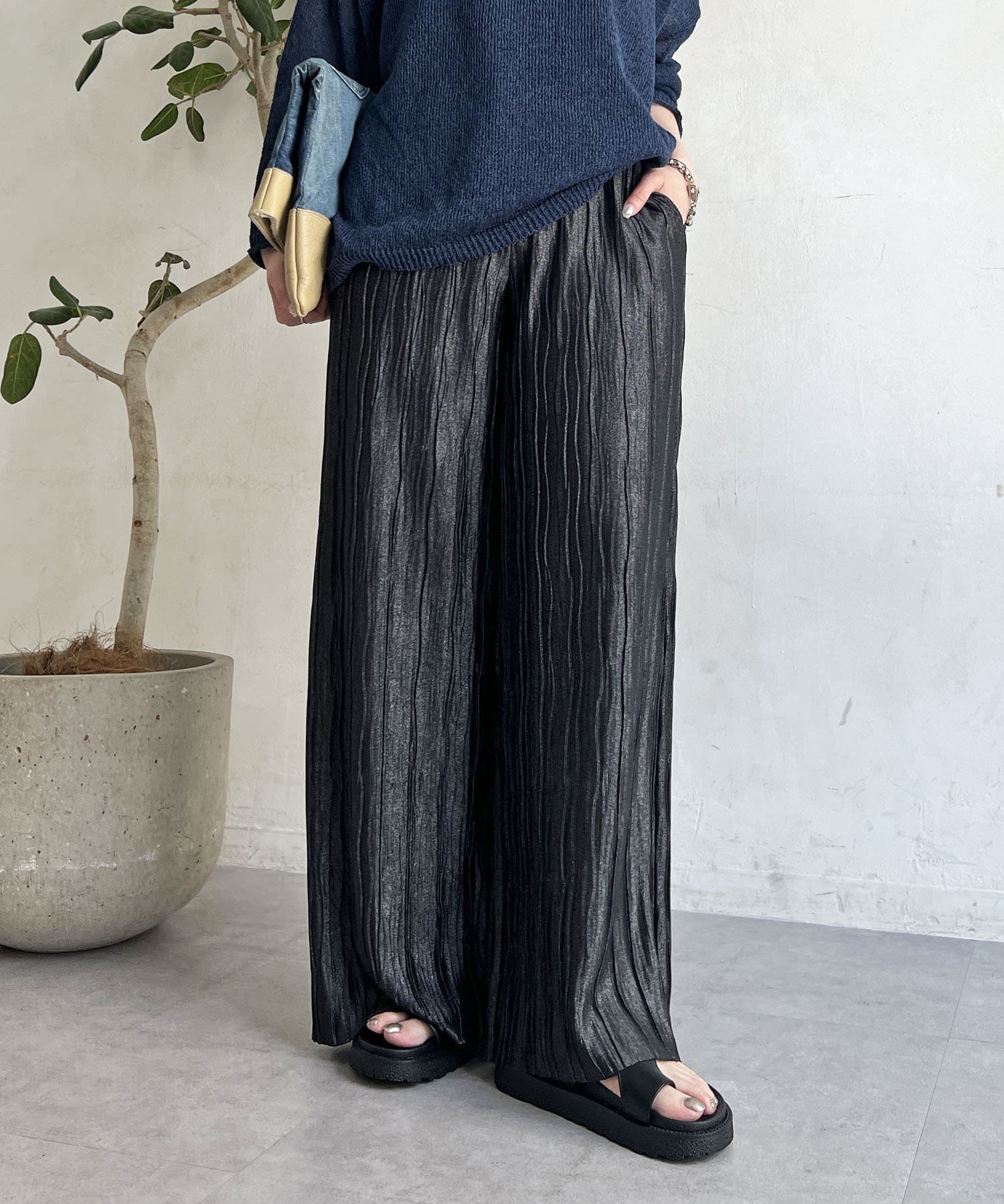 ・上品なラメとプリーツデザインでフェミニン&リラックスなパンツ