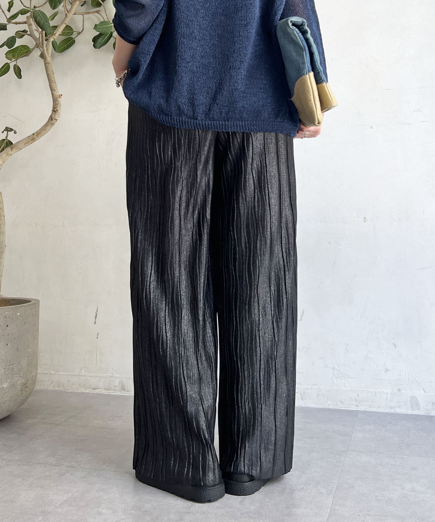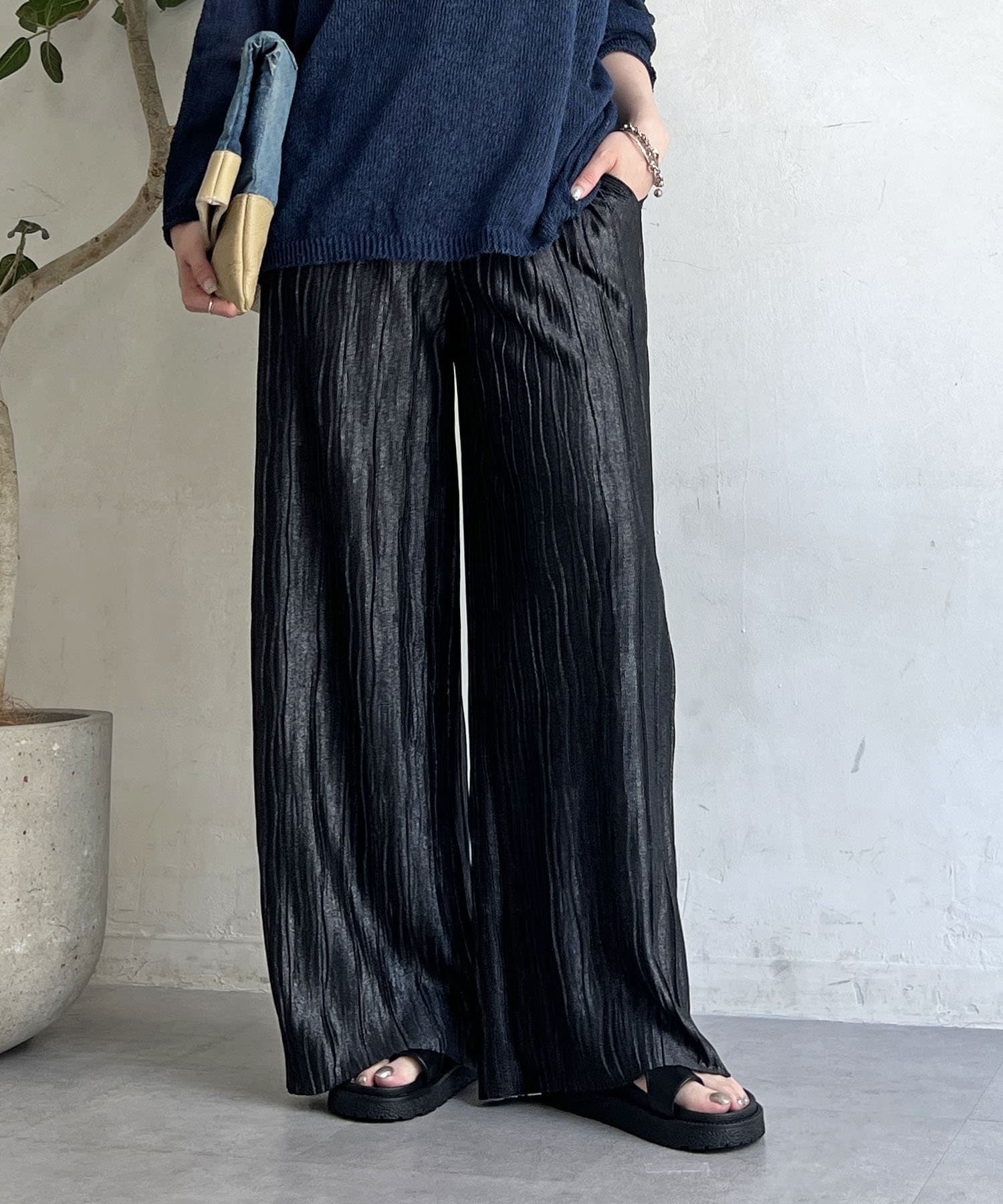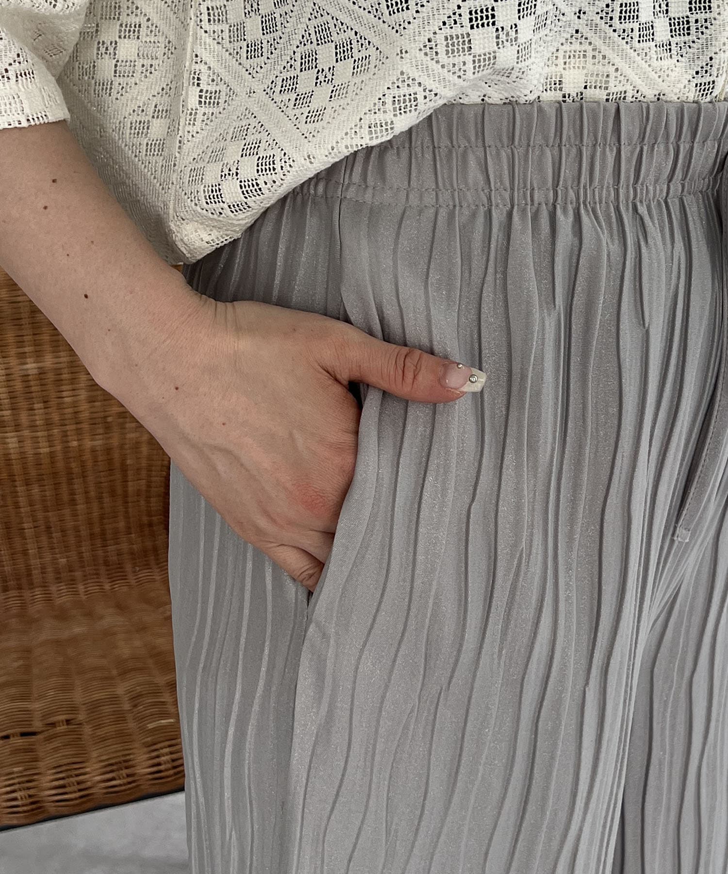 ・上品なラメとプリーツデザインでフェミニン&リラックスなパンツ