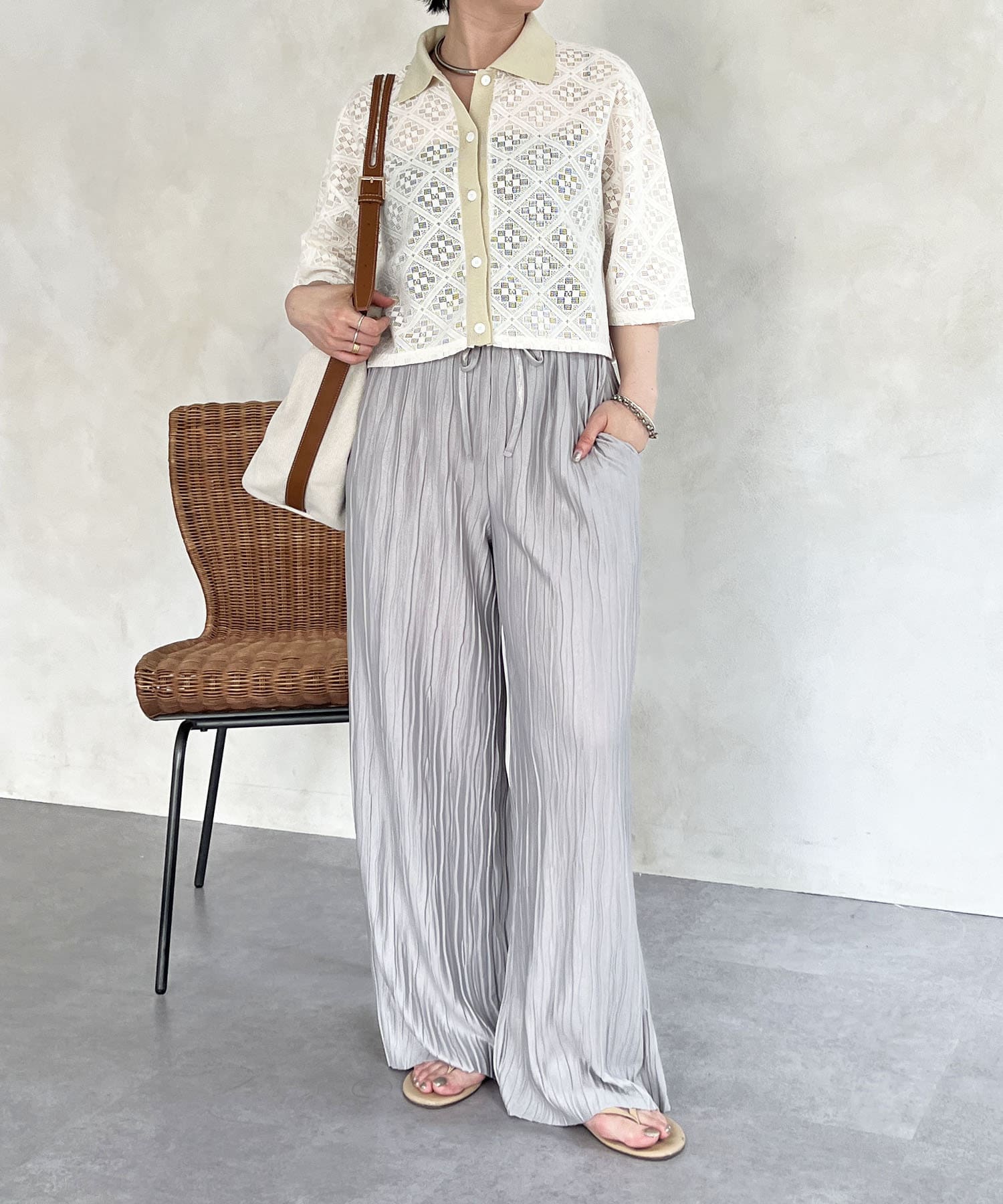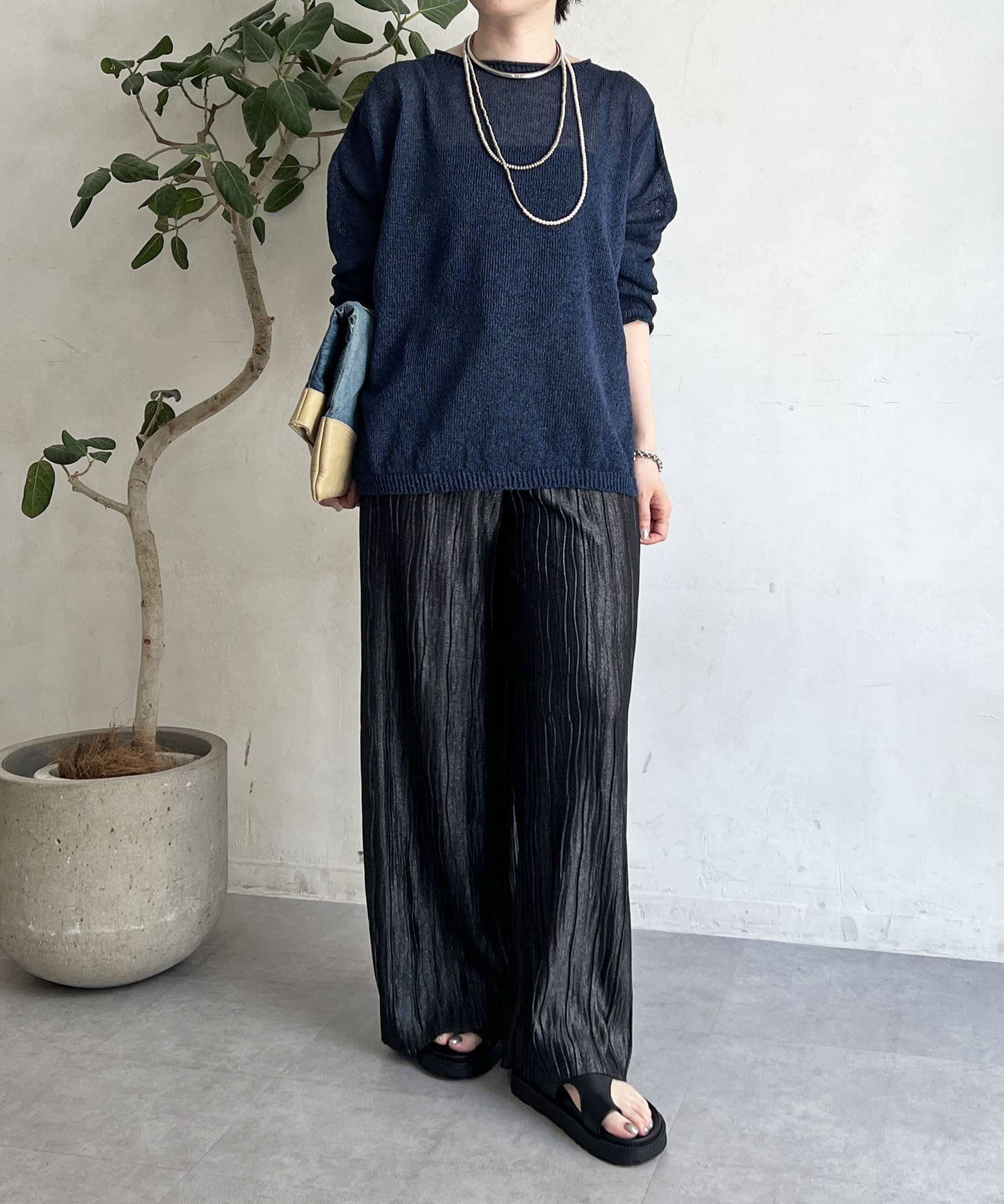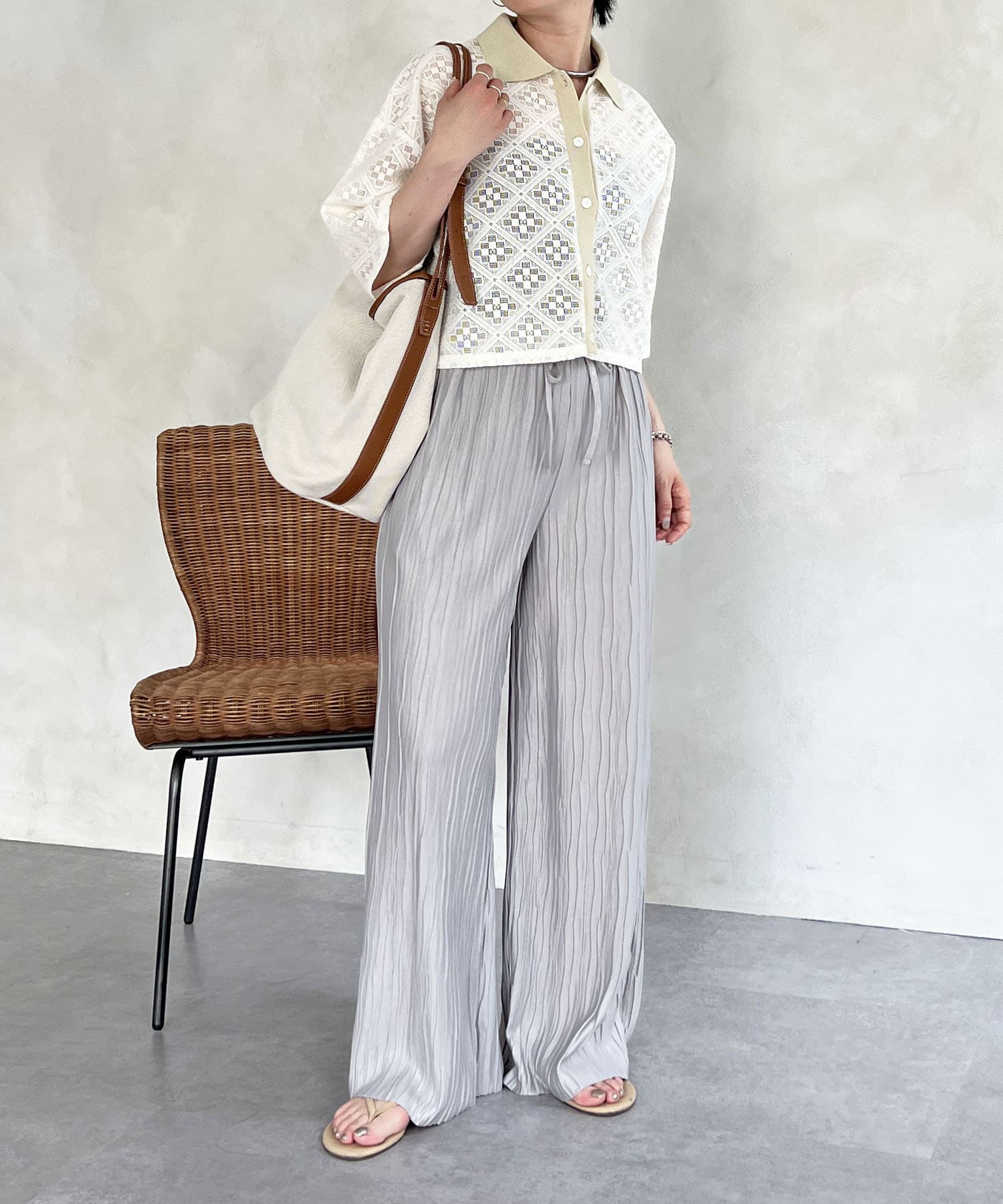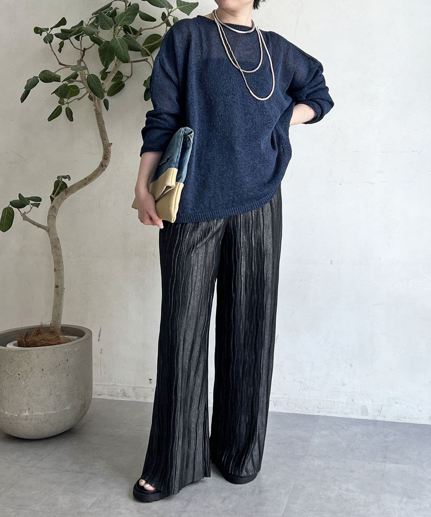 ・上品なラメとプリーツデザインでフェミニン&リラックスなパンツ