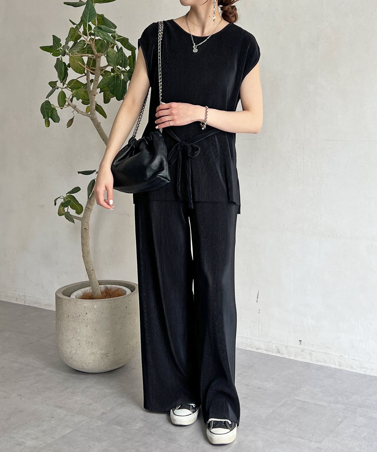 ・さらりとしたプリーツ加工が心地よいセットアップ