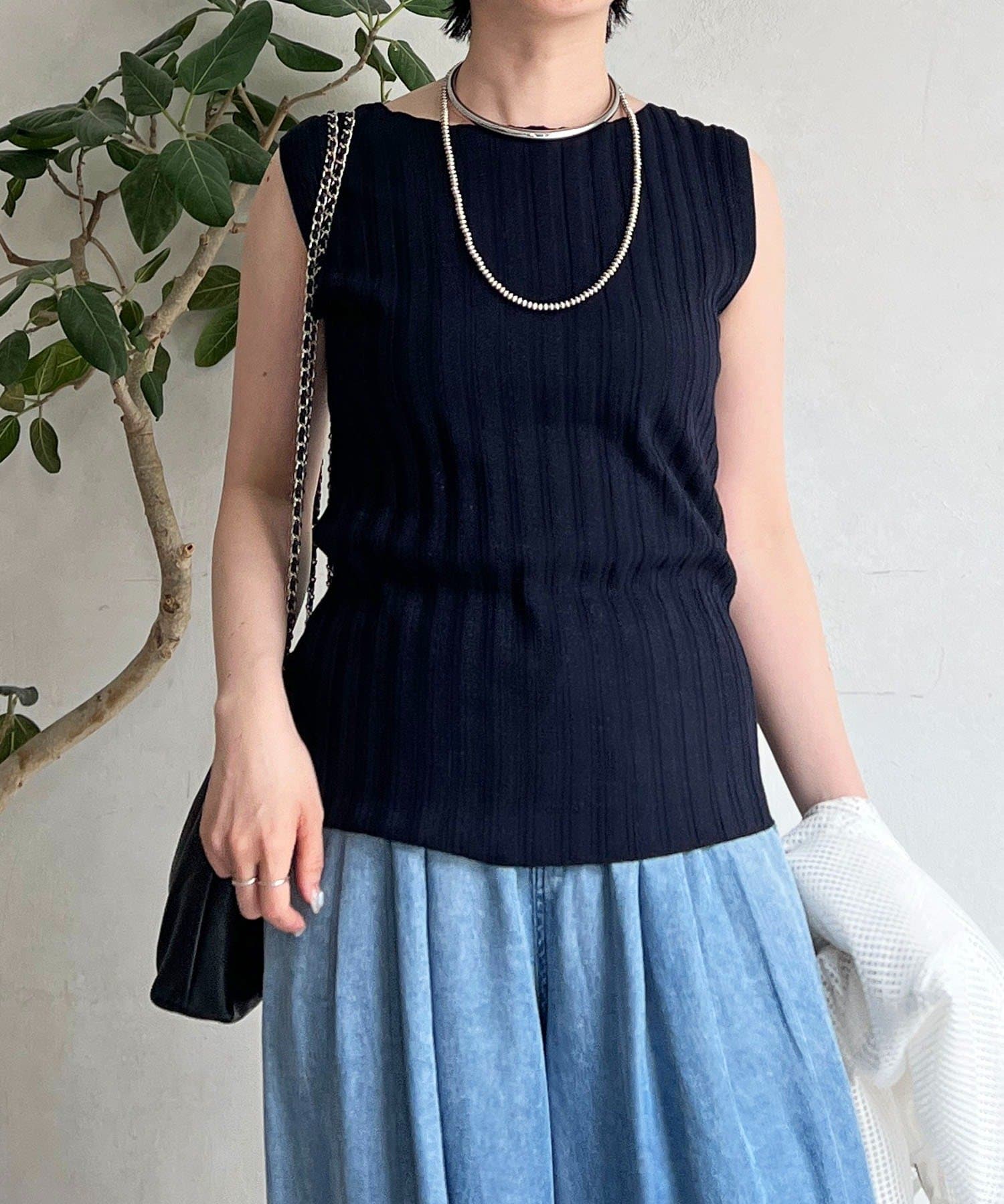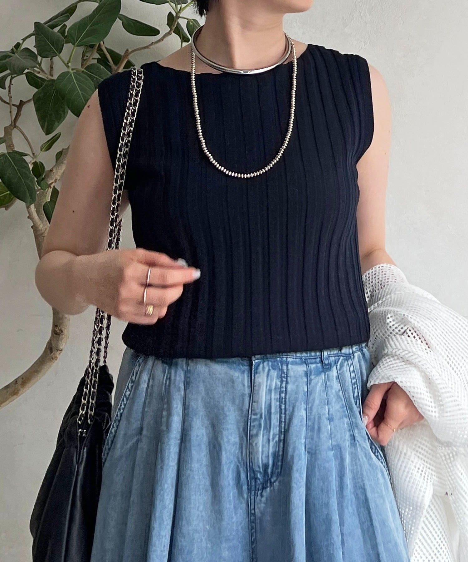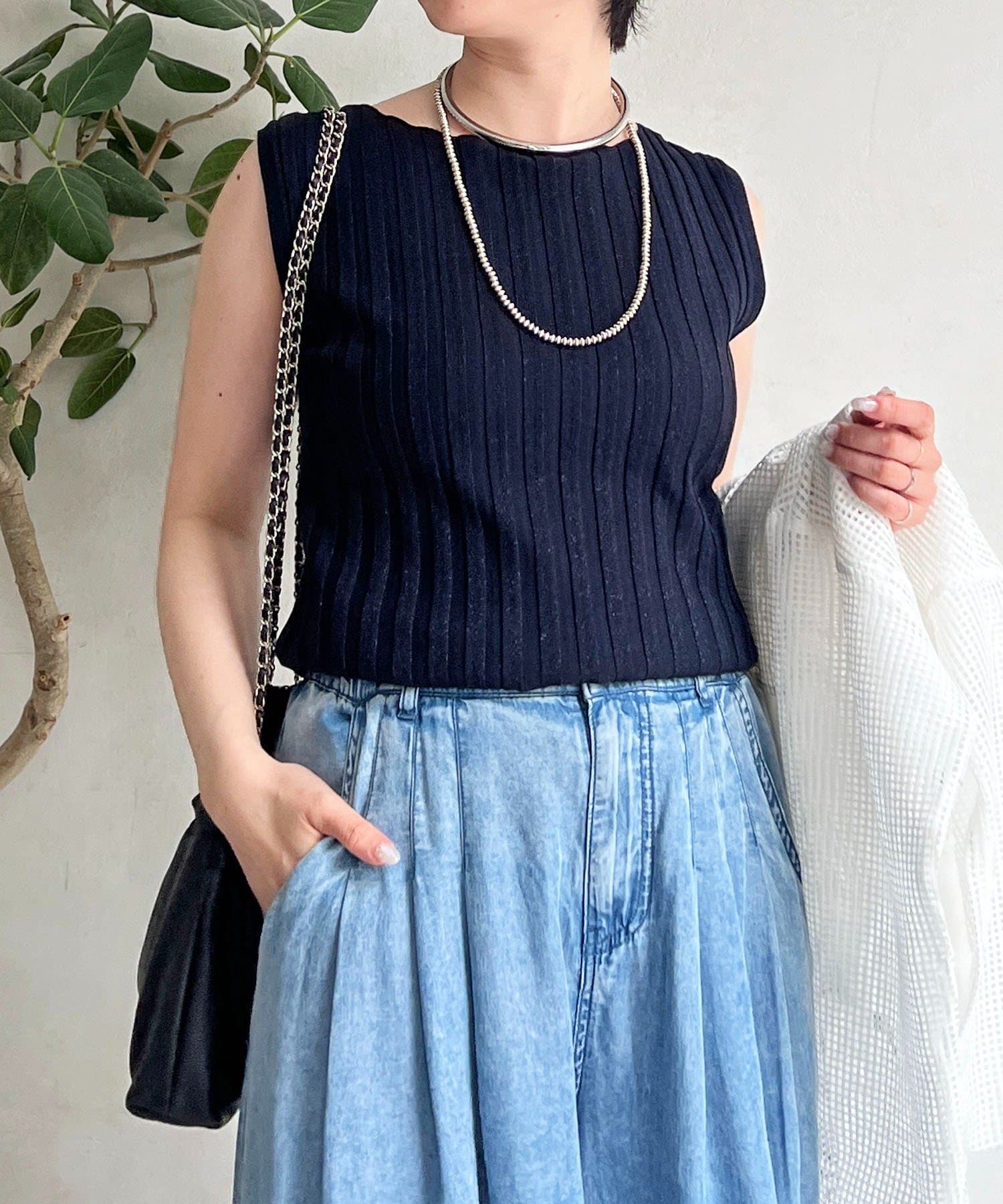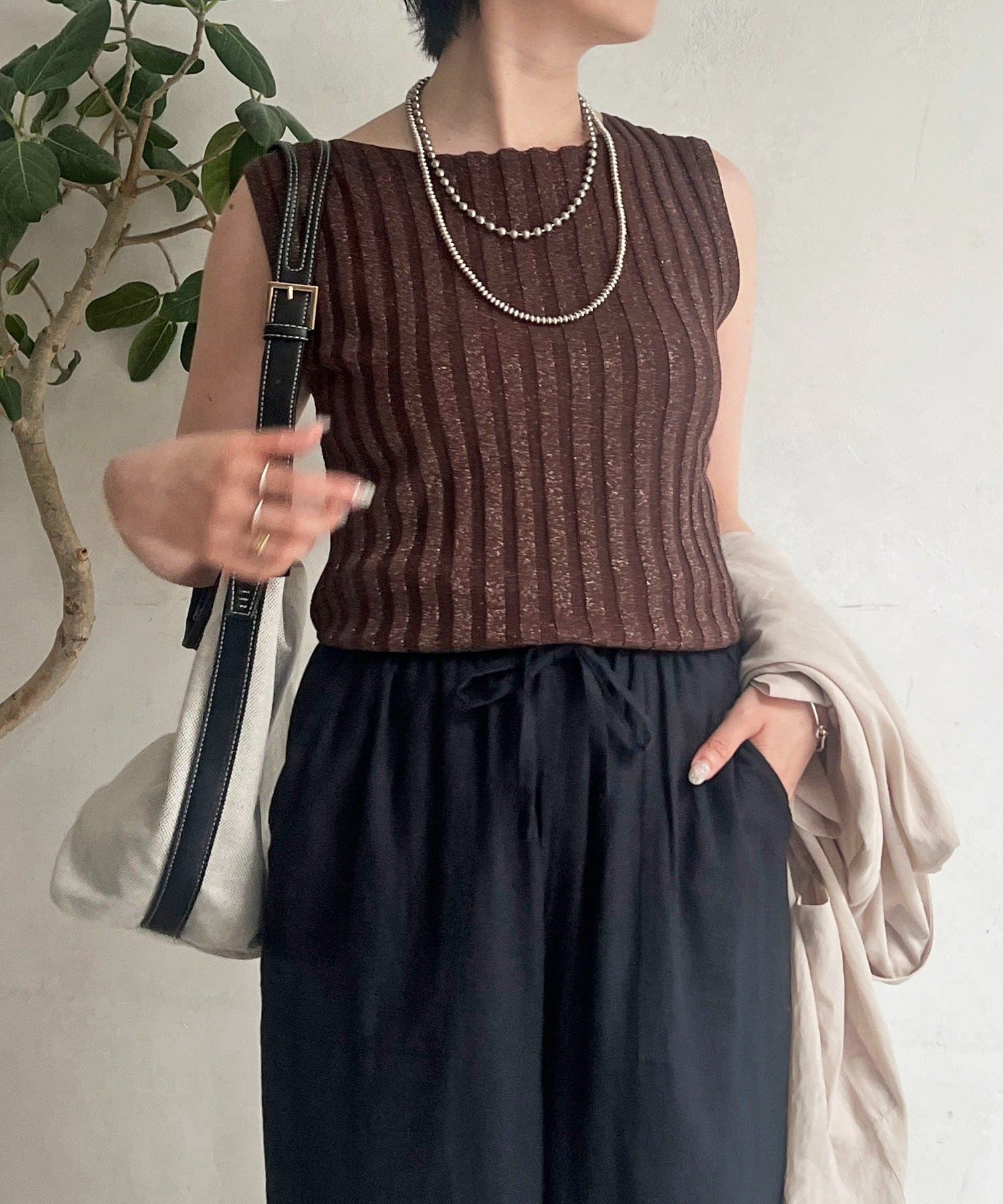 春夏コーデに華やかな表情を添えるラメリブタンクトップ