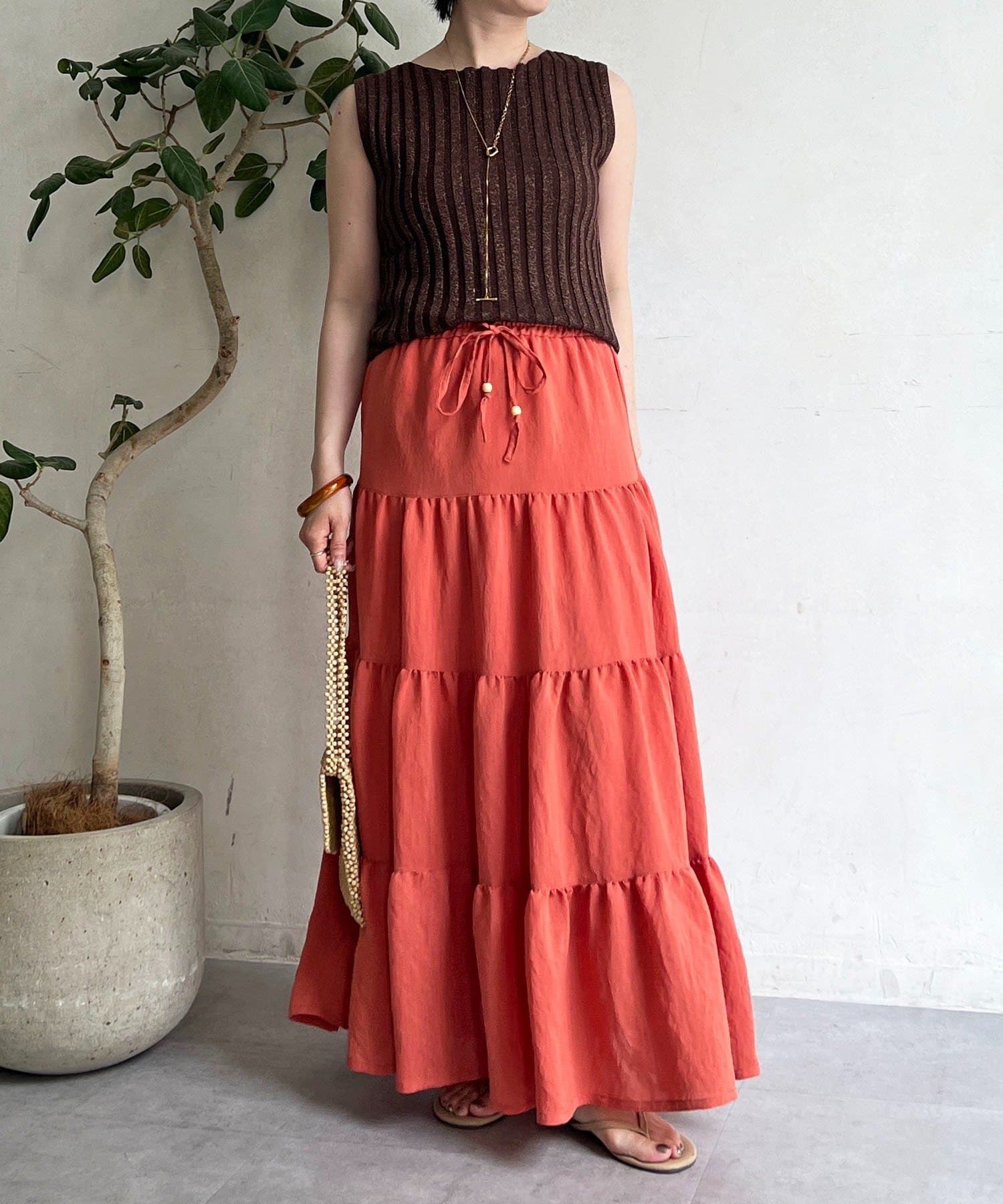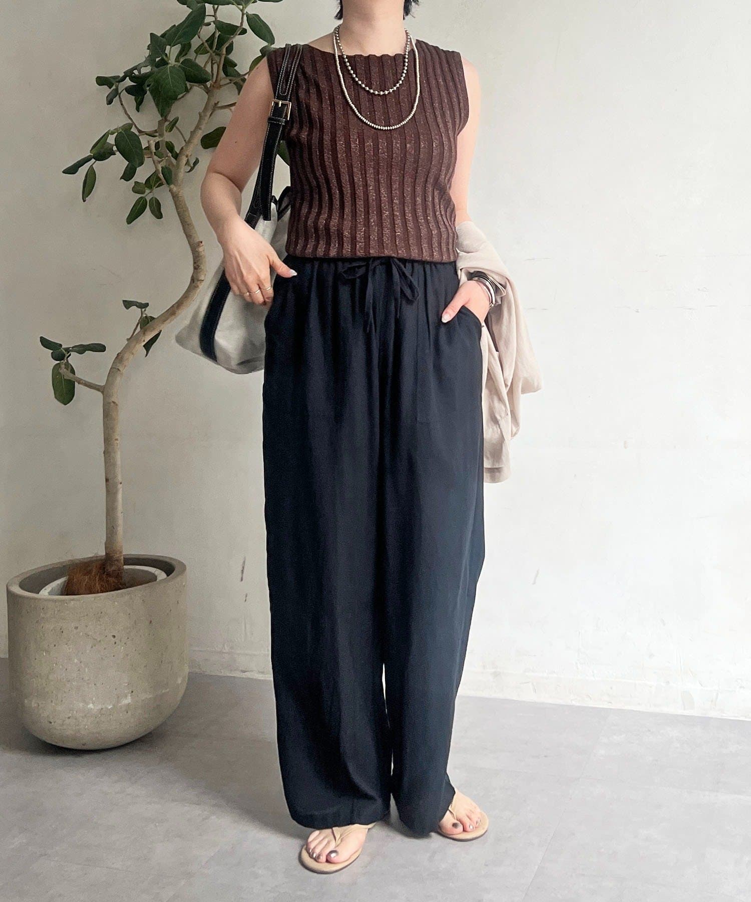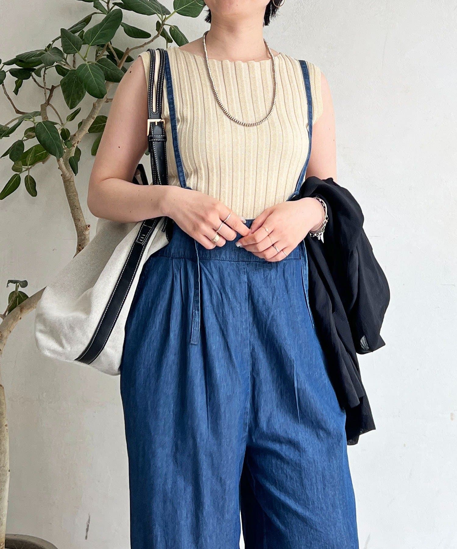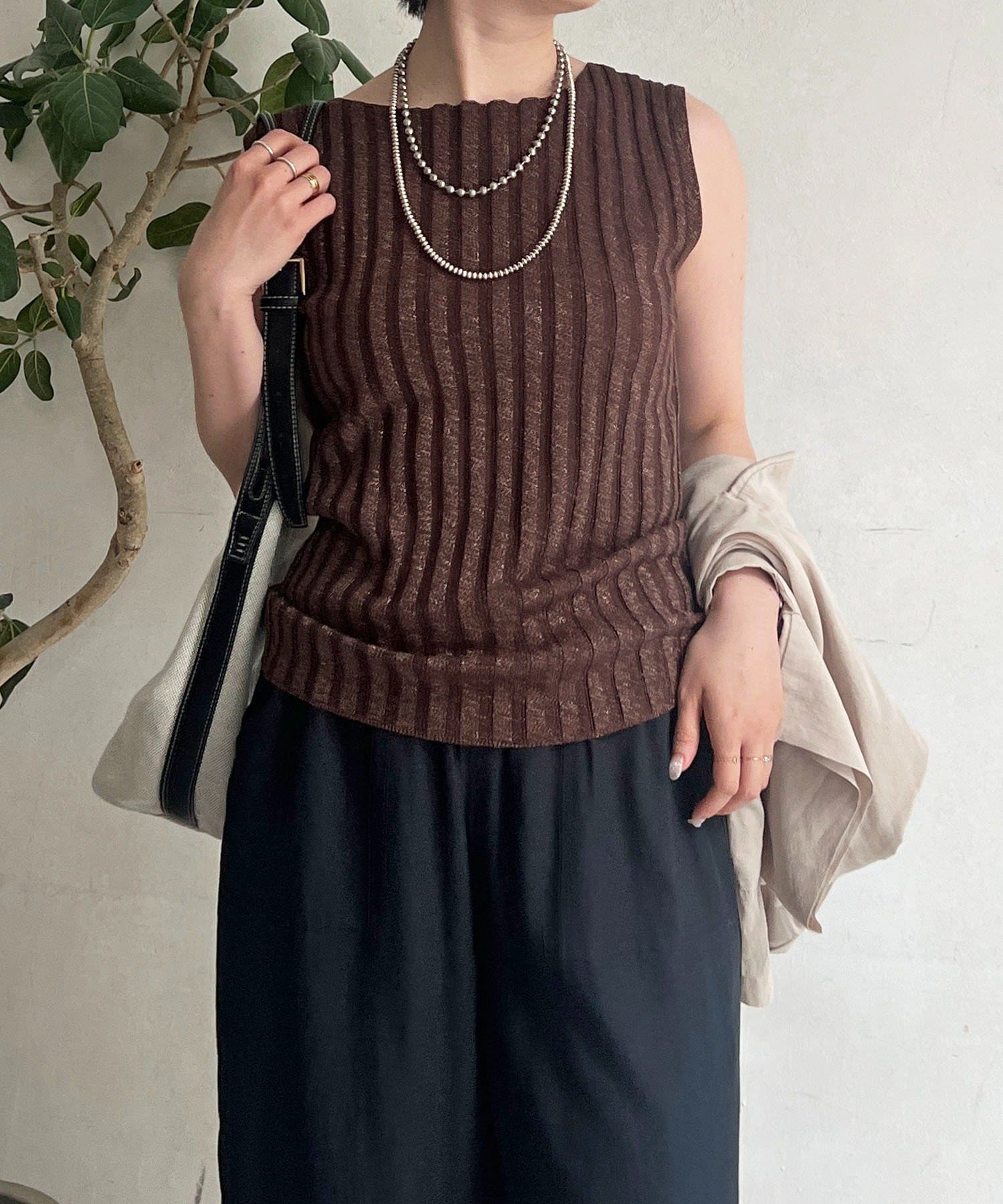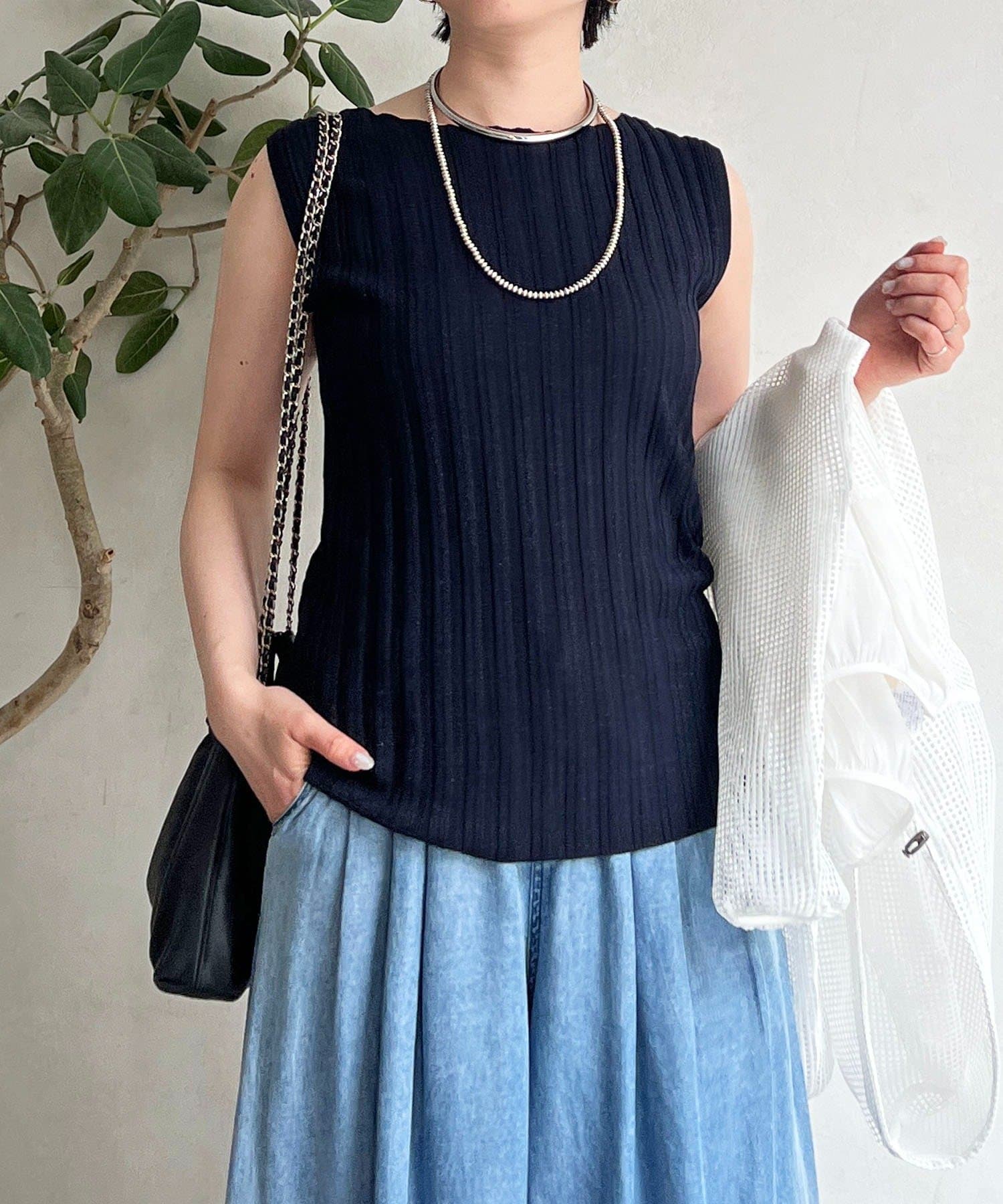春夏コーデに華やかな表情を添えるラメリブタンクトップ