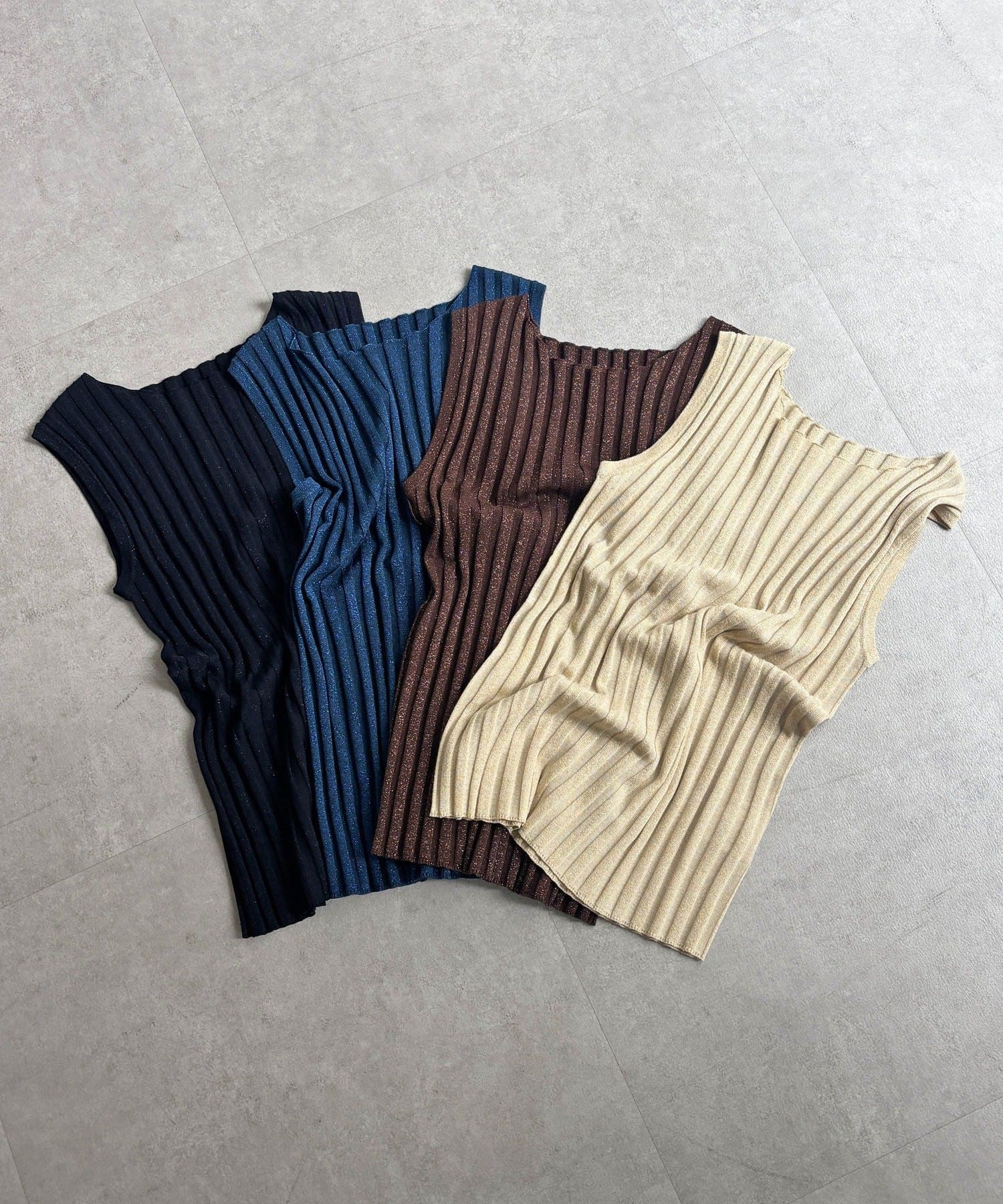 ・ラメの輝きが存在感のあるコンパクトなリブタンク