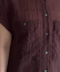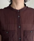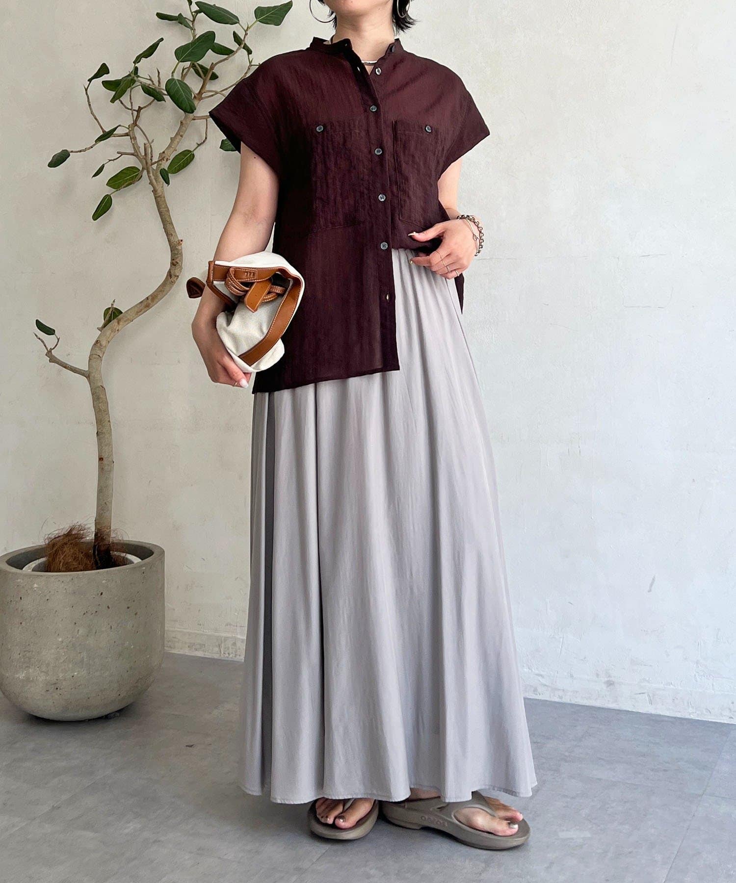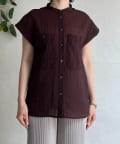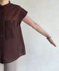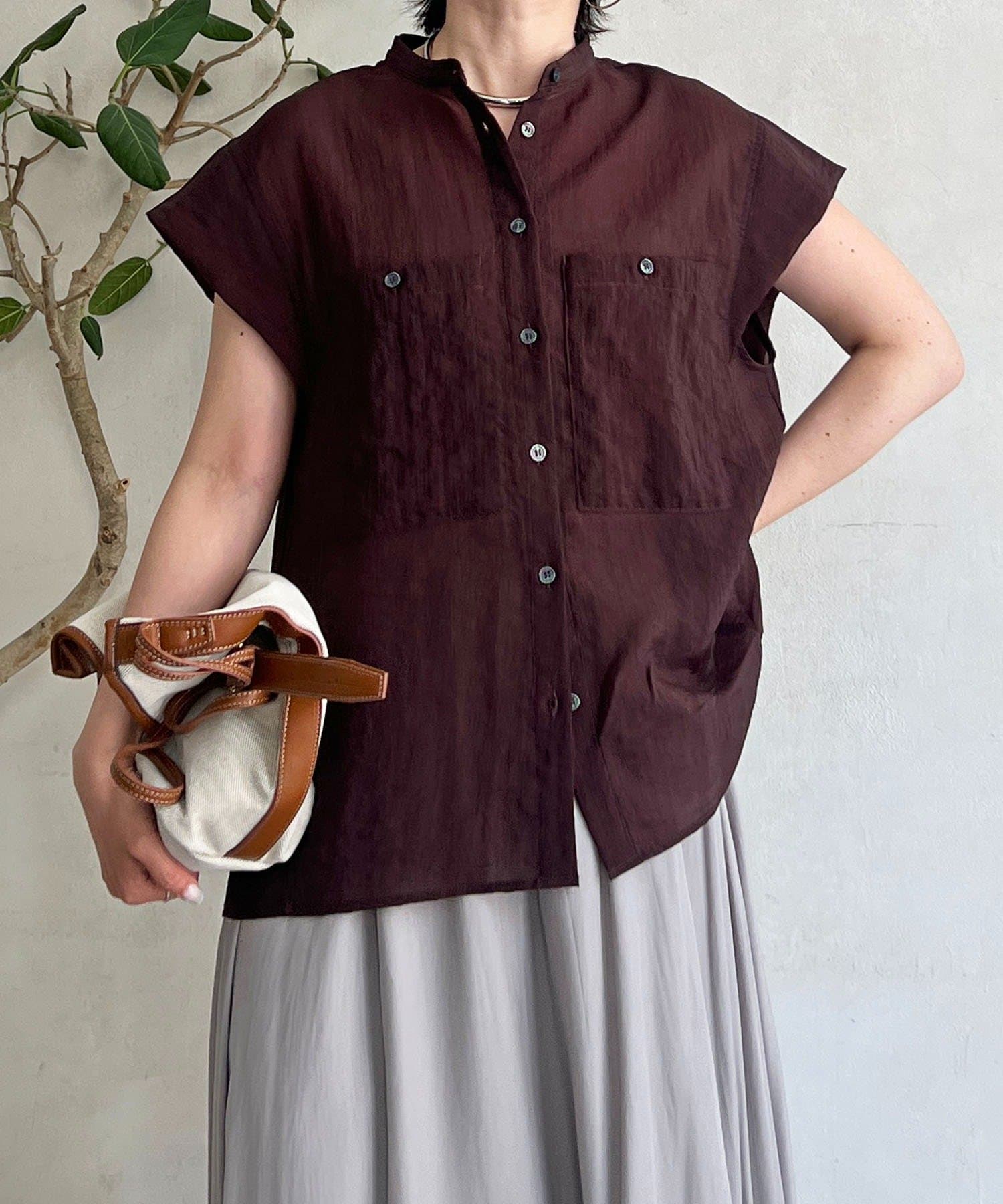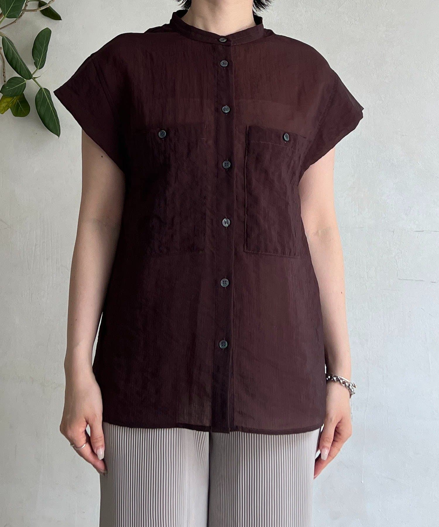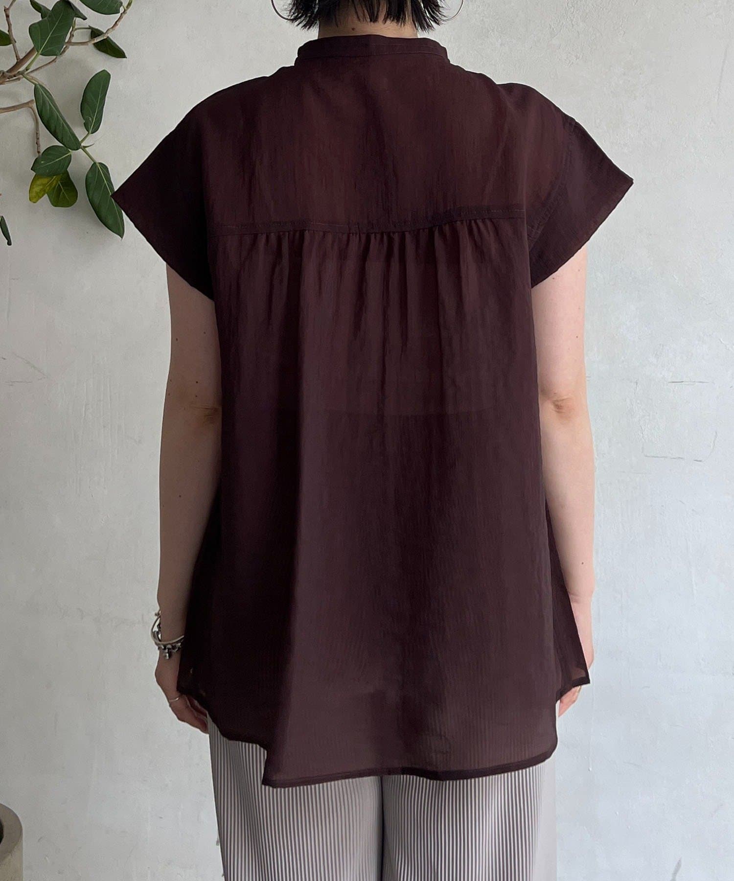 ・開けても閉めても着回しやすいフレンチスリーブのバンドカラーブラウス