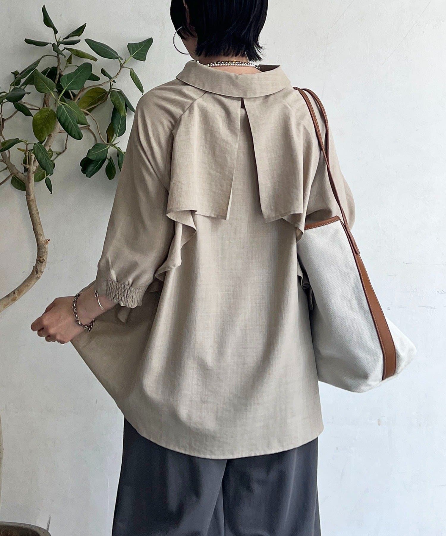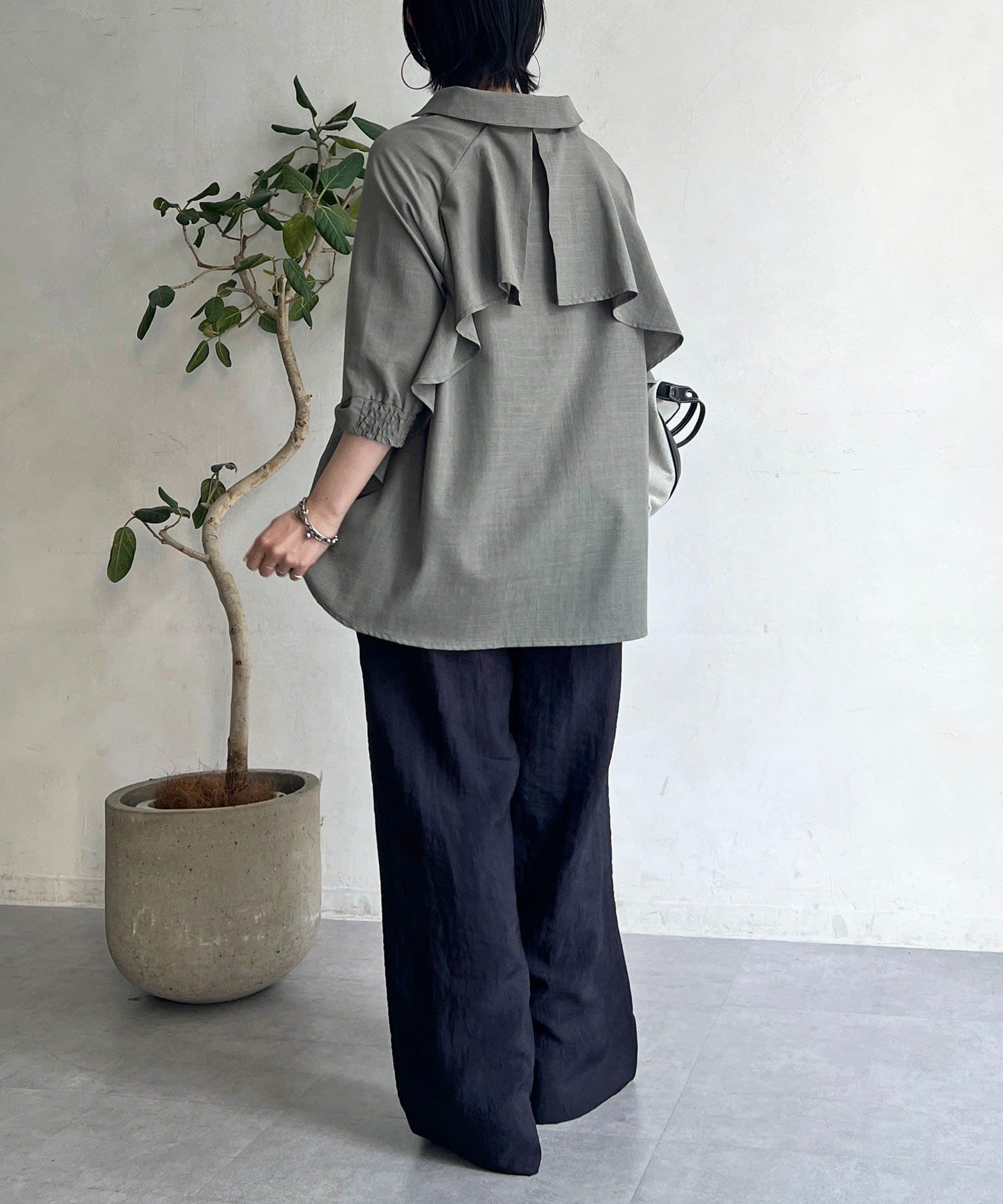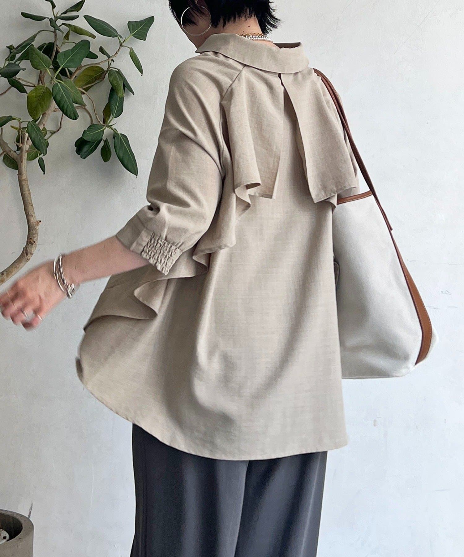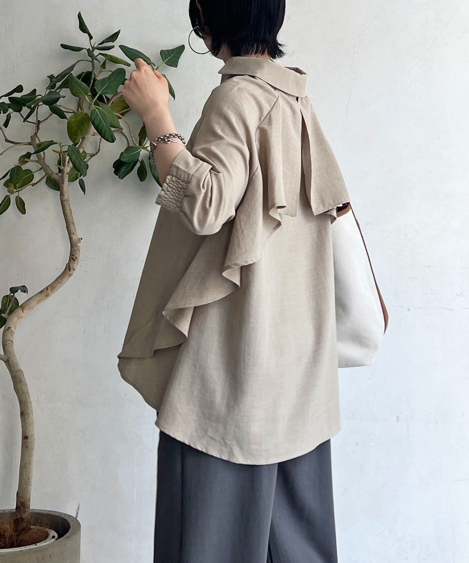 後ろ姿まで抜かりなくオシャレ見え!バックフリルで差がつく麻調ブラウス