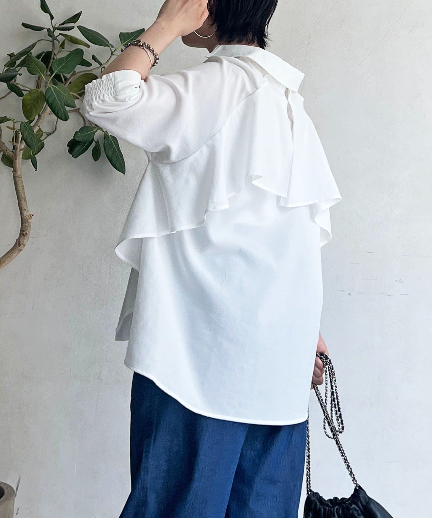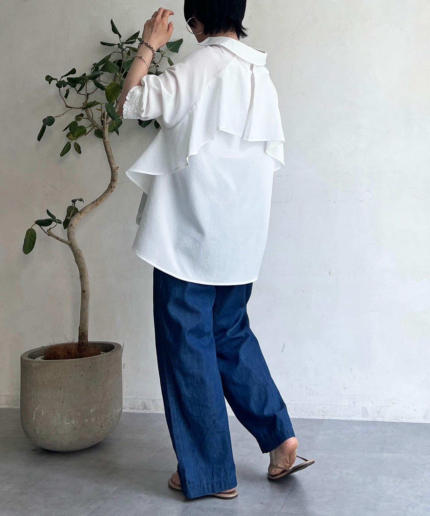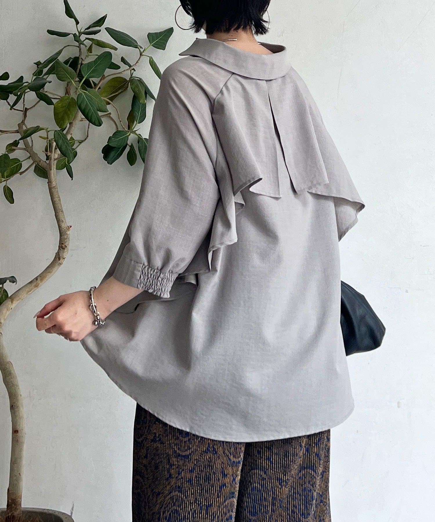 後ろ姿まで抜かりなくオシャレ見え!バックフリルで差がつく麻調ブラウス