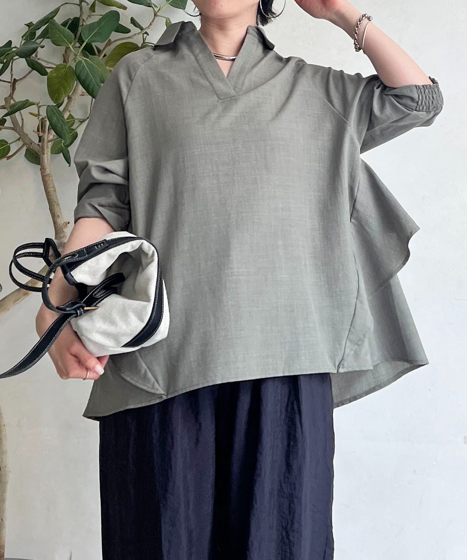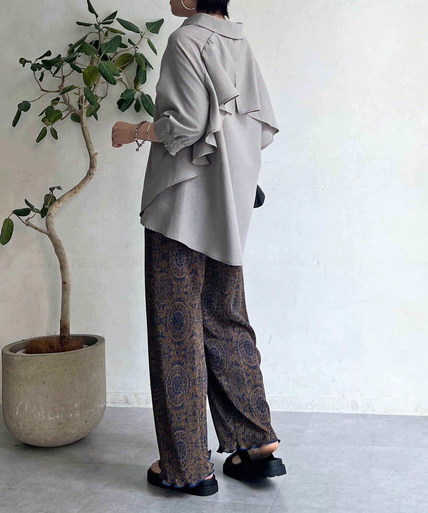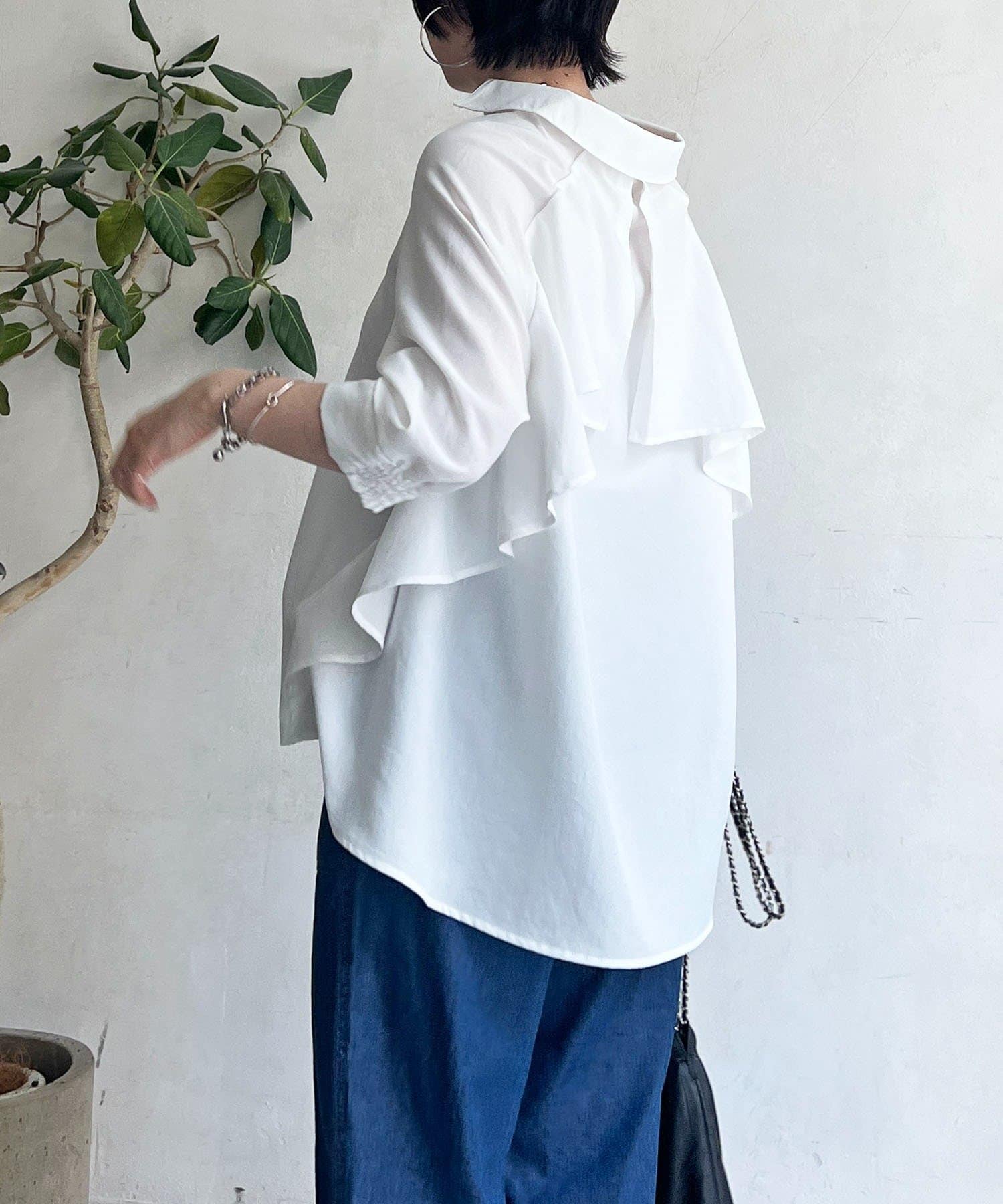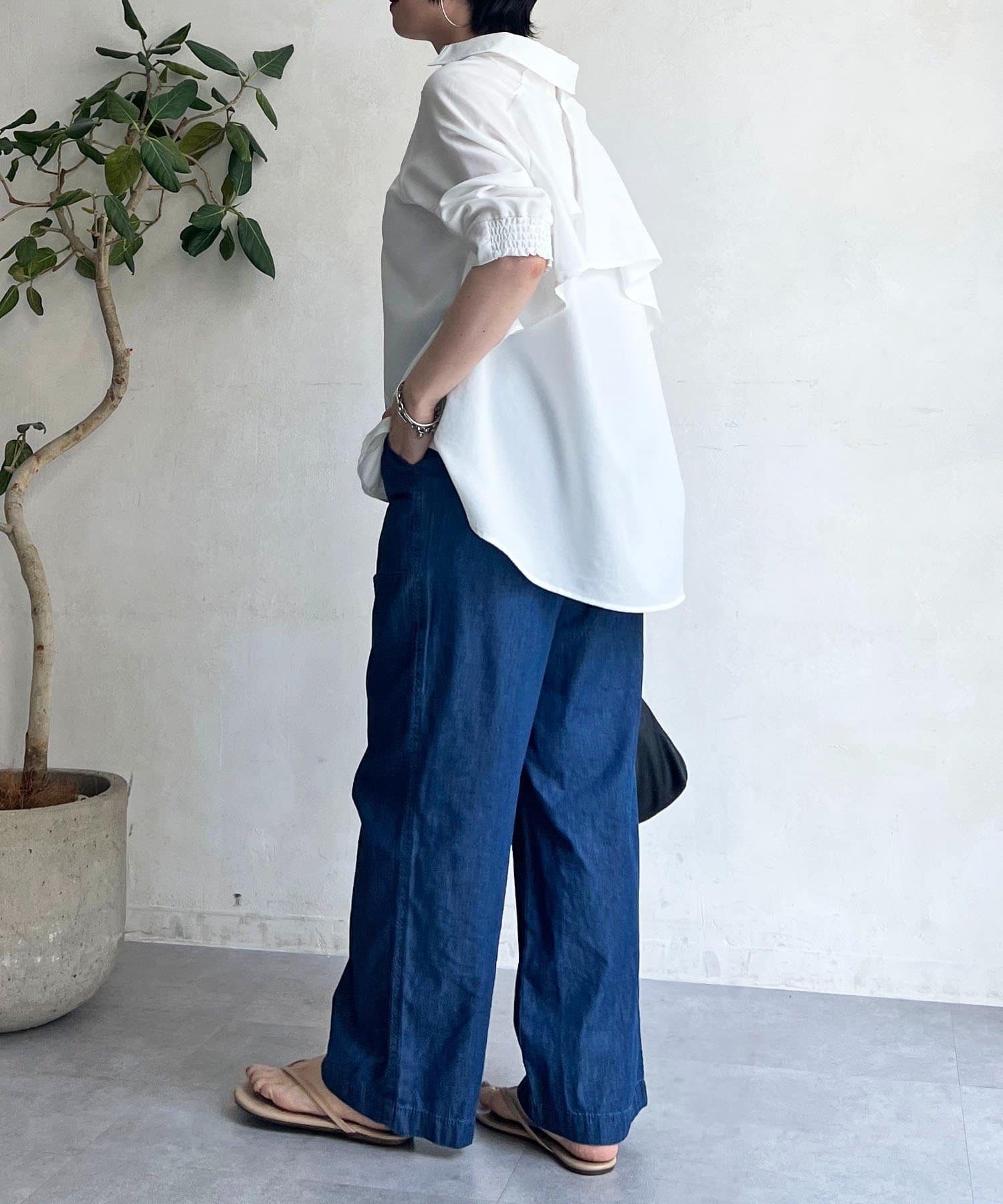 後ろ姿まで抜かりなくオシャレ見え!バックフリルで差がつく麻調ブラウス