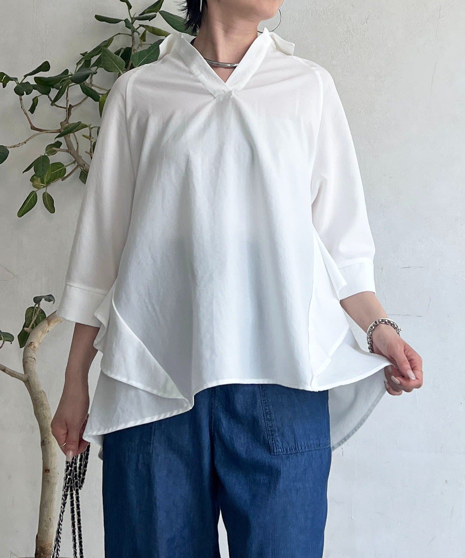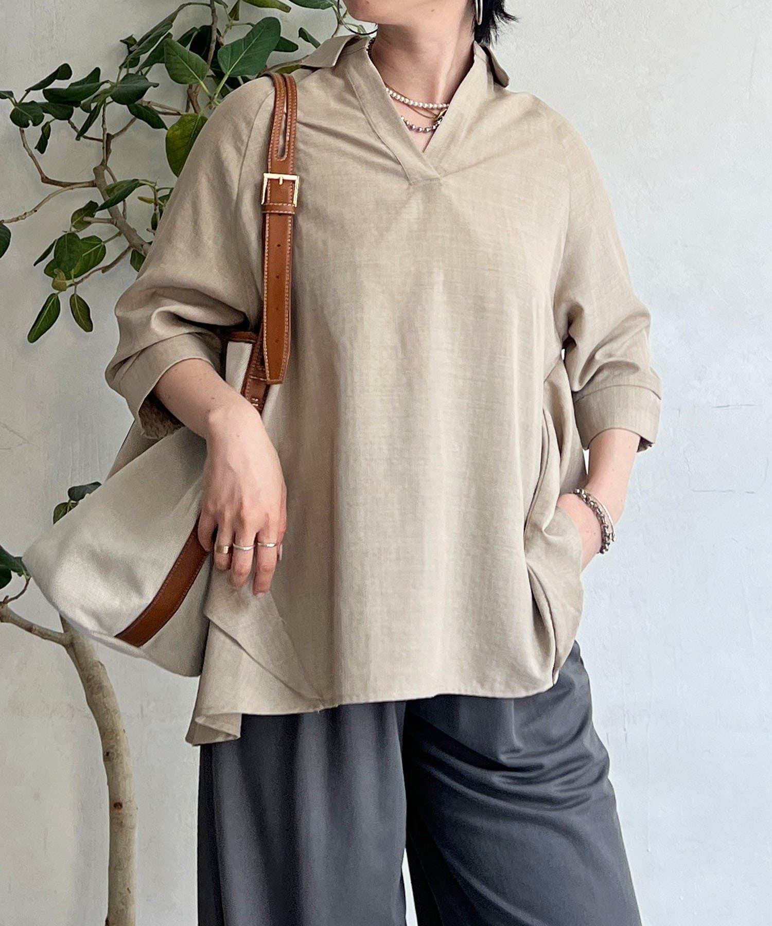 ・七分袖が二の腕カバーにもなり、秋口まで着回せる◎