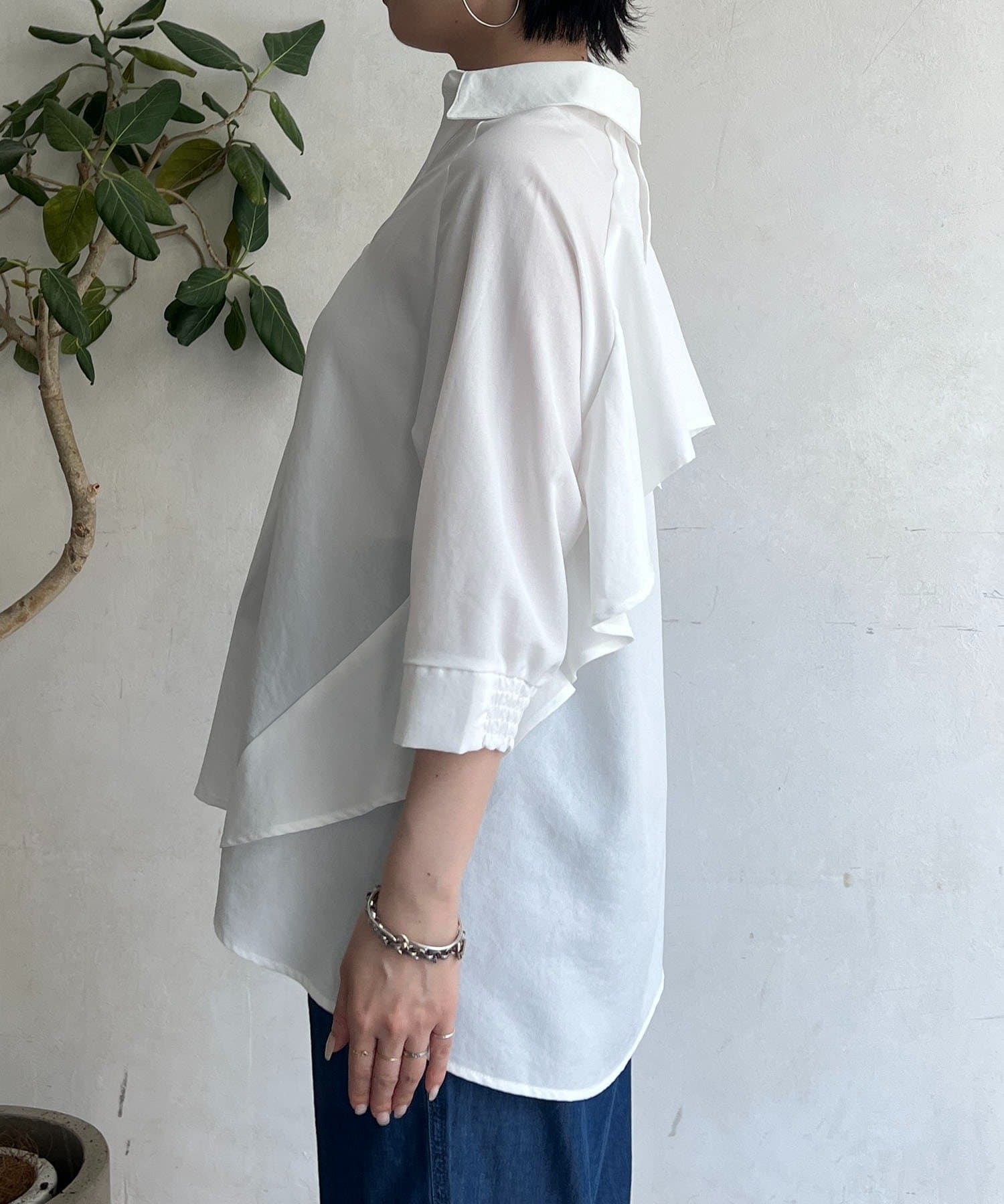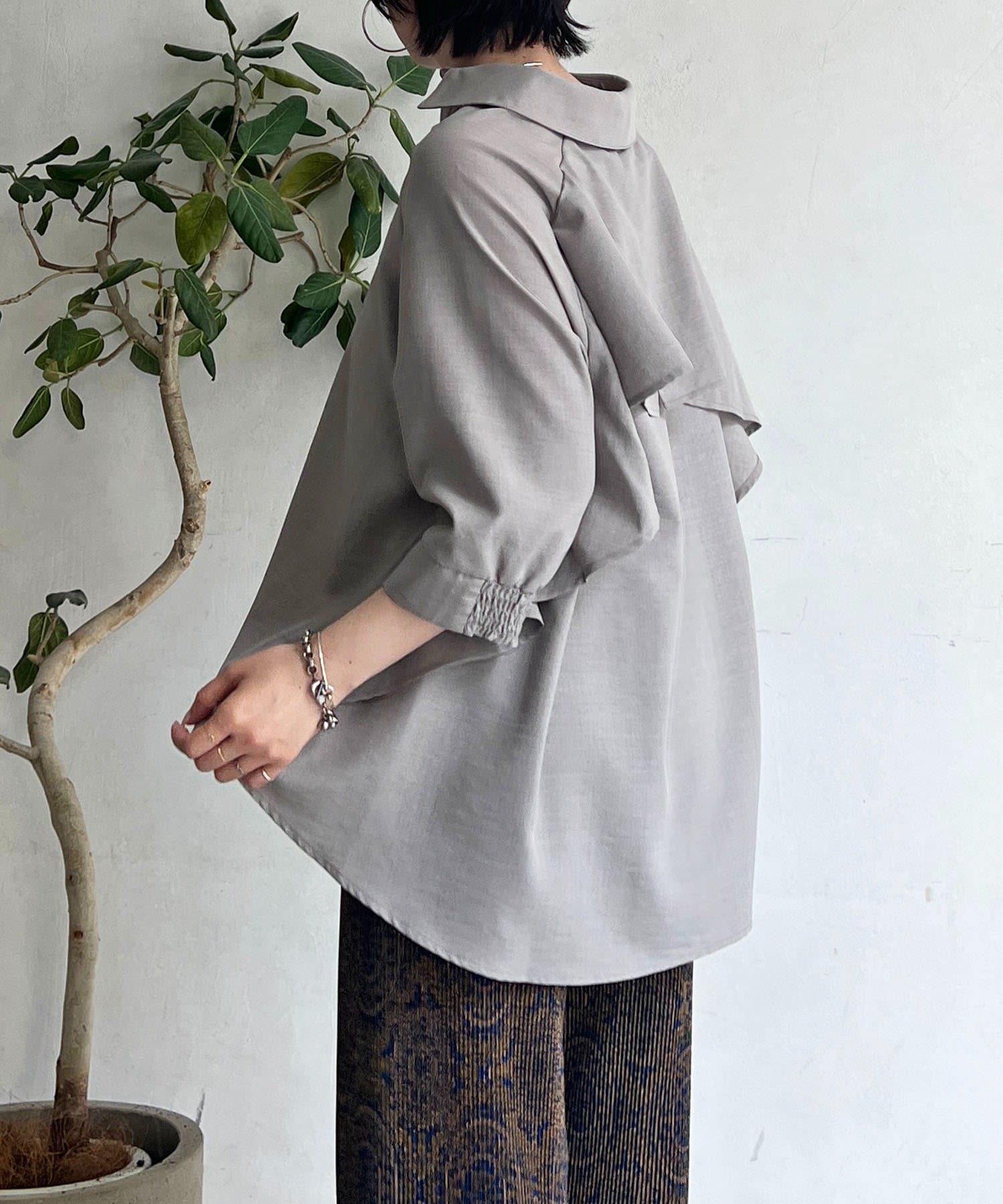 【後ろ姿まで抜かりなく】麻調7分袖バックフリルブラウス