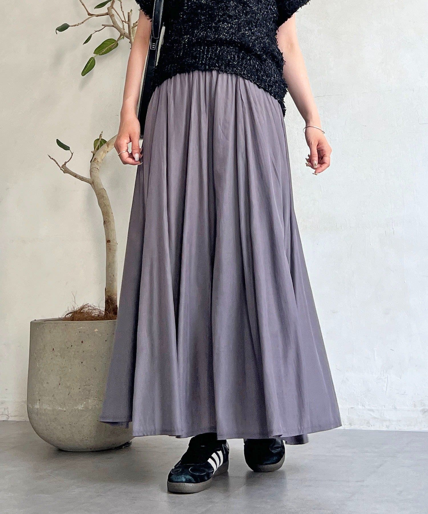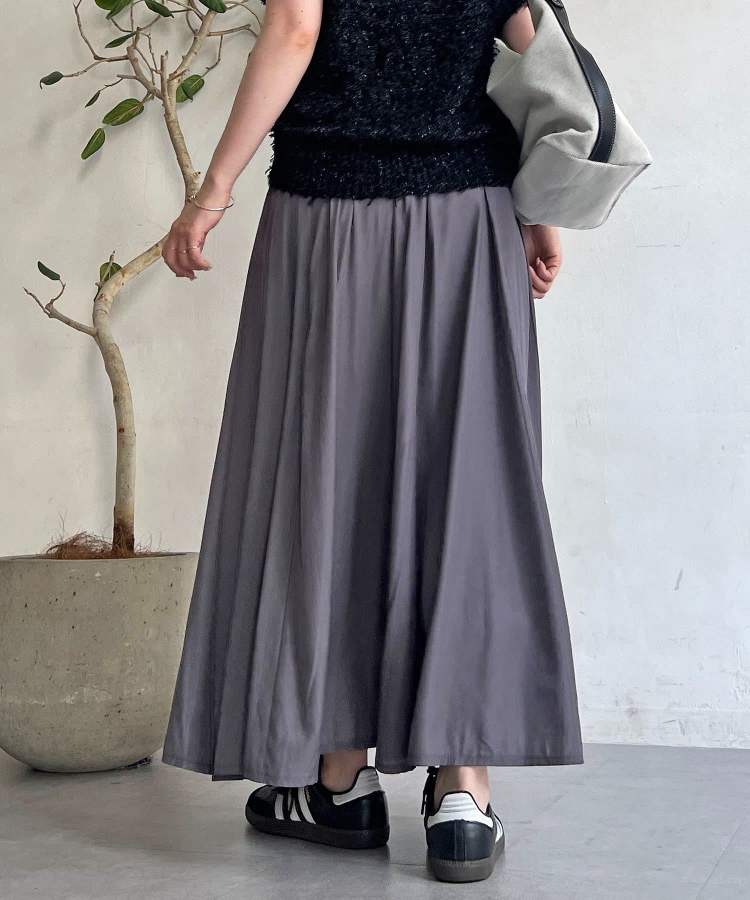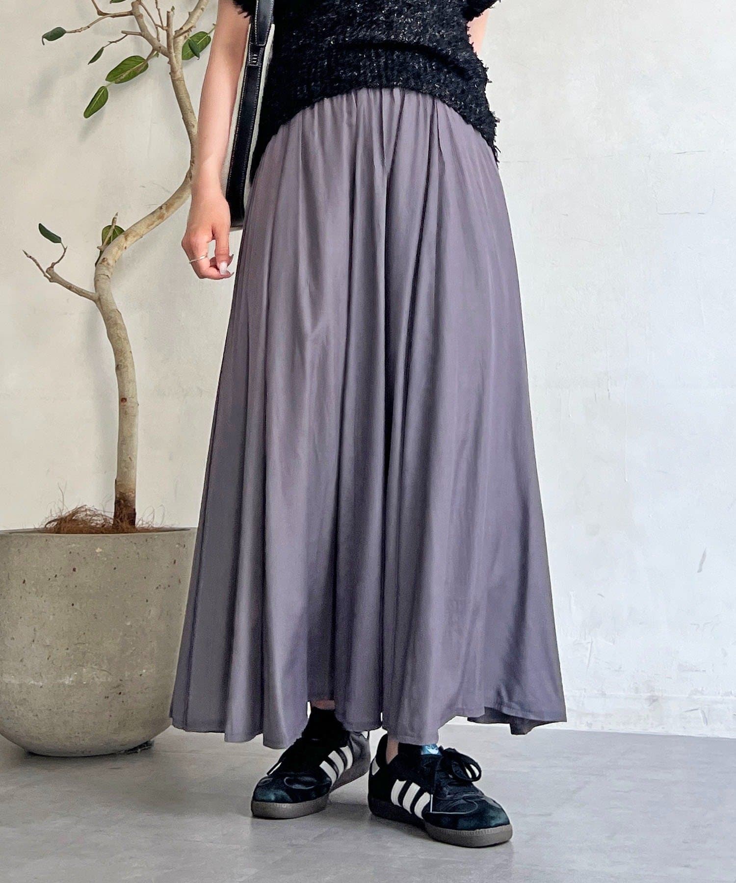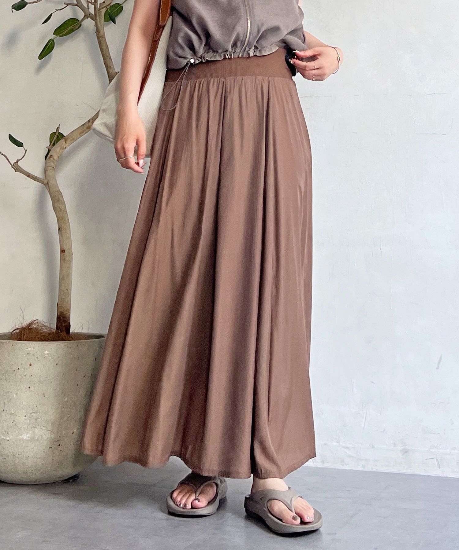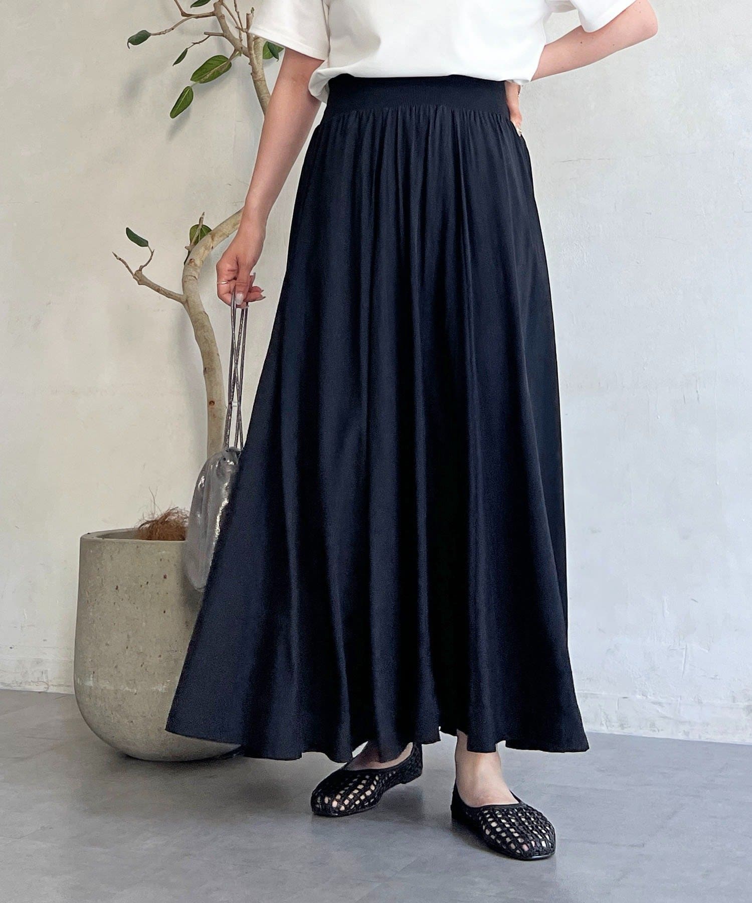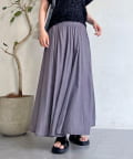 ・ほんのりツヤ感のある素材で作られたフレアスカート