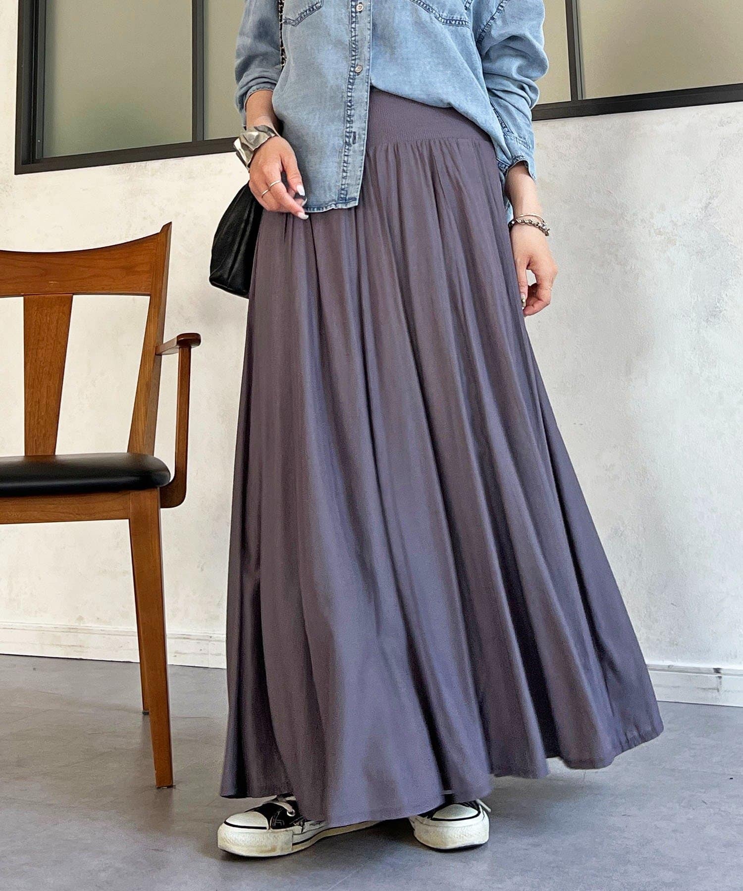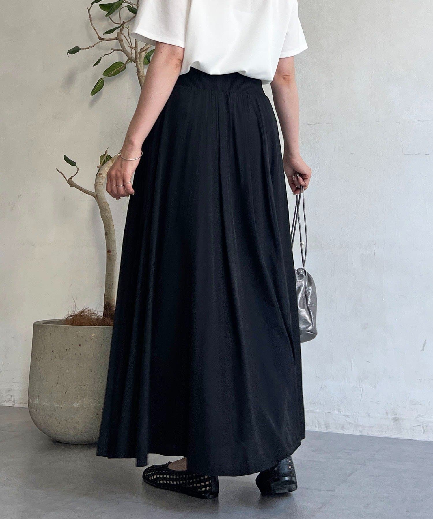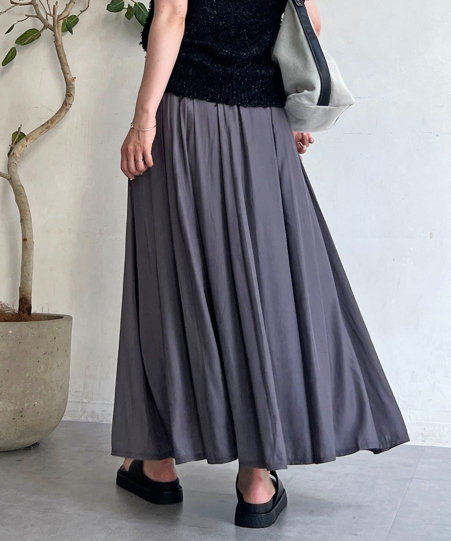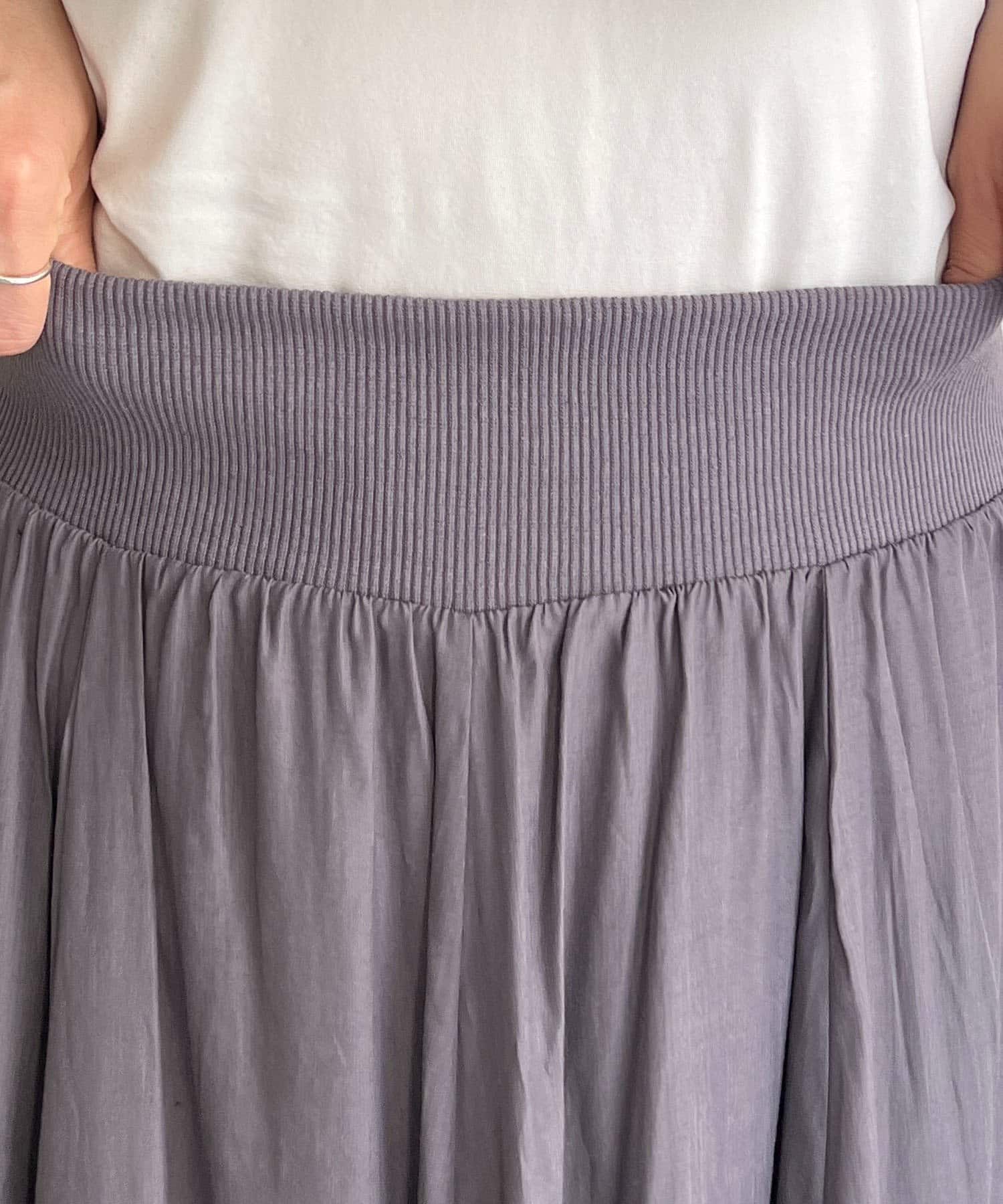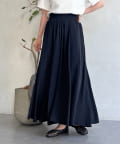 ・ほんのりツヤ感のある素材で作られたフレアスカート