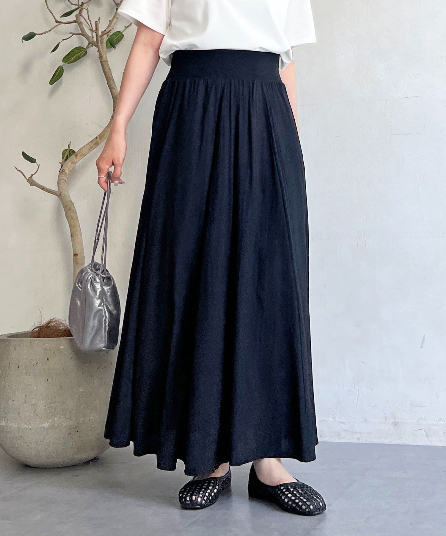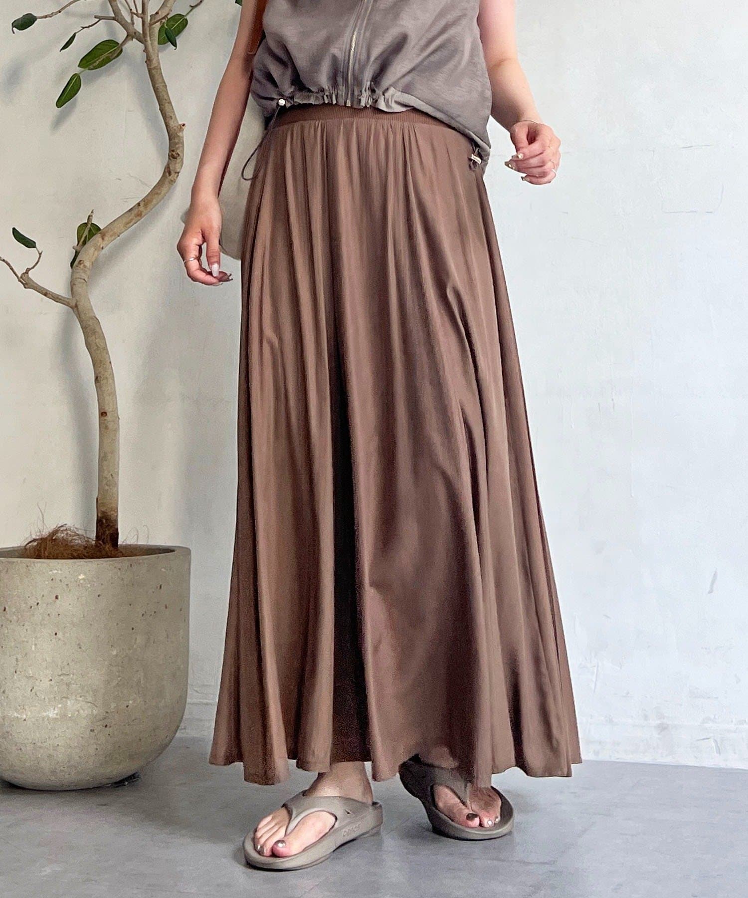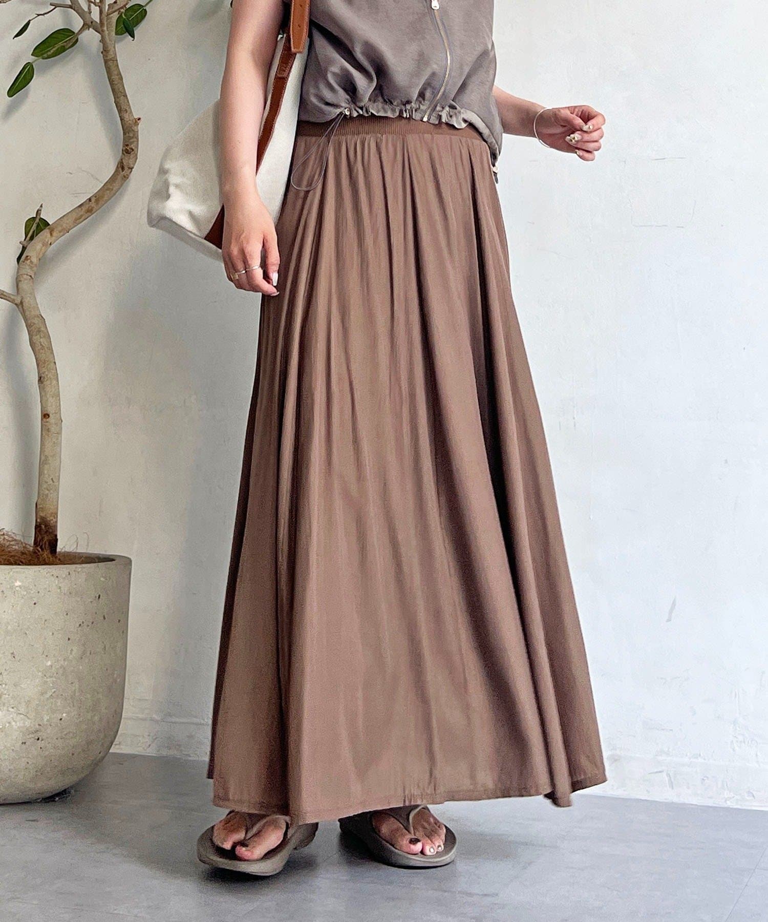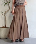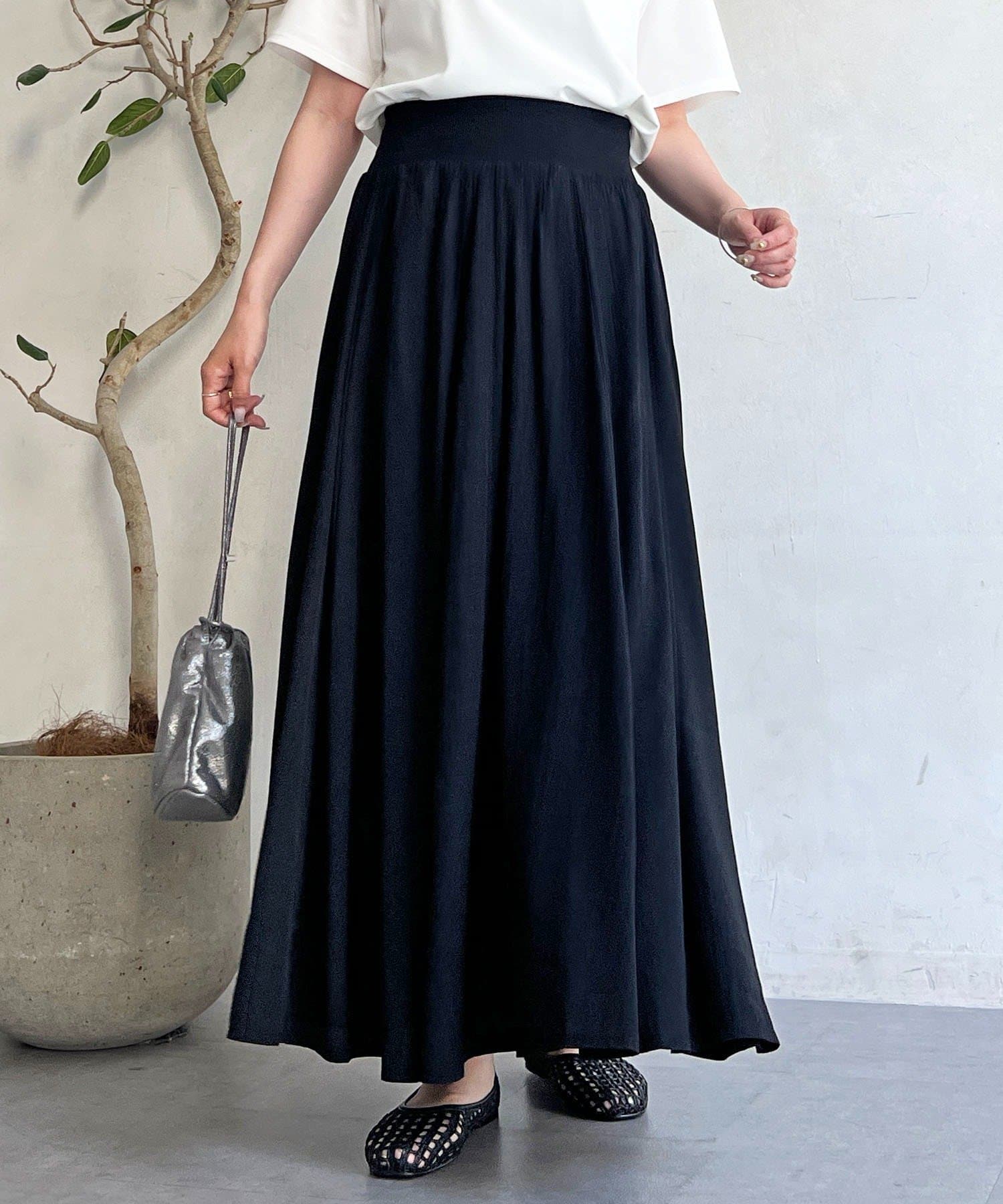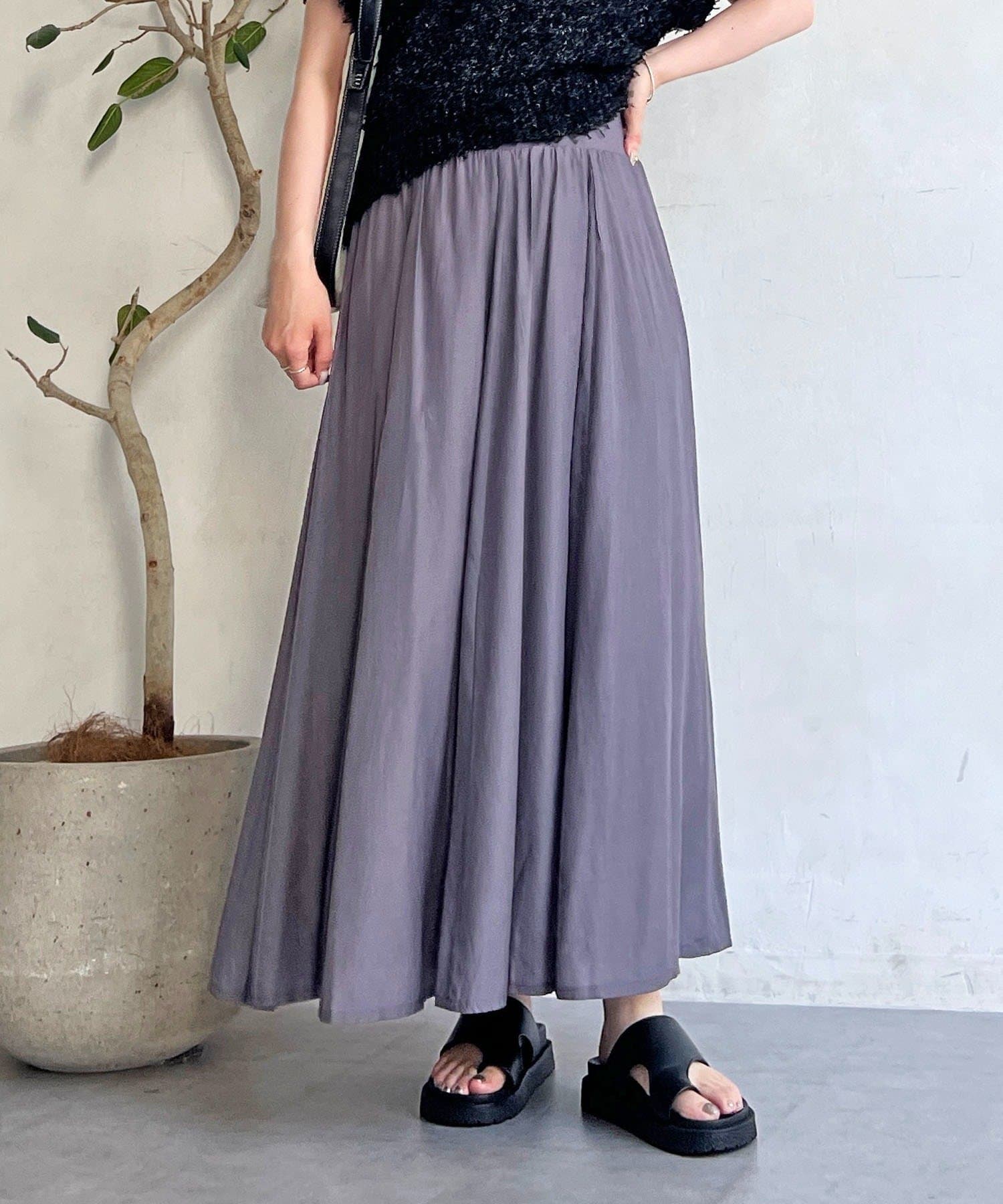 ・ほんのりツヤ感のある素材で作られたフレアスカート